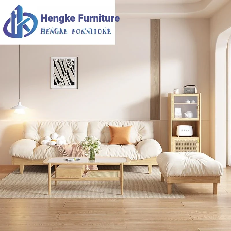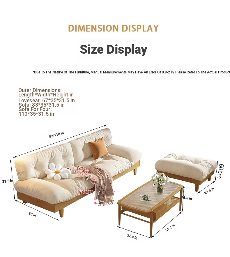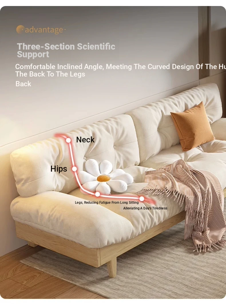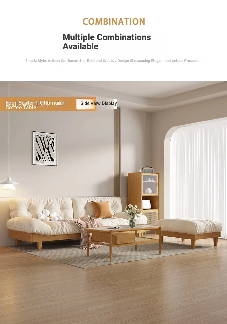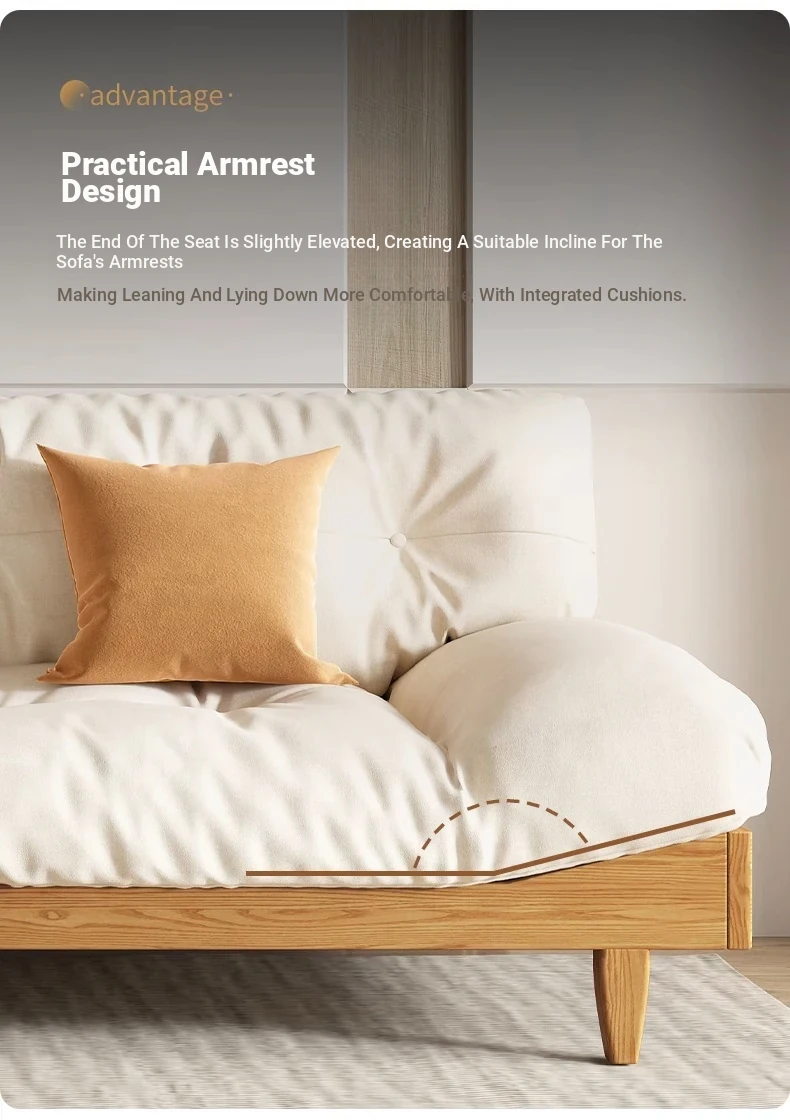 Japanese Wabi-Sabi Style White Wax Wood Cloud Sofa - Creamy White Solid Wood with Soft Velvet Fabric, Perfect for Stylish and Cozy Living Spaces