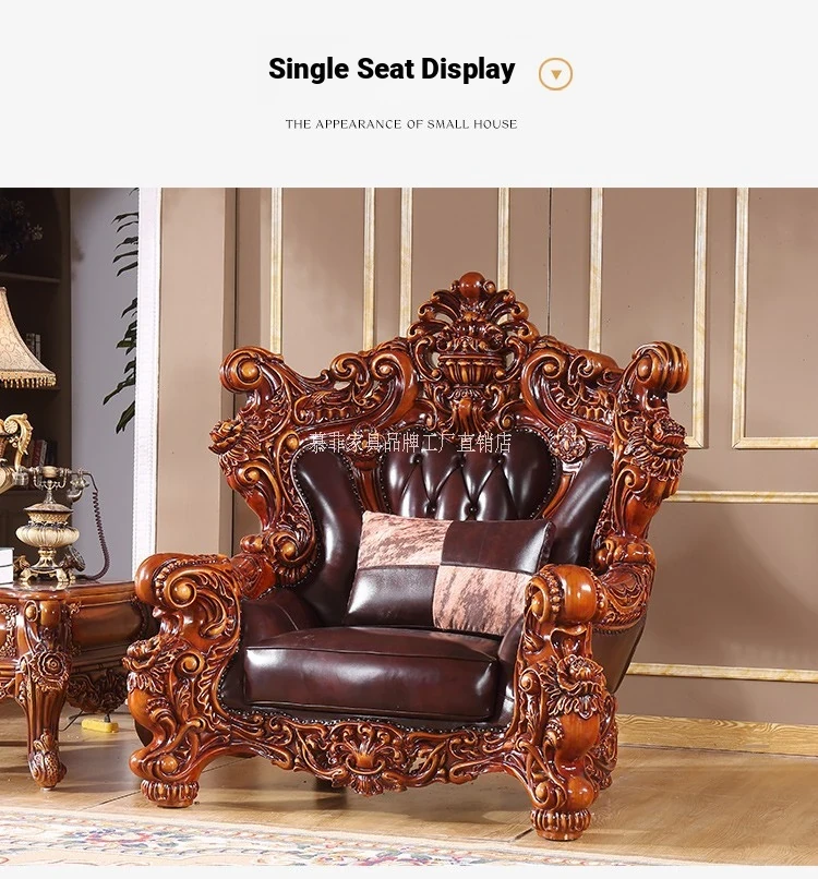 Luxurious European Style Villa Sofa Set - Elegant and High-End Living Room Furniture for Spacious Homes, Exuding Royalty and Sophistication.