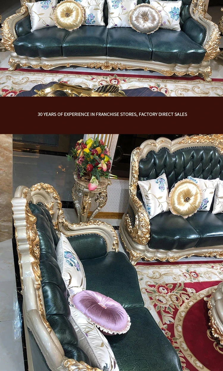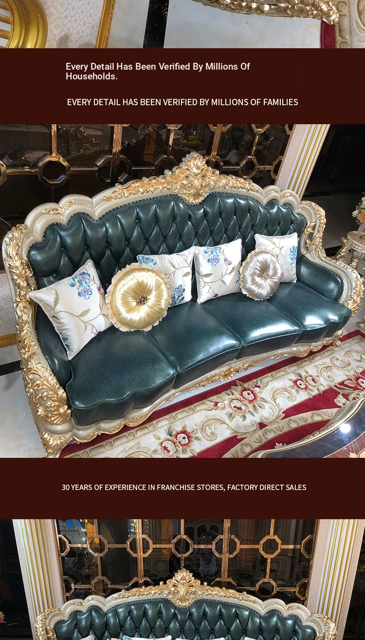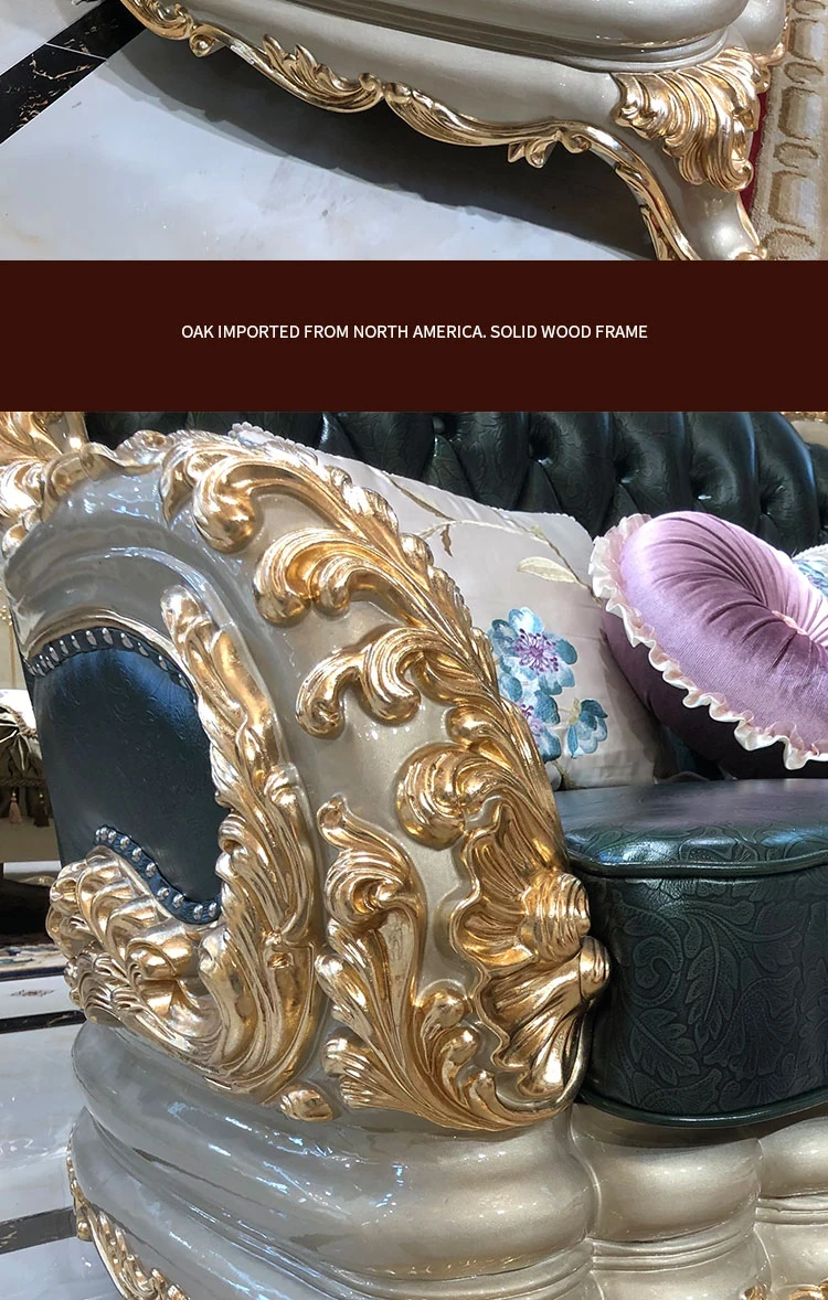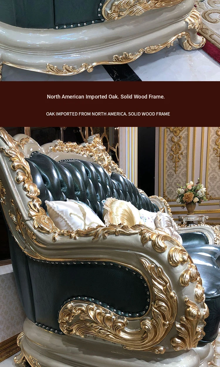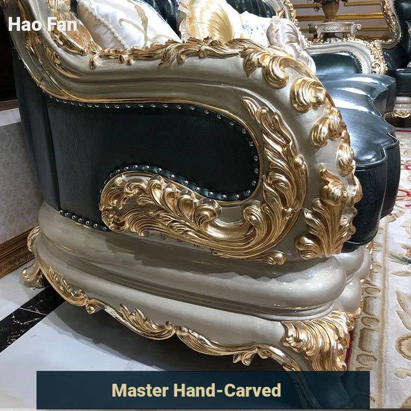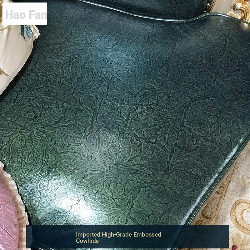 Luxurious European-Style Genuine Leather Sofa Set for Spacious Homes - High-End, Elegant, and Sophisticated Living Room Furniture in Oak Finish, Perfect for Upscale Décor