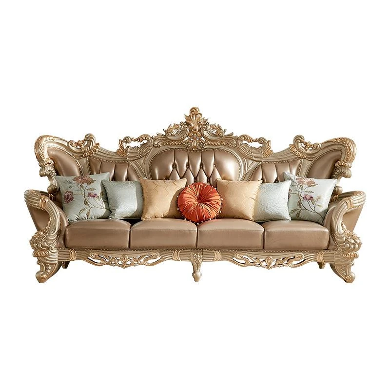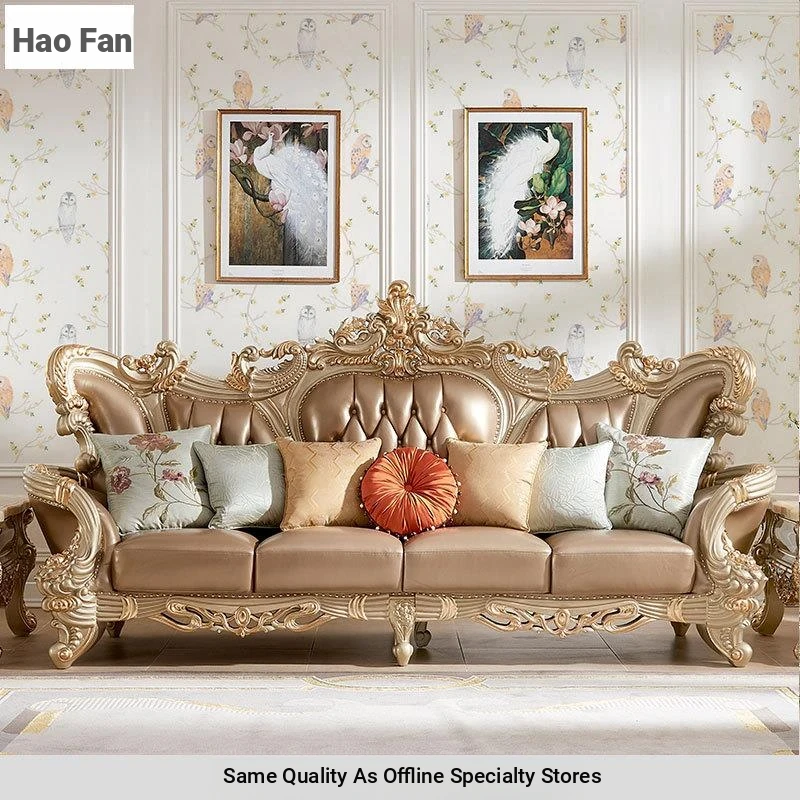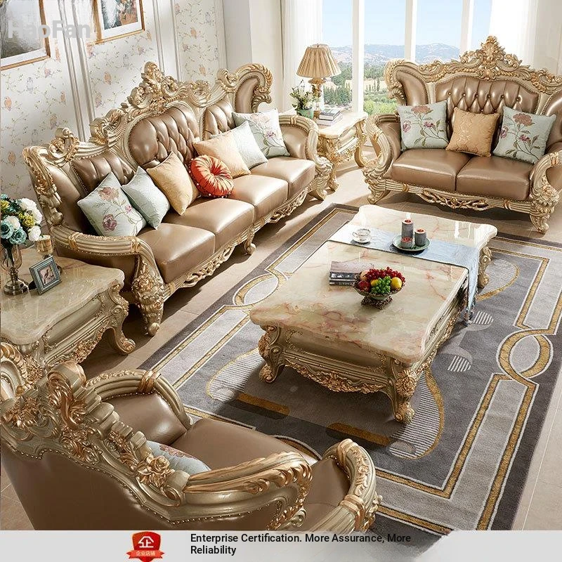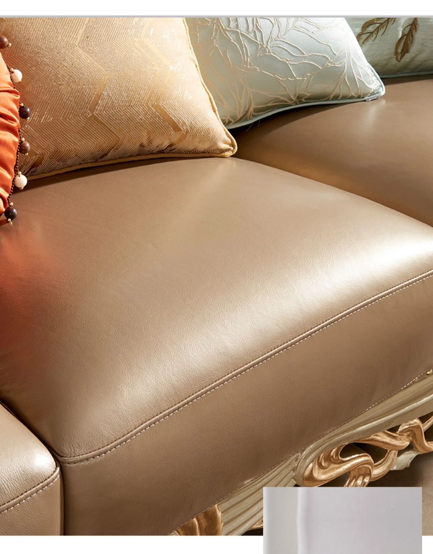 Luxurious European-Style U-Shaped Leather Sofa Set for Villa Living Room - High-End, Elegant, and Sophisticated Wooden Furniture Combination