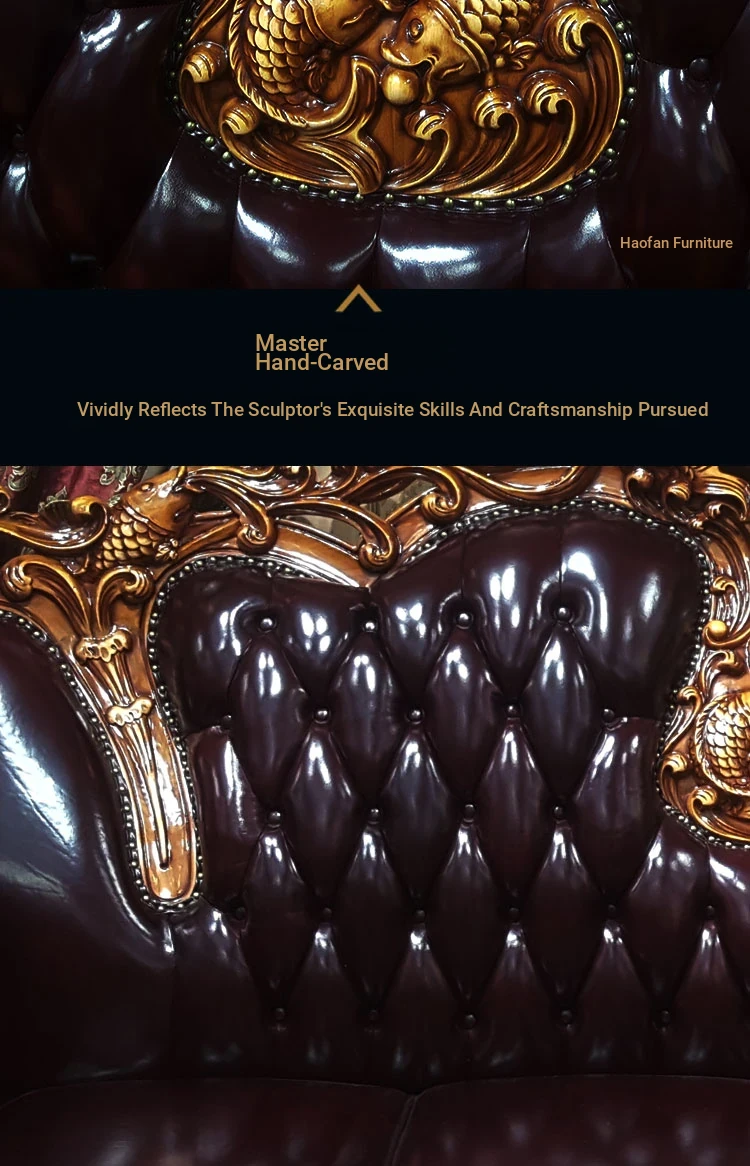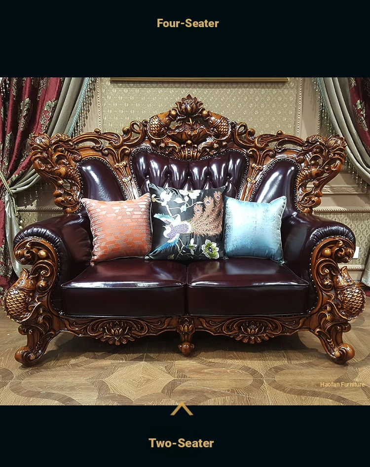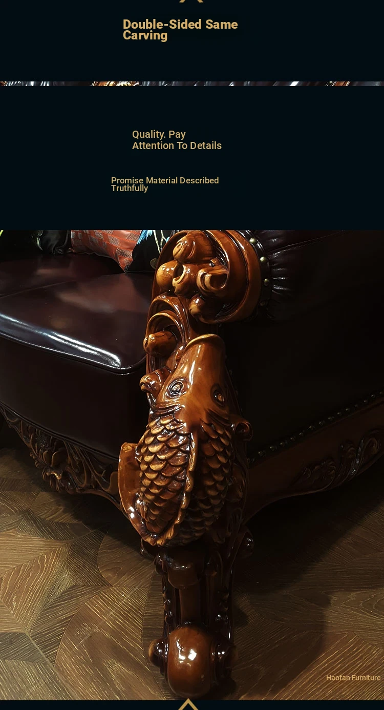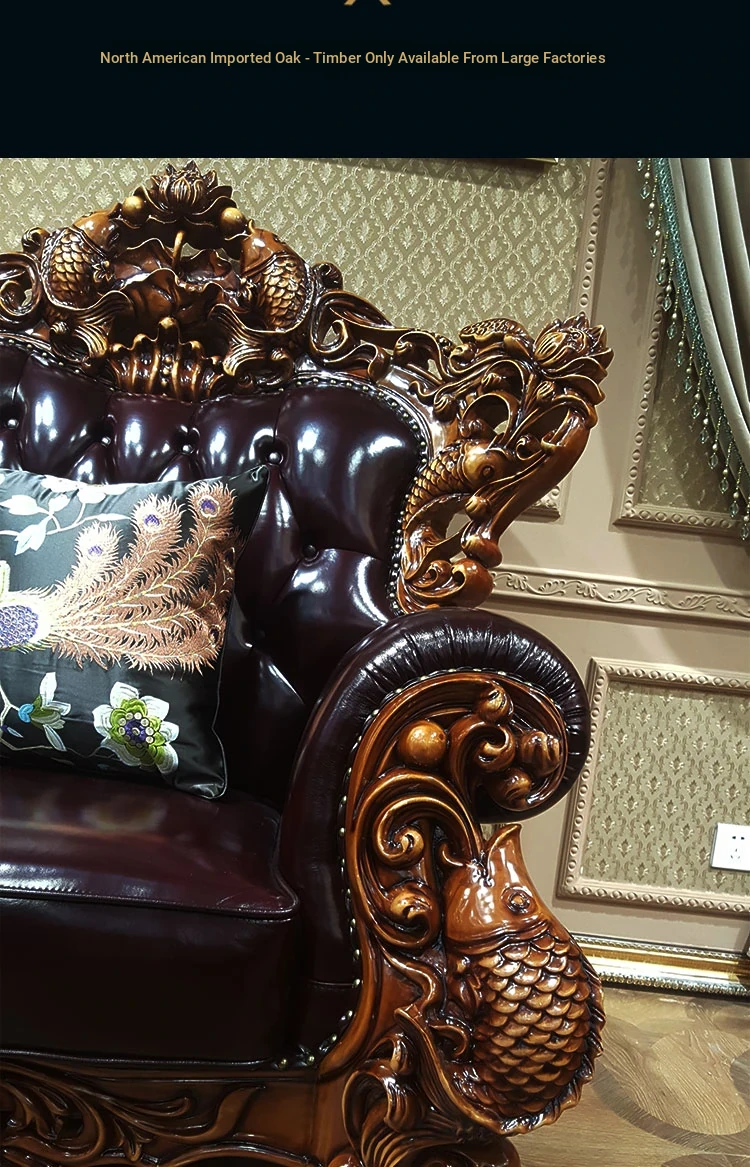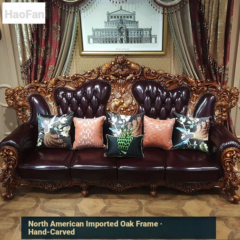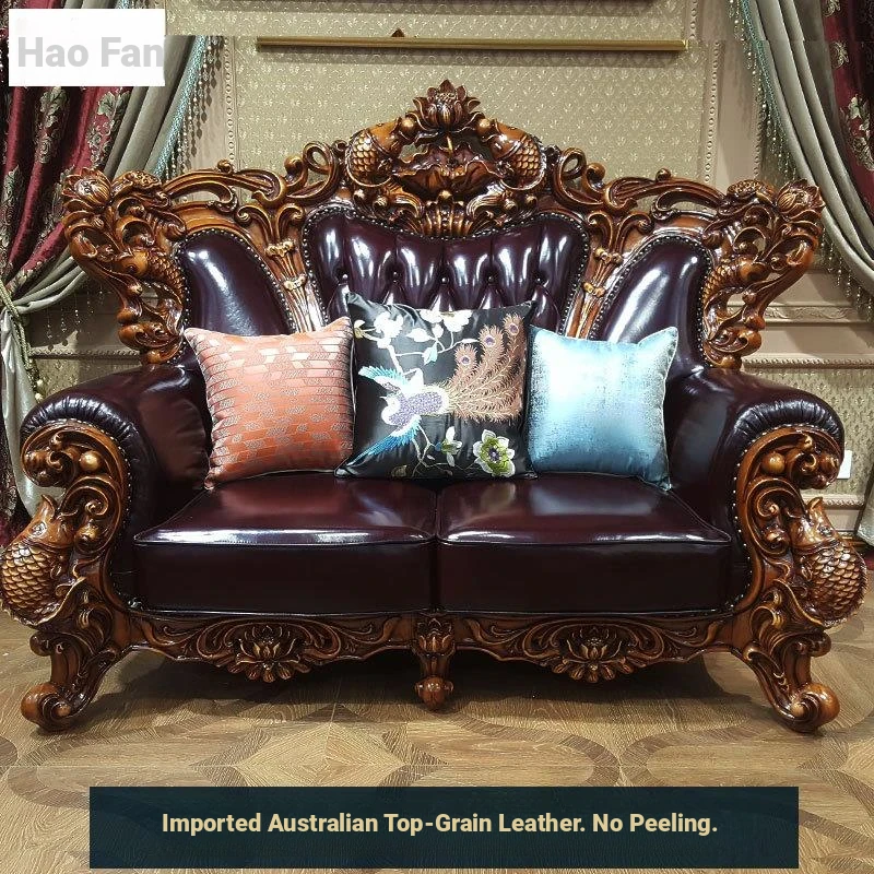 Luxurious European-Style Villa Sofa Set - Elegant 123 Combination in Premium Genuine Leather for Spacious Living Rooms - High-End and Sophisticated Design for Modern Homes.