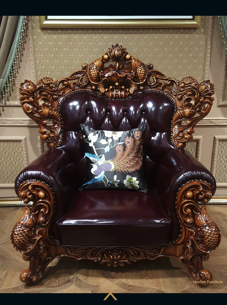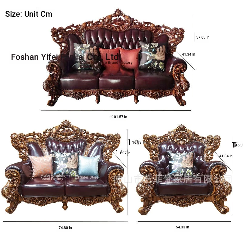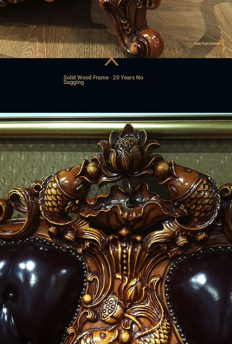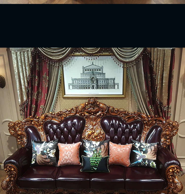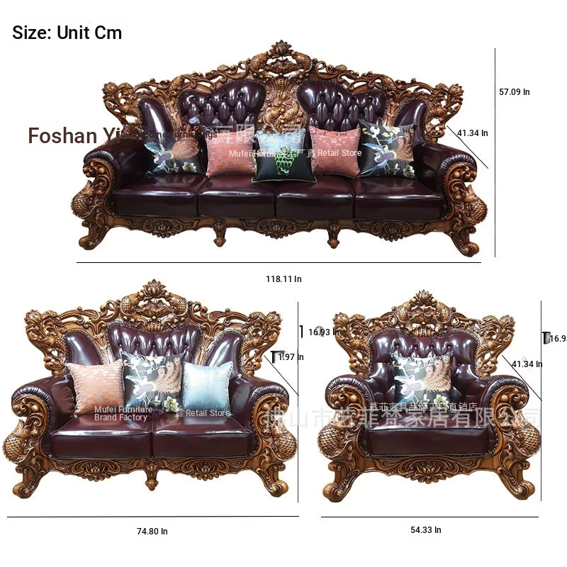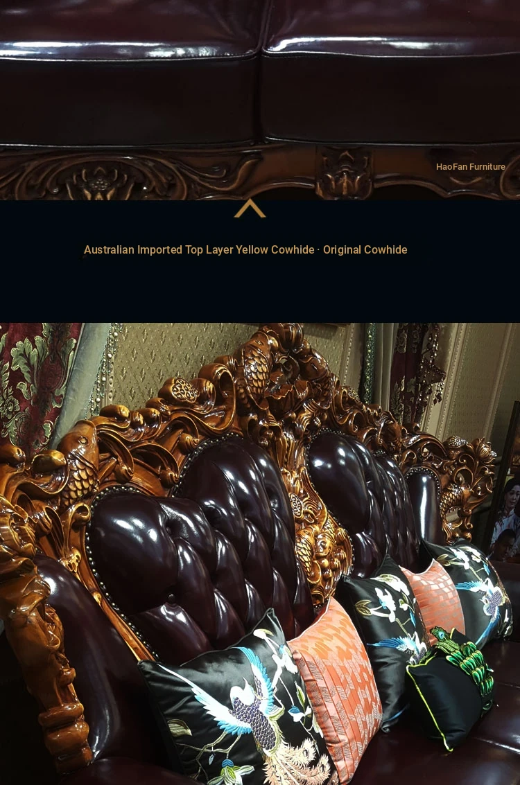 Luxurious European-Style Villa Sofa Set - Elegant 123 Combination in Premium Genuine Leather for Spacious Living Rooms - High-End and Sophisticated Design for Modern Homes.