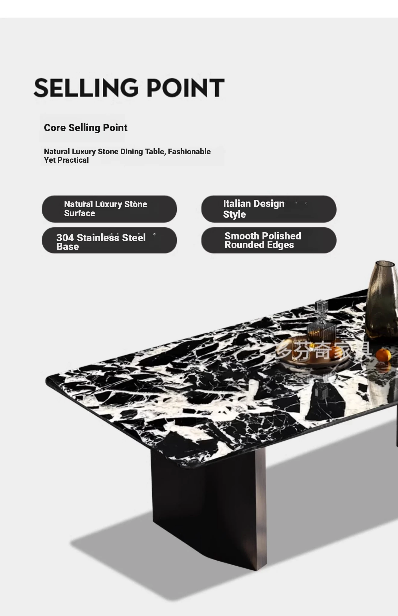 180*90 Bulgari Black Luxury Stone +8 Chair