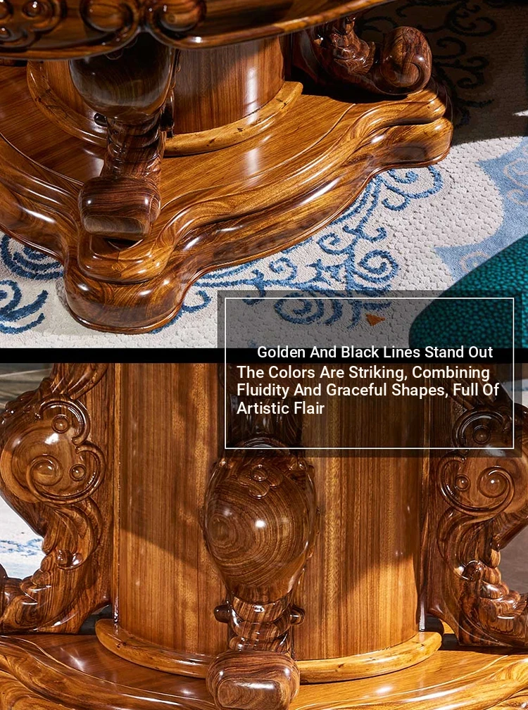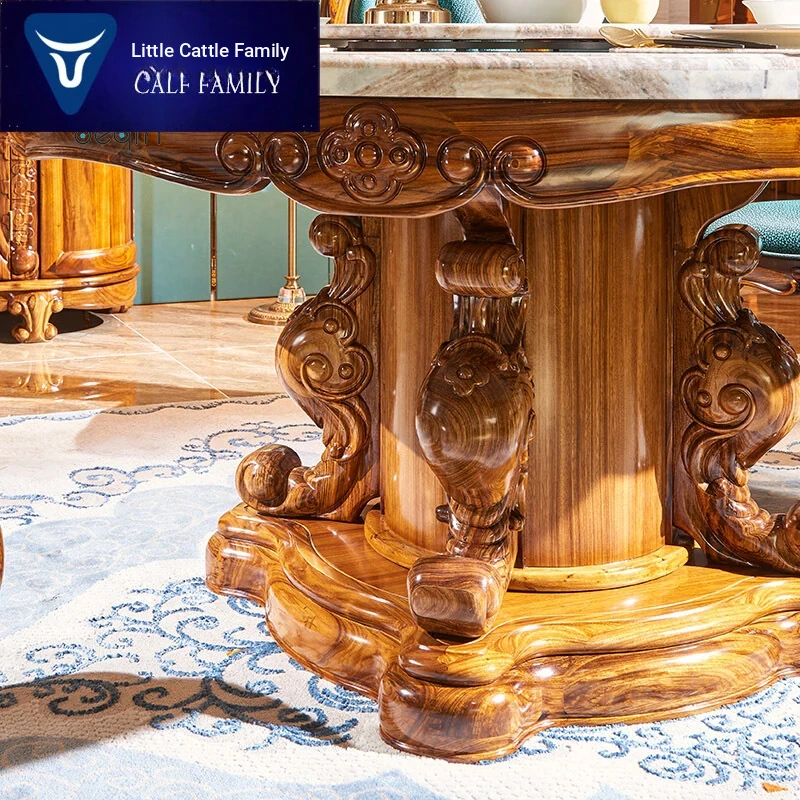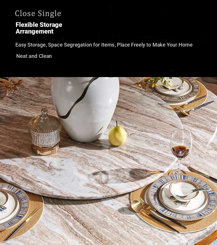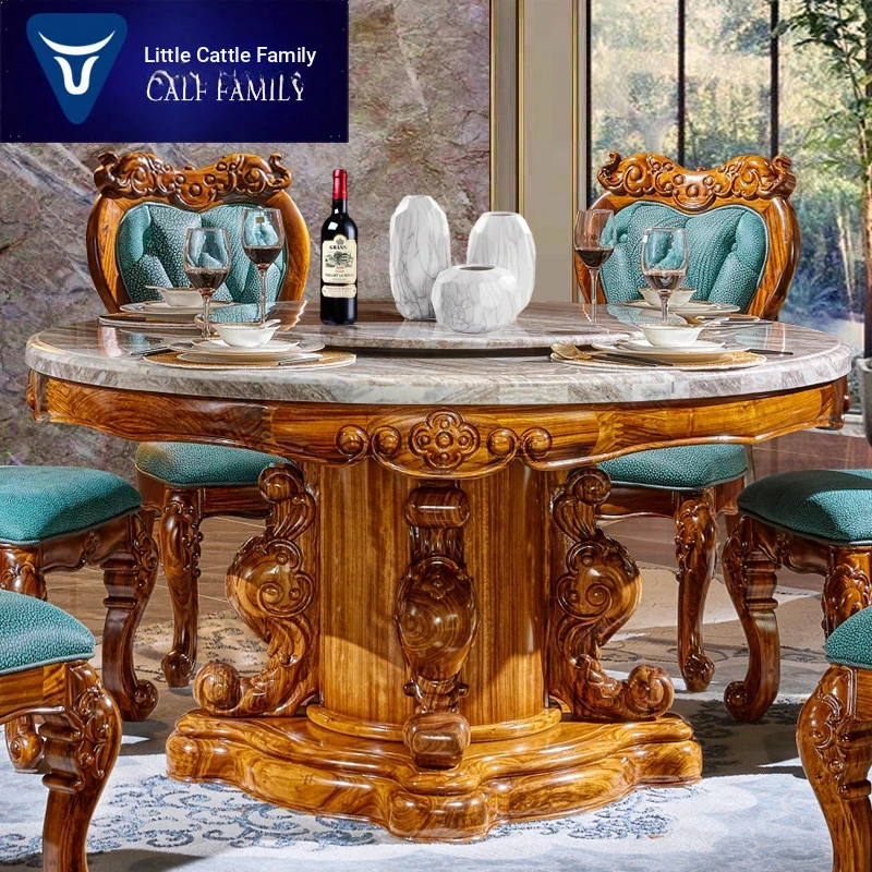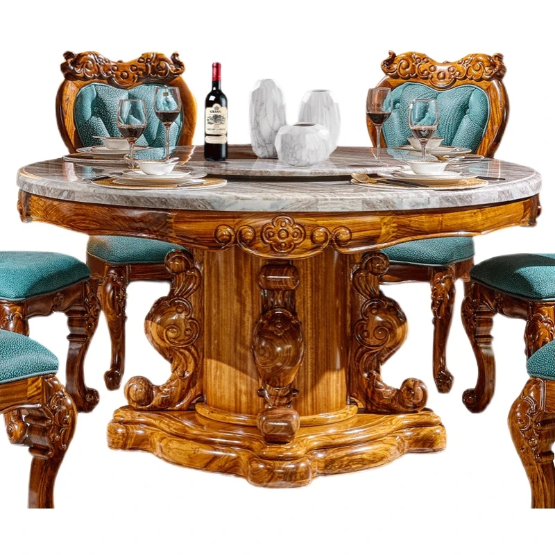 Luxury Round Dining Table Set with Chairs in Black Gold Marble - Elegant European Style for High-End Villas and Homes
