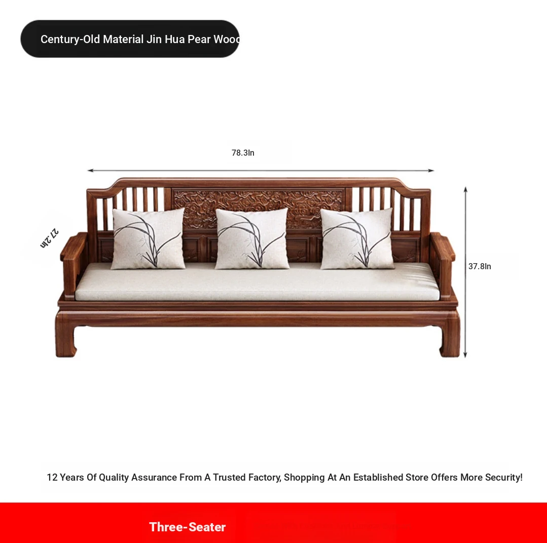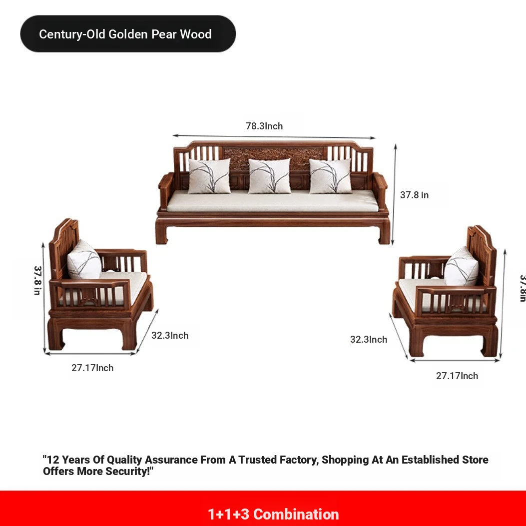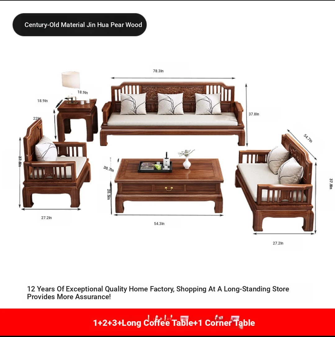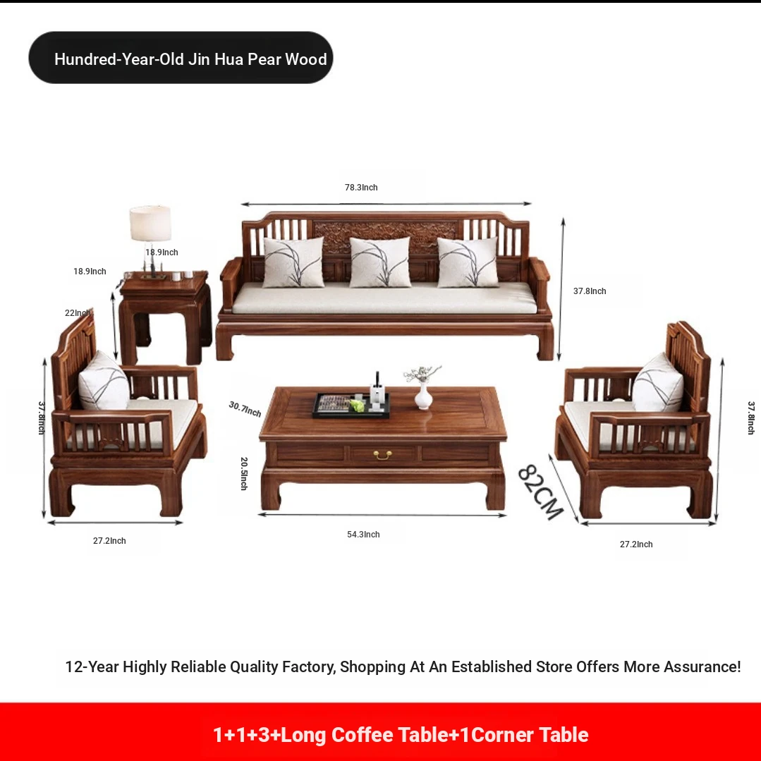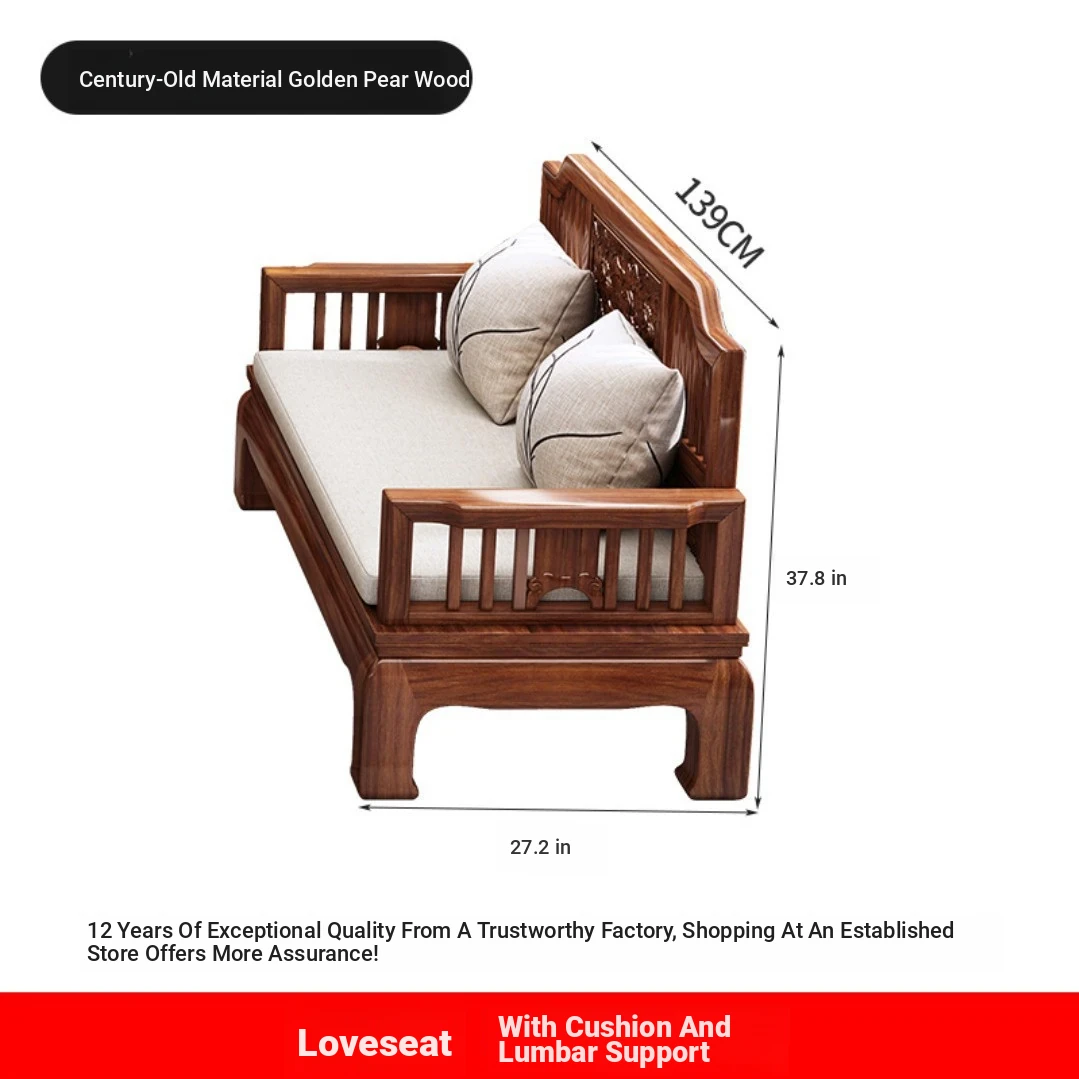 Modern Chinese Antique Style Golden Pear Wood Sofa Set - Versatile Corner Chaise Lounge for All Seasons, Fully Solid Wood Construction, Elegant and Minimalist Design.