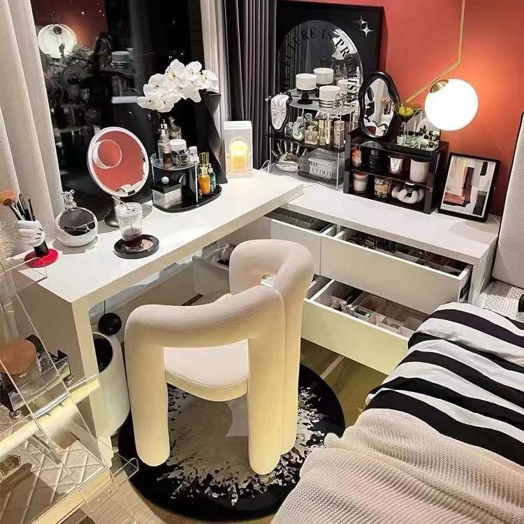 Modern Cream Design Makeup Chair with Backrest – Minimalist Luxury Vanity Stool for Bedroom and Dining Room Use