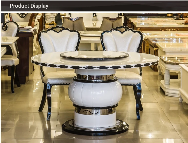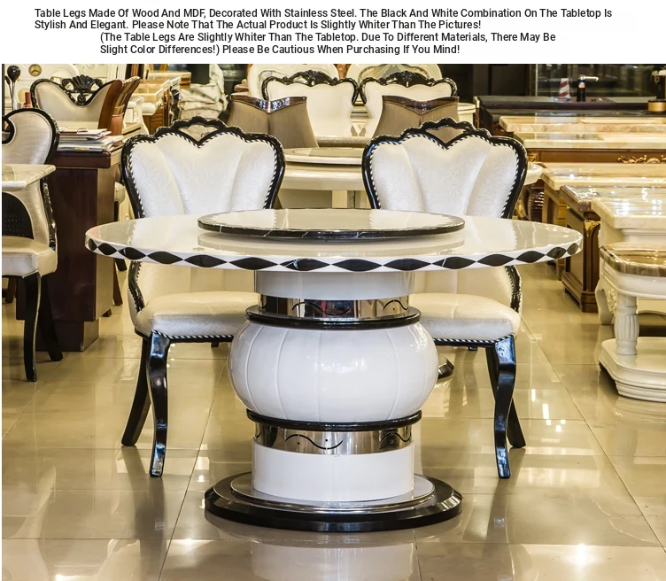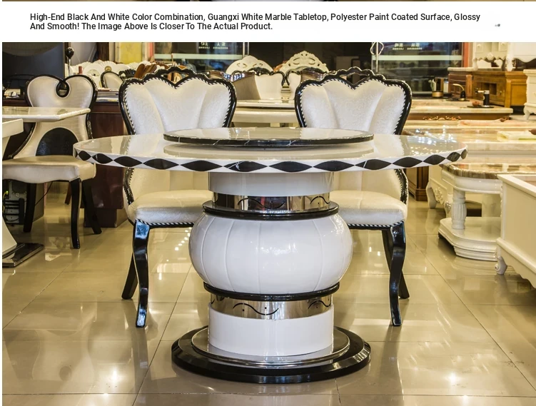Modern European Marble Dining Table Set - 6-Person Round Solid Wood Table with Rotating Tray - Stylish and Minimalist Design for Elegant Dining Experiences
