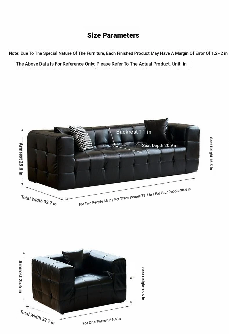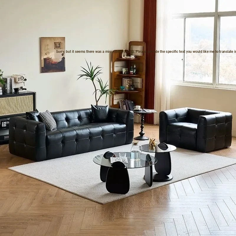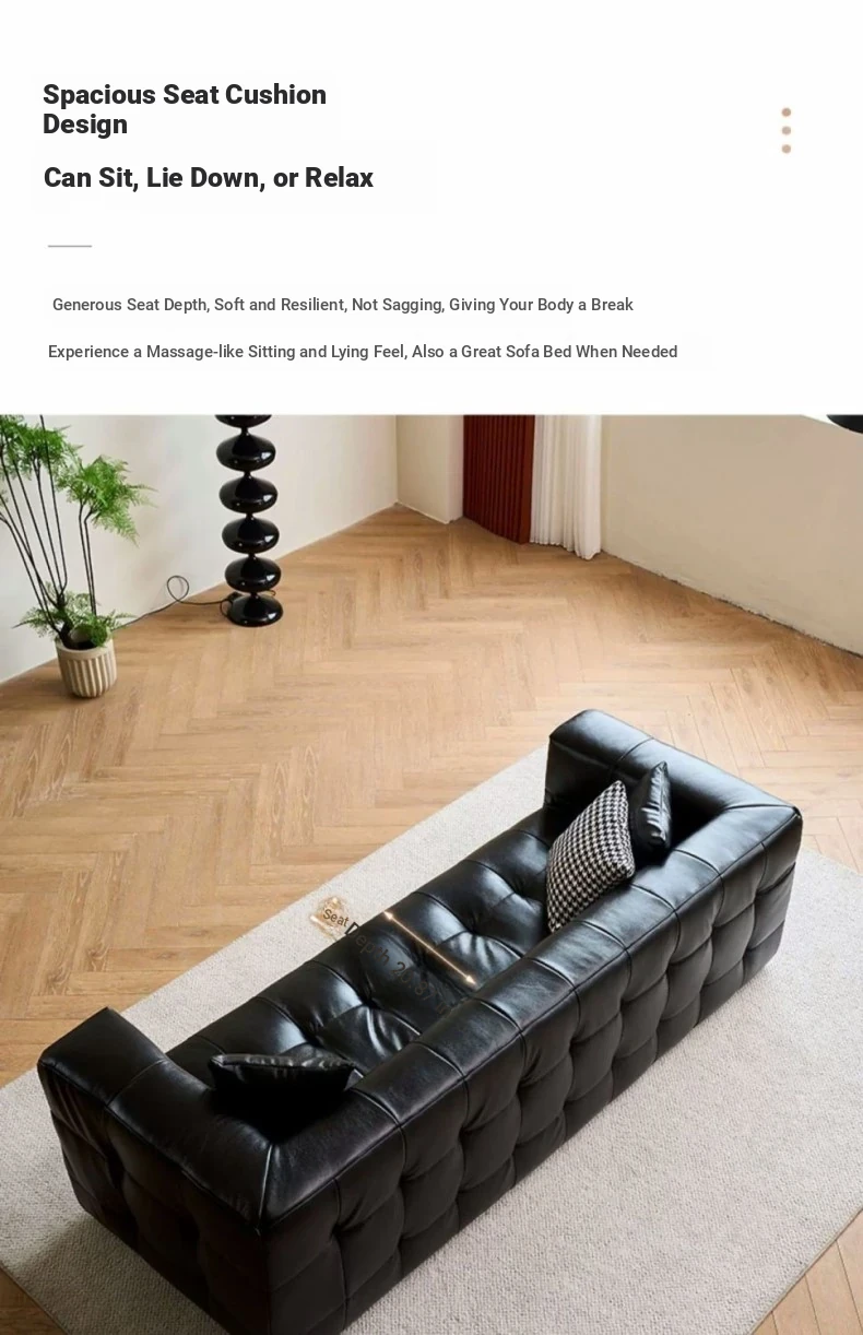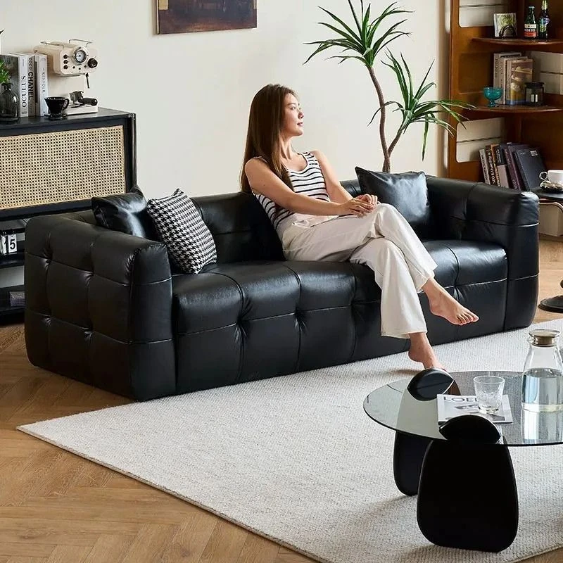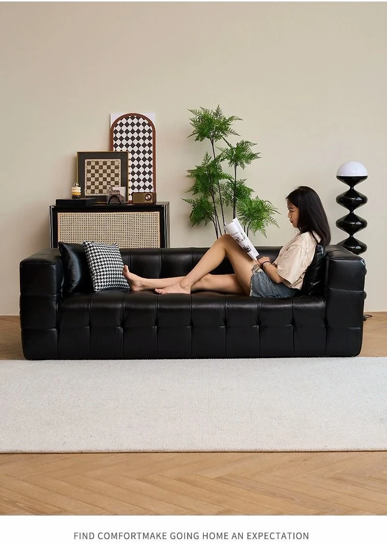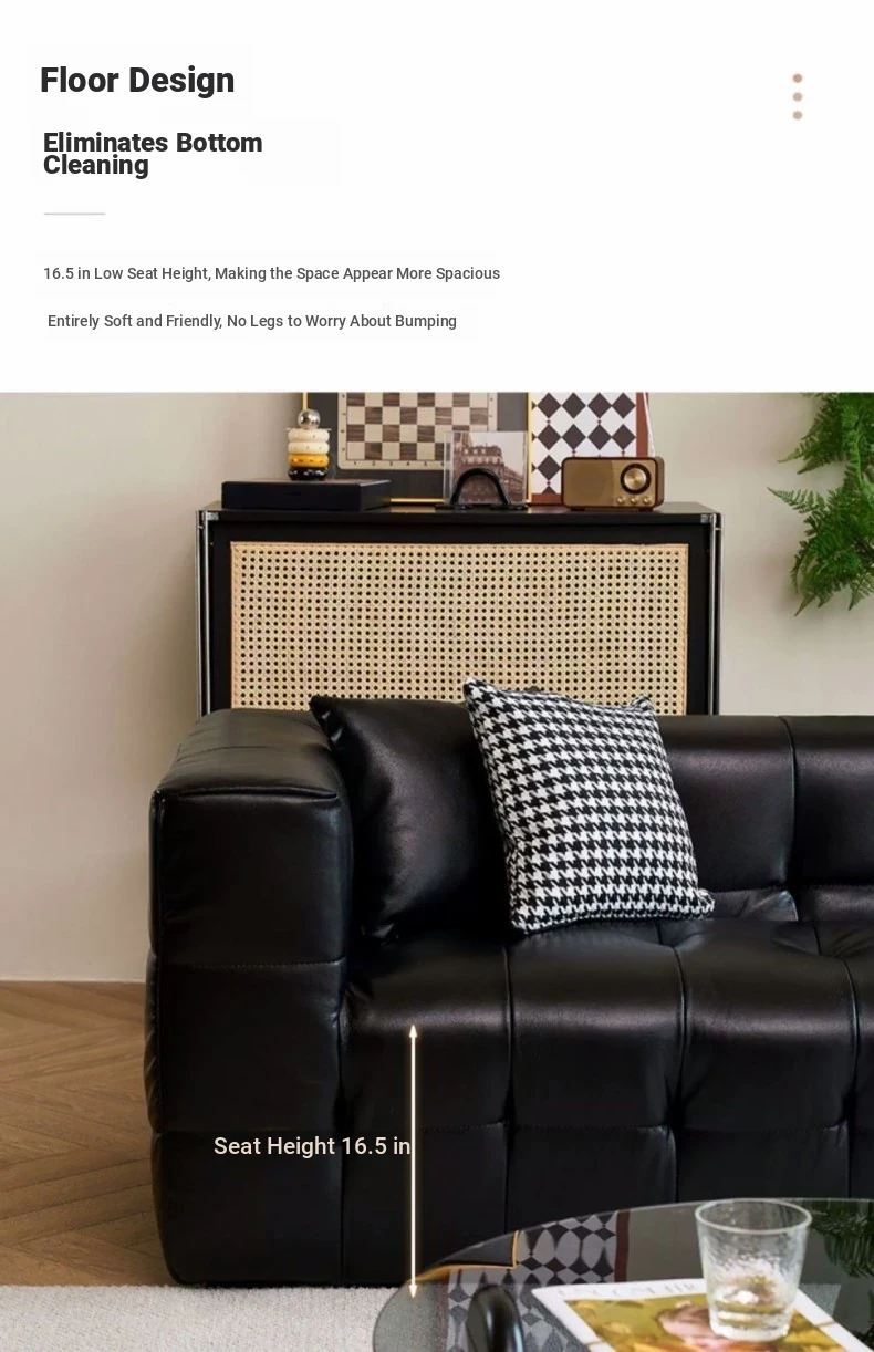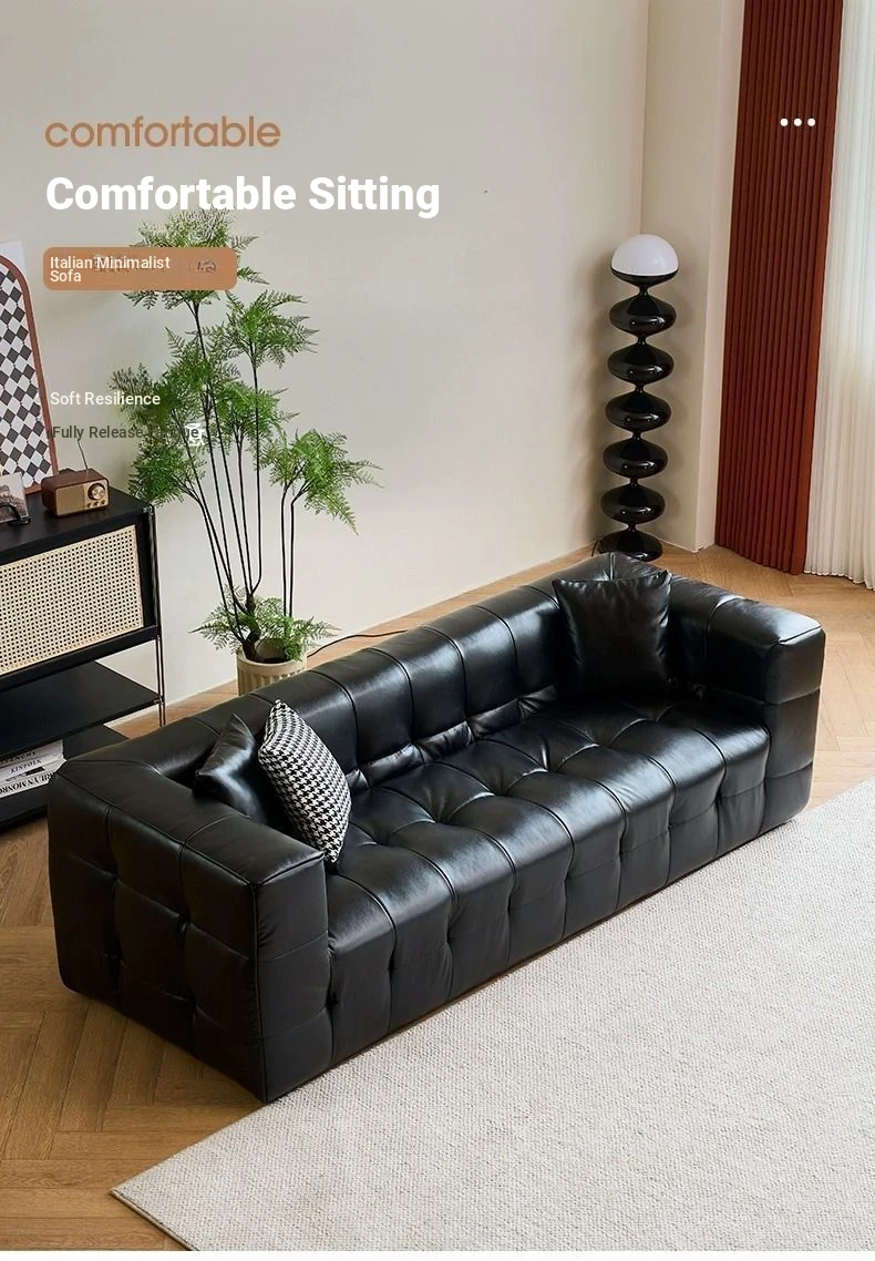 Modern Minimalist Black Leather Sofa Set for Small Living Rooms - Italian Design, Double Seat with Cat Claw Resistant Upholstery, Perfect for Contemporary Spaces