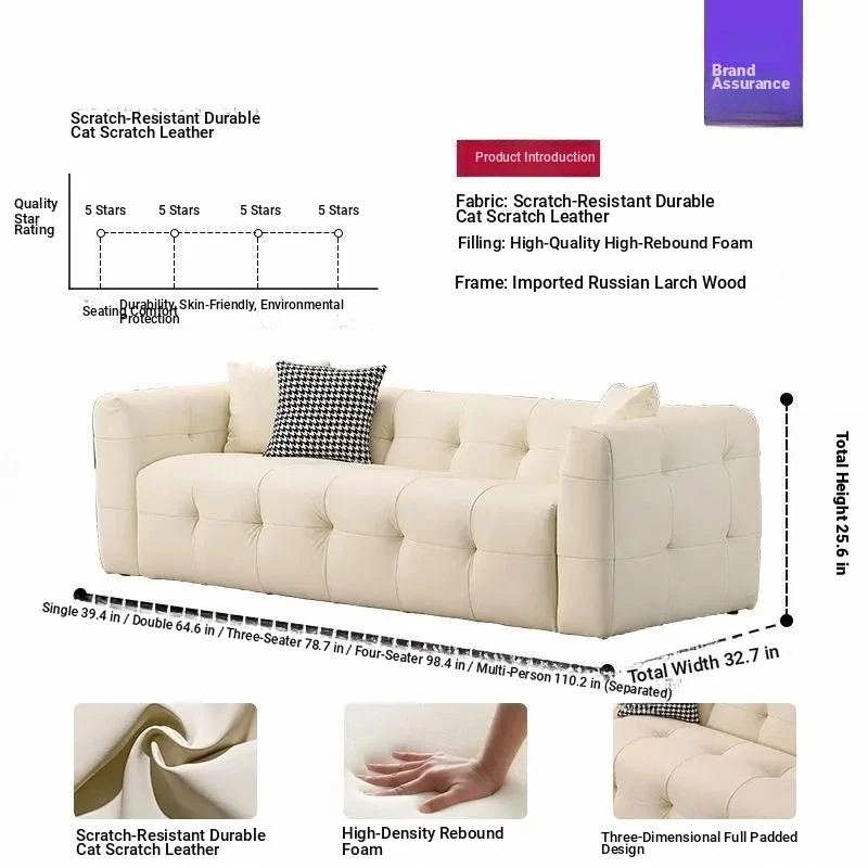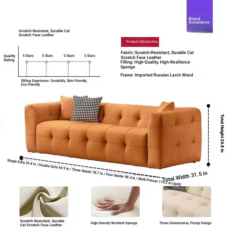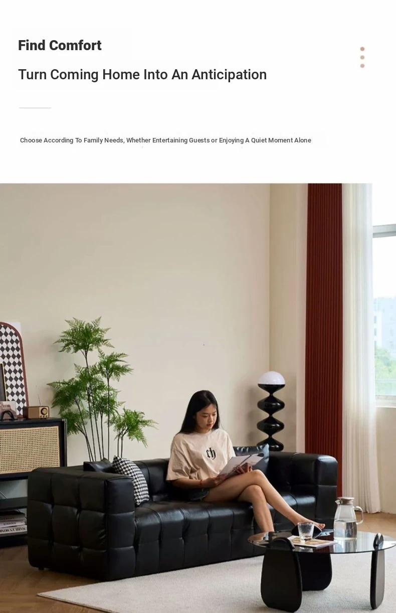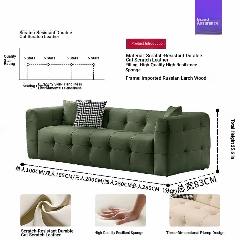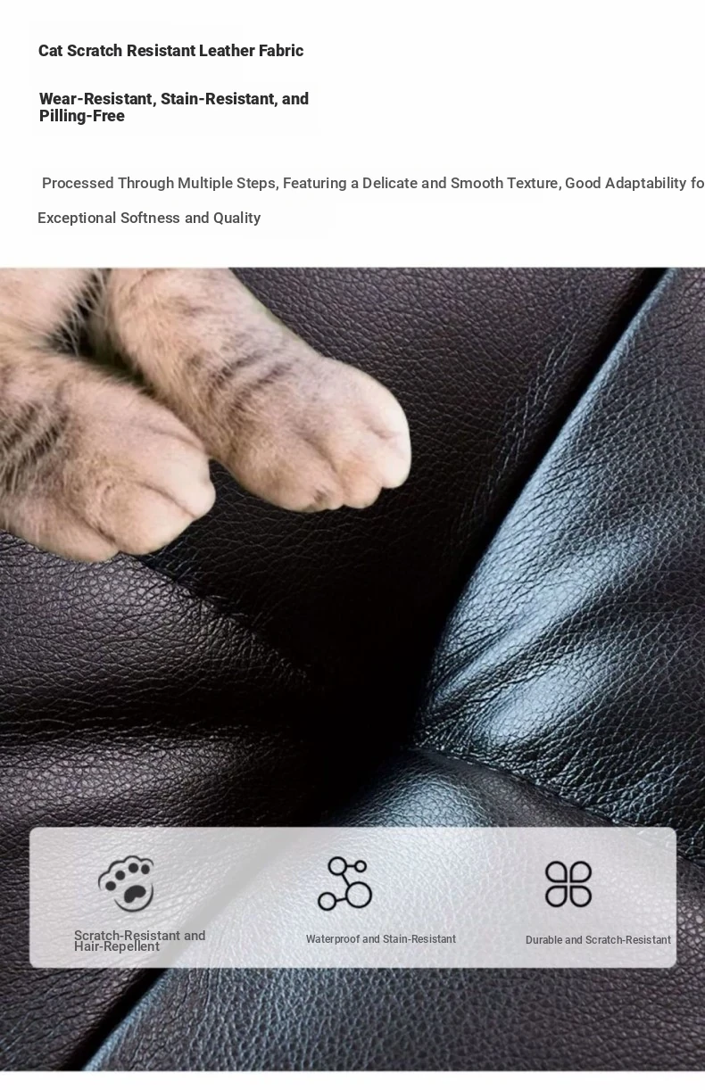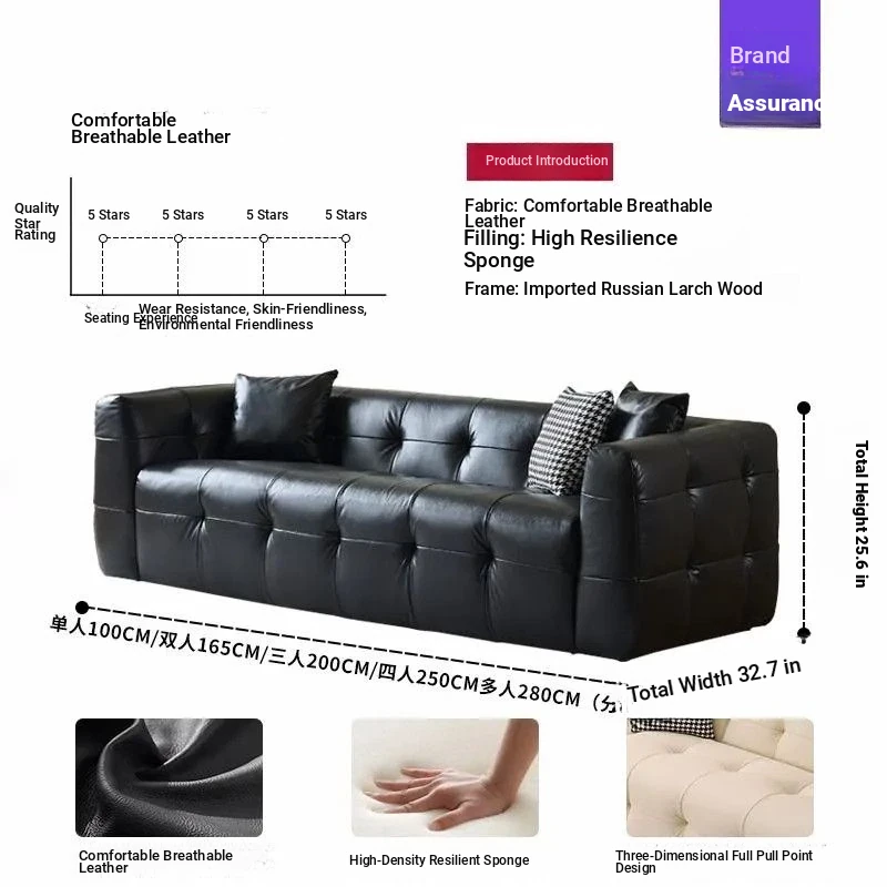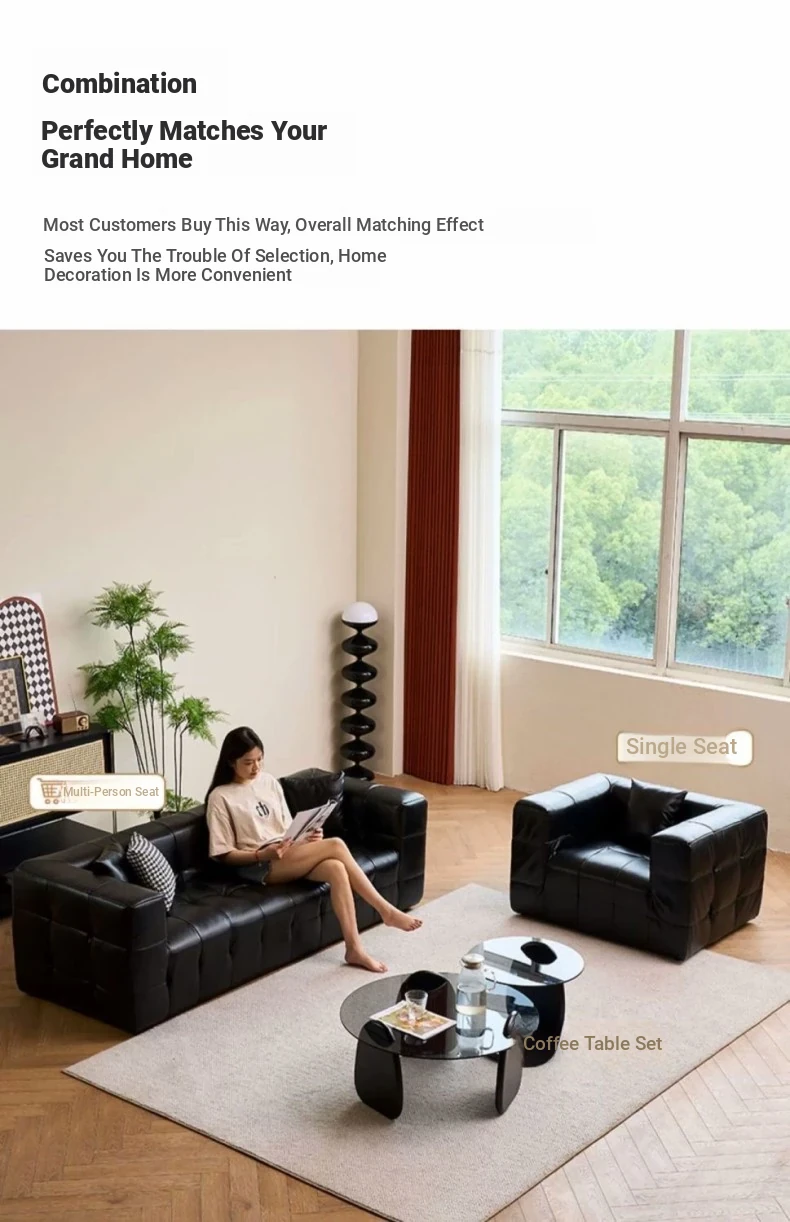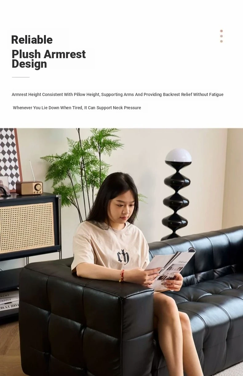 Modern Minimalist Black Leather Sofa Set for Small Living Rooms - Italian Design, Double Seat with Cat Claw Resistant Upholstery, Perfect for Contemporary Spaces