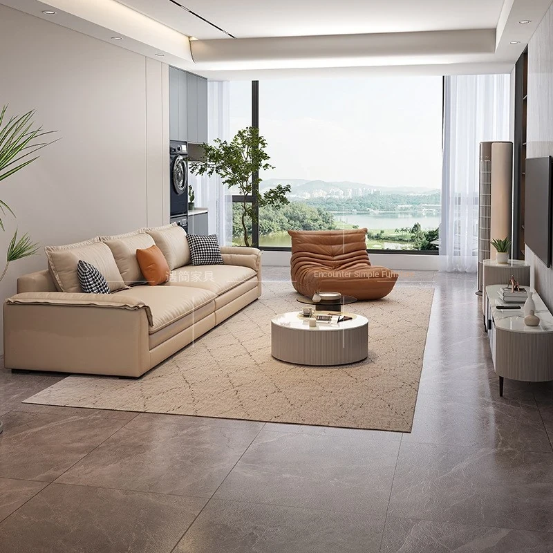 Modern Minimalist Large Sailboat Fabric Sofa - Italian Style, Compact Design for Small Spaces, Straight-Line Living Room Latex Sofa - New Arrival!