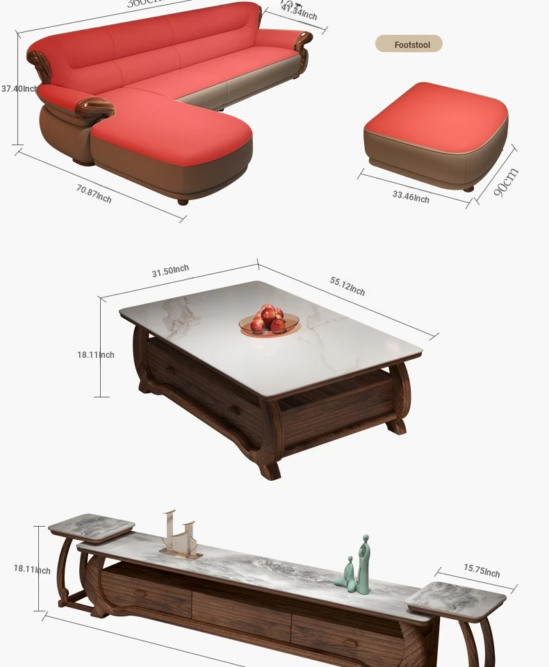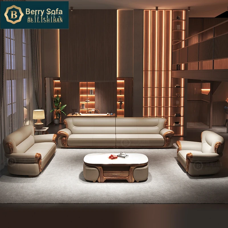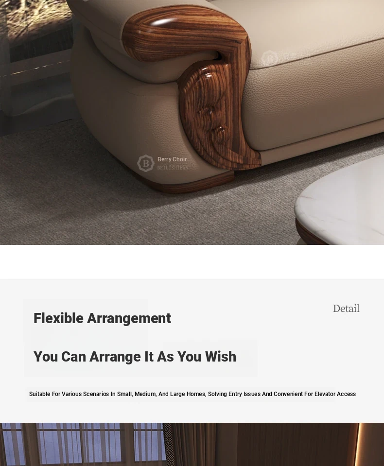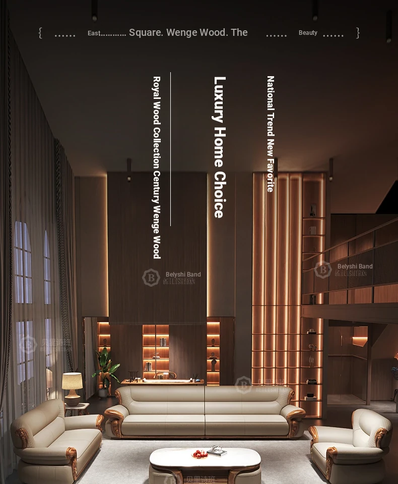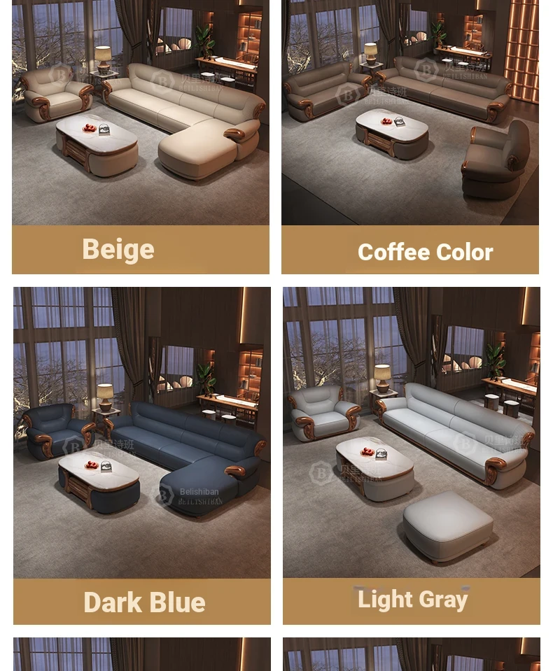 Modern Minimalist New Chinese Style Black Gold Wood Genuine Leather Sofa Set – 2025 New Arrival for Living Room, Straight and Corner Design with Solid Wood Frame