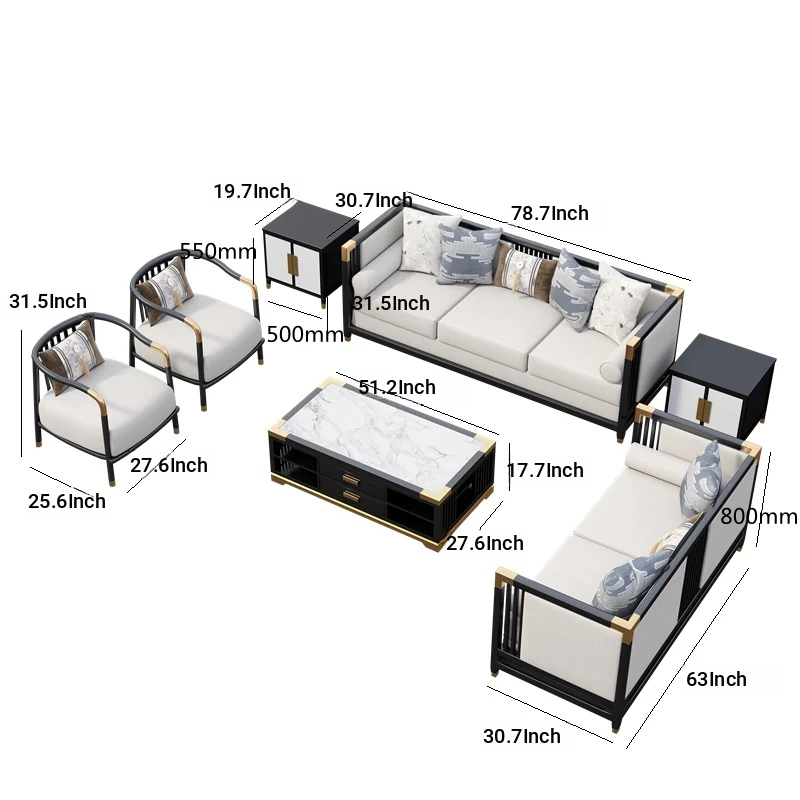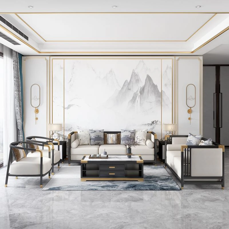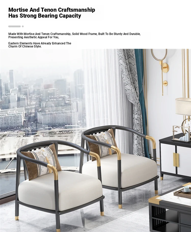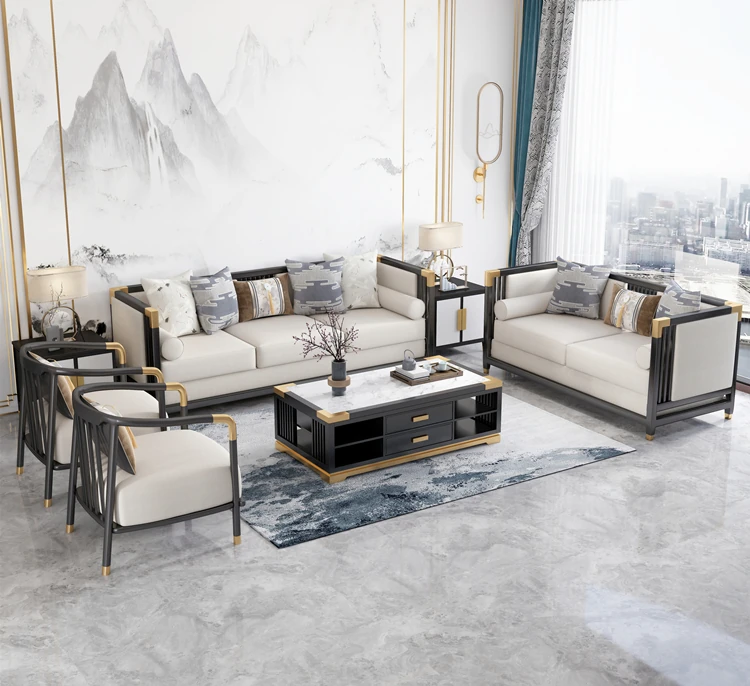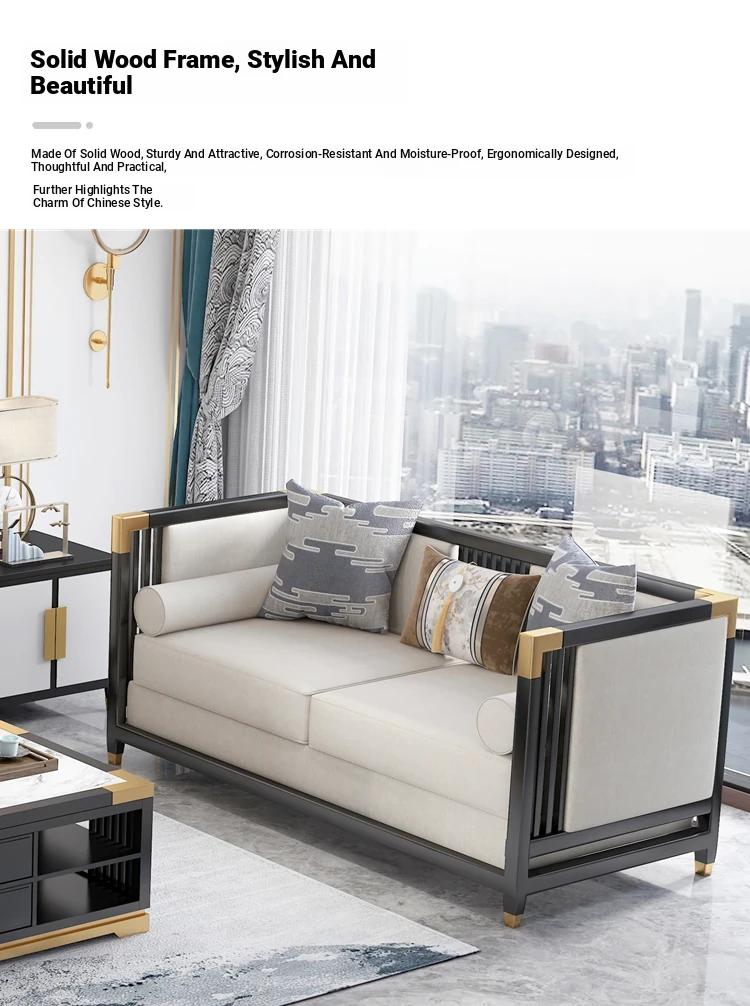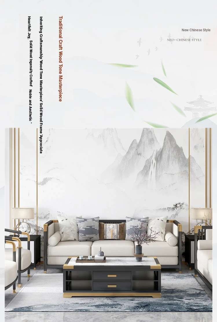 Modern Minimalist New Chinese Style Sofa Set - Elegant Full Solid Wood Furniture for Villas and Small Apartments, Perfect for Luxurious Living Spaces.