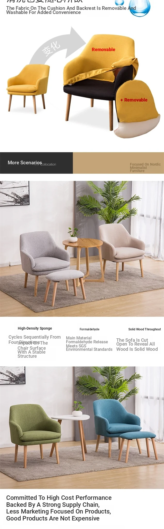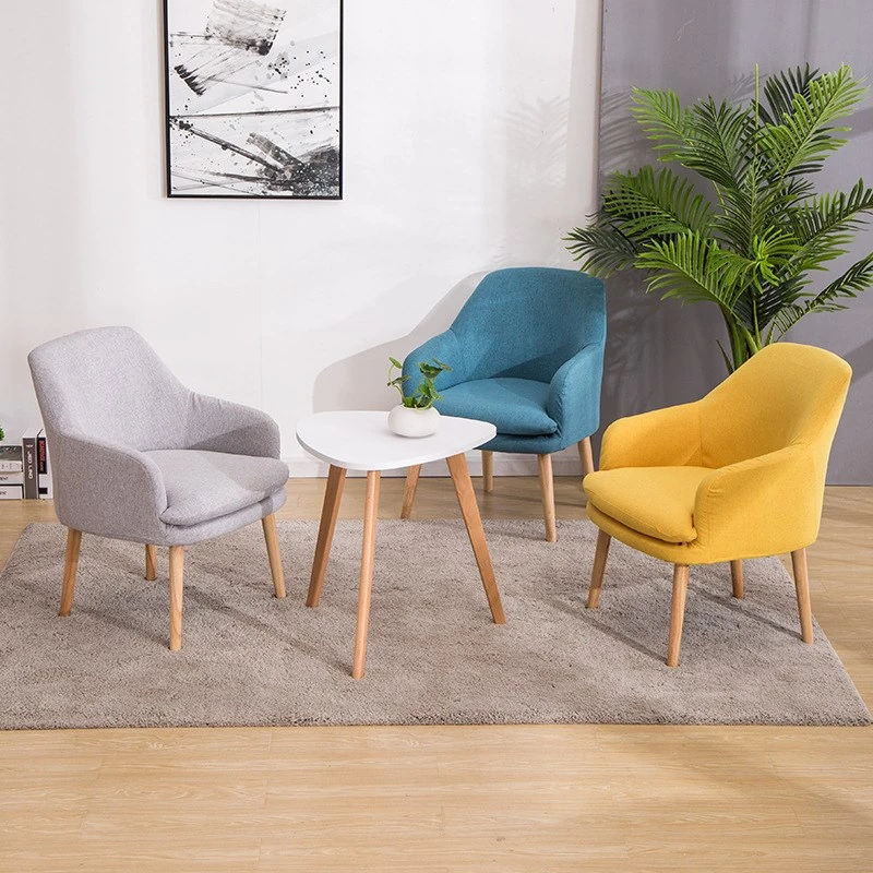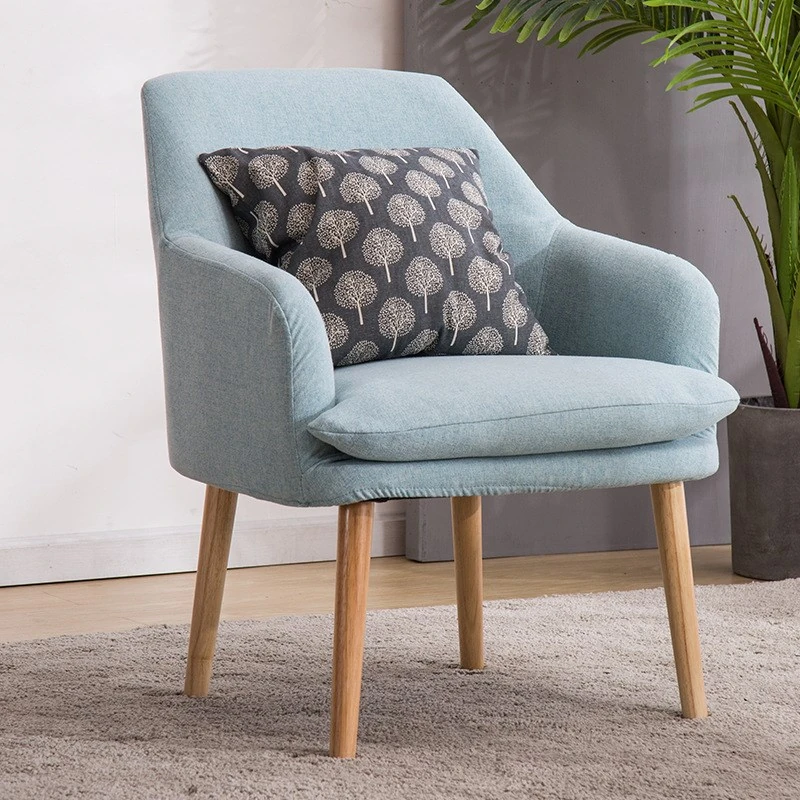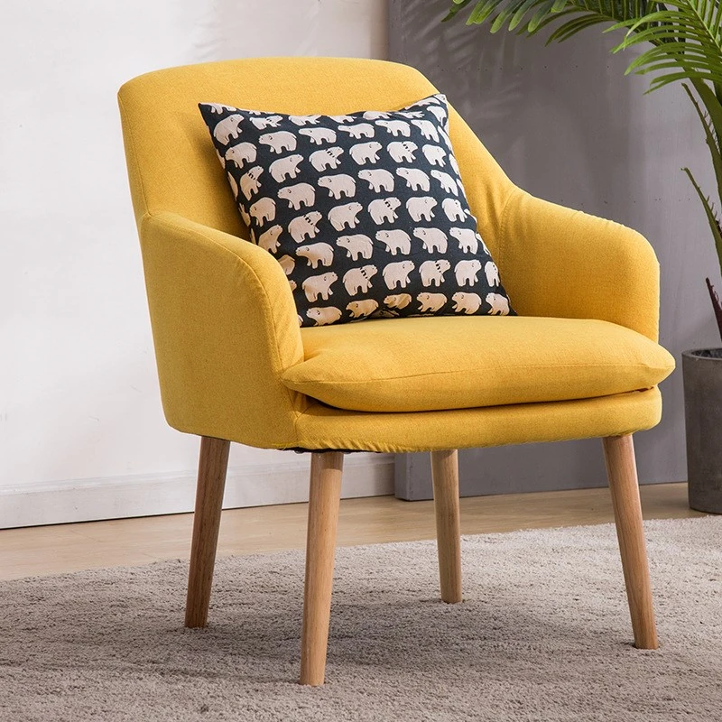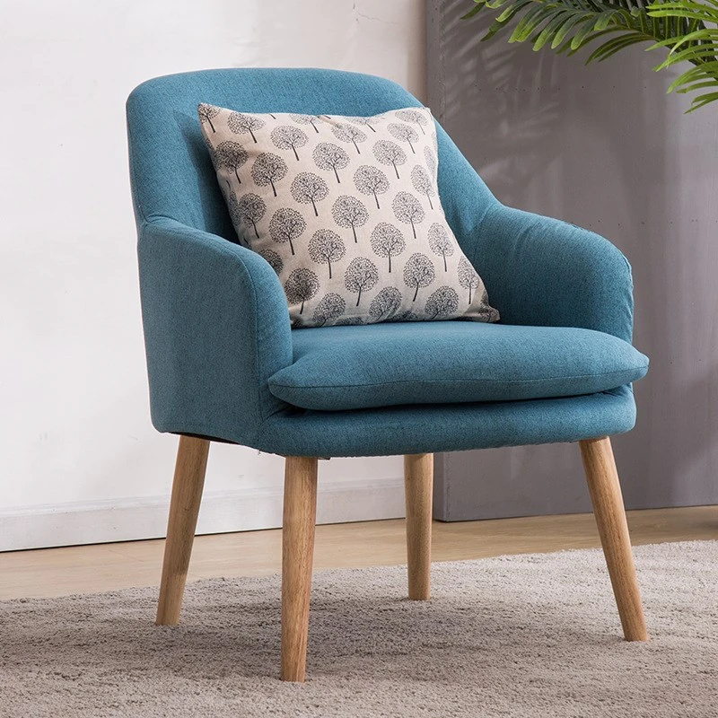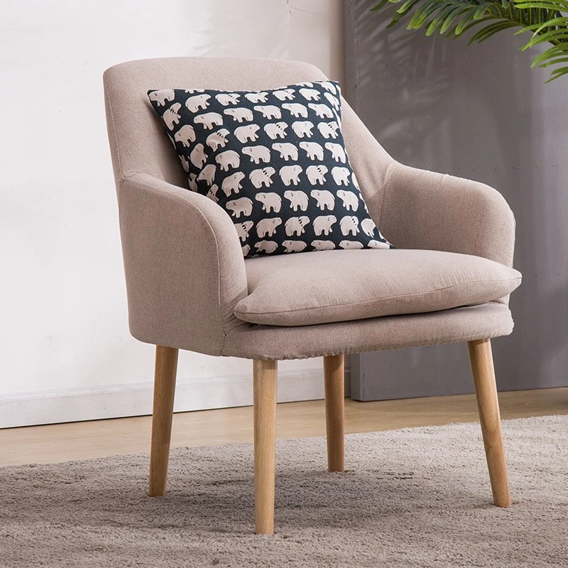 Modern Minimalist Solid Wood Fabric Single Sofa - Stylish and Comfortable Lounge Chair for Balcony, Bedroom, Dining Room, and Courtyard - Perfect for Relaxation and Creative Spaces.
