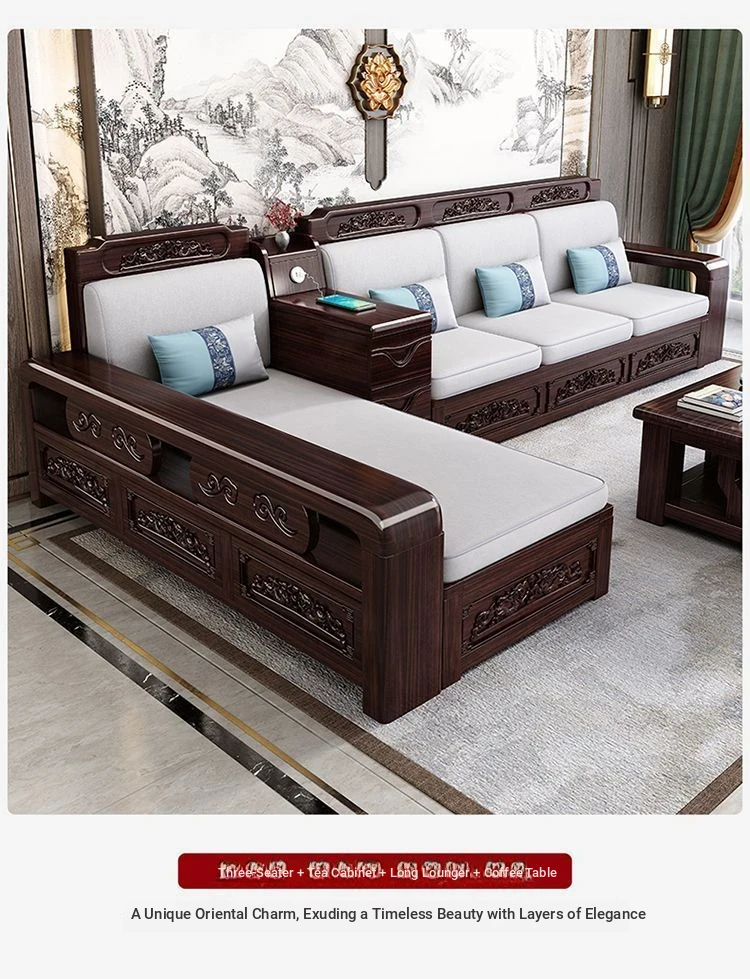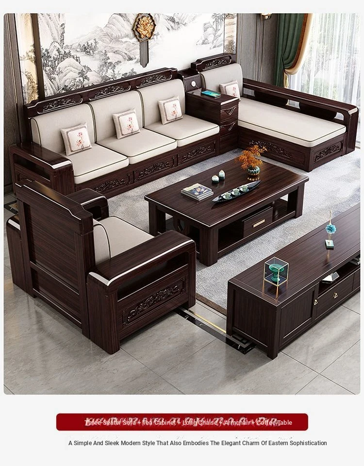 Three people + double long imperial concubine + drawer tea table + TV cabinet