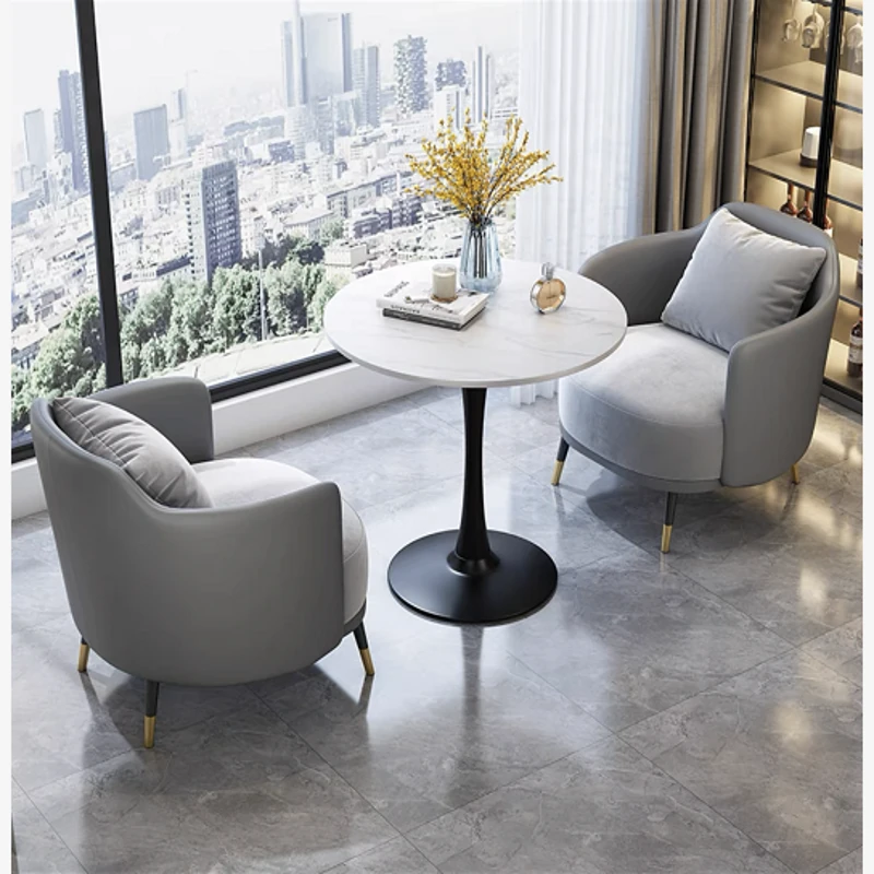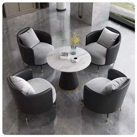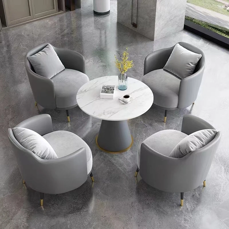 Modern Reception Desk and Chair Set for Real Estate Offices - Stylish Sofa, Coffee Table, and Round Negotiation Table Combo - Perfect for Client Meetings with Comfortable Seating for Two