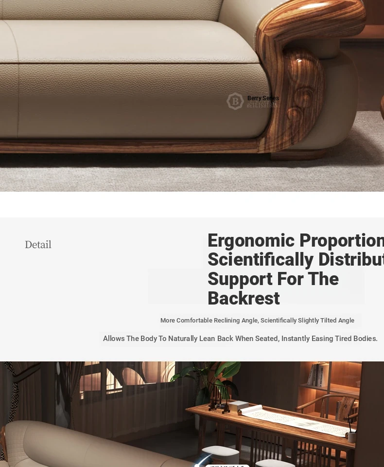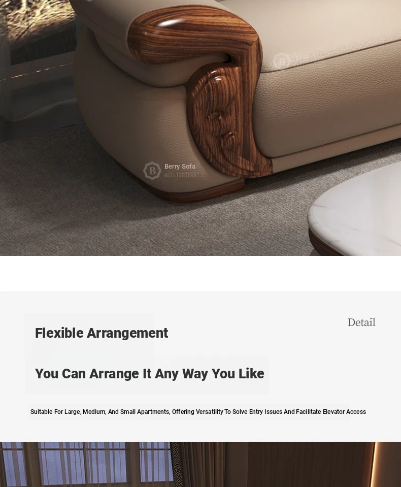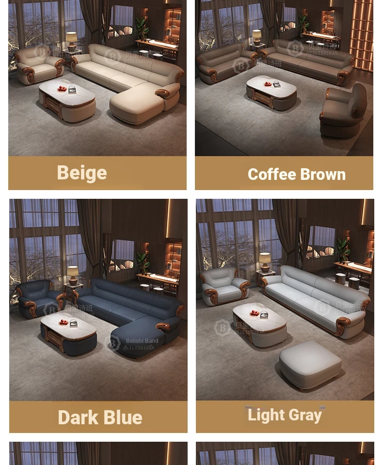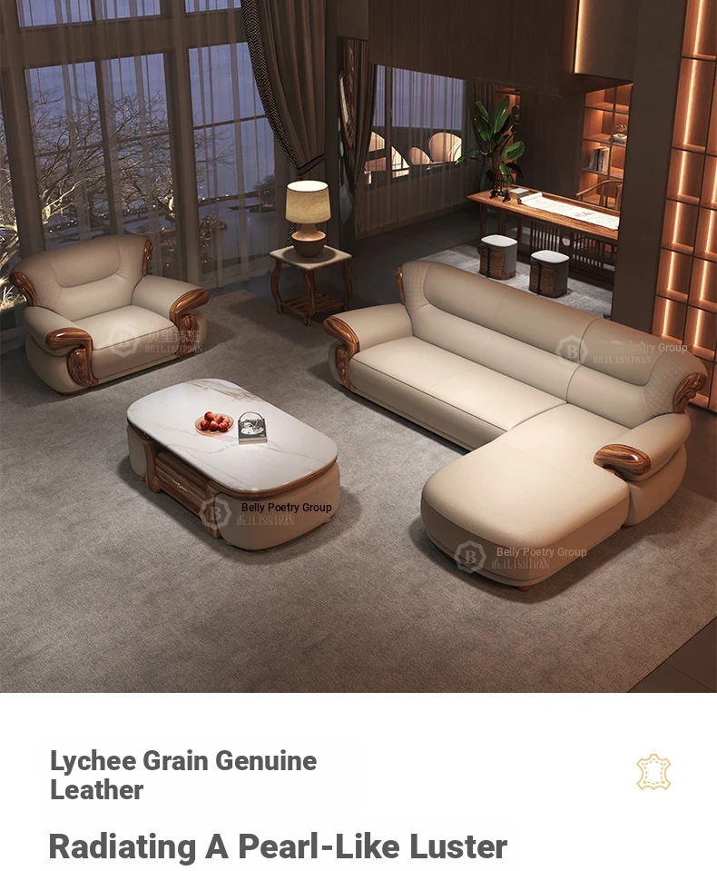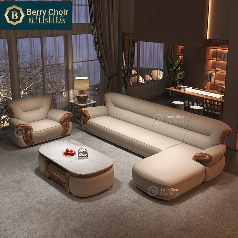 New Chinese Style Black Walnut Leather Sofa Set for Living Room - Versatile Design for Large and Small Spaces, Perfect for Villas - 2025 New Arrival