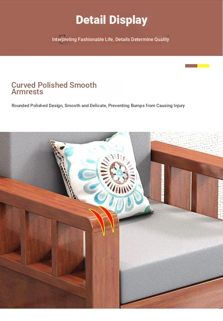 [Single] Sofa 31.50in/Classy Teak Color [Real Wood Cushion Pillow]]
