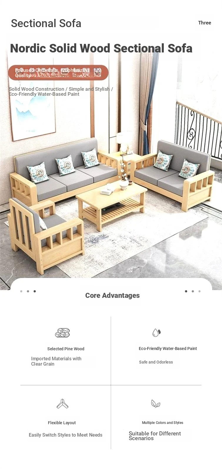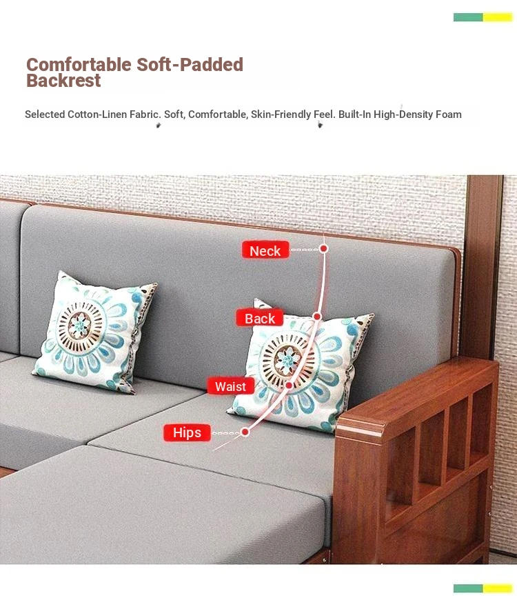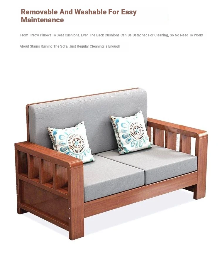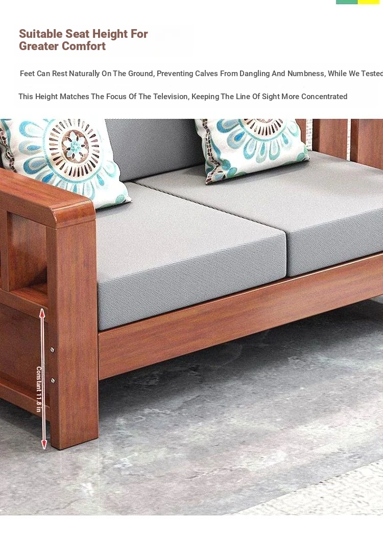 [Three Seats] Sofa 78.74in/Transparent Varnish [Real Wood Cushion Pillow]]