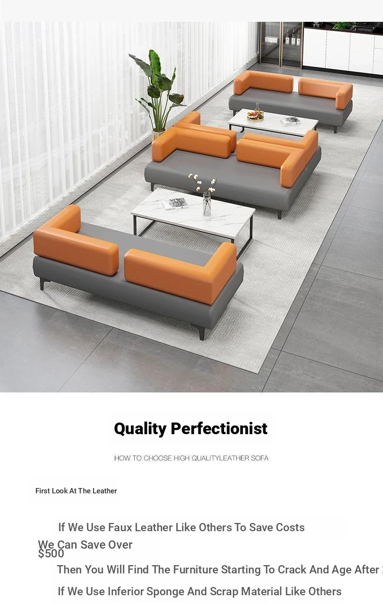 Office Sofa and Coffee Table Set - Elegant Reception Furniture for Business Meetings, Hotel Lobbies, Waiting Areas, and Discussions - Premium Solid Wood Design