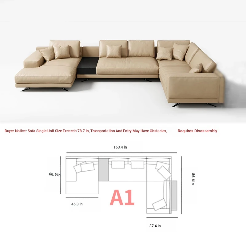 Poliform Mondrian Sofa - Italian Minimalist Leather Designer Piece for Luxury Villas and Spacious Interiors