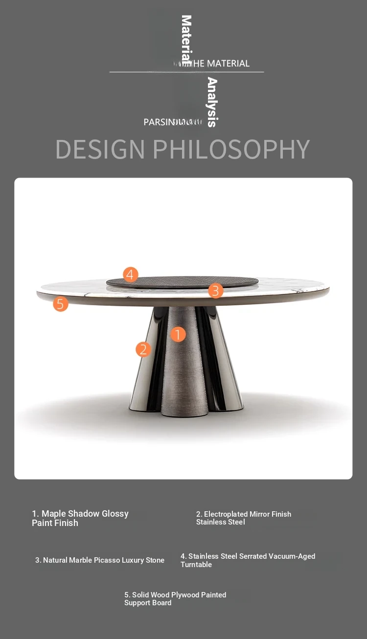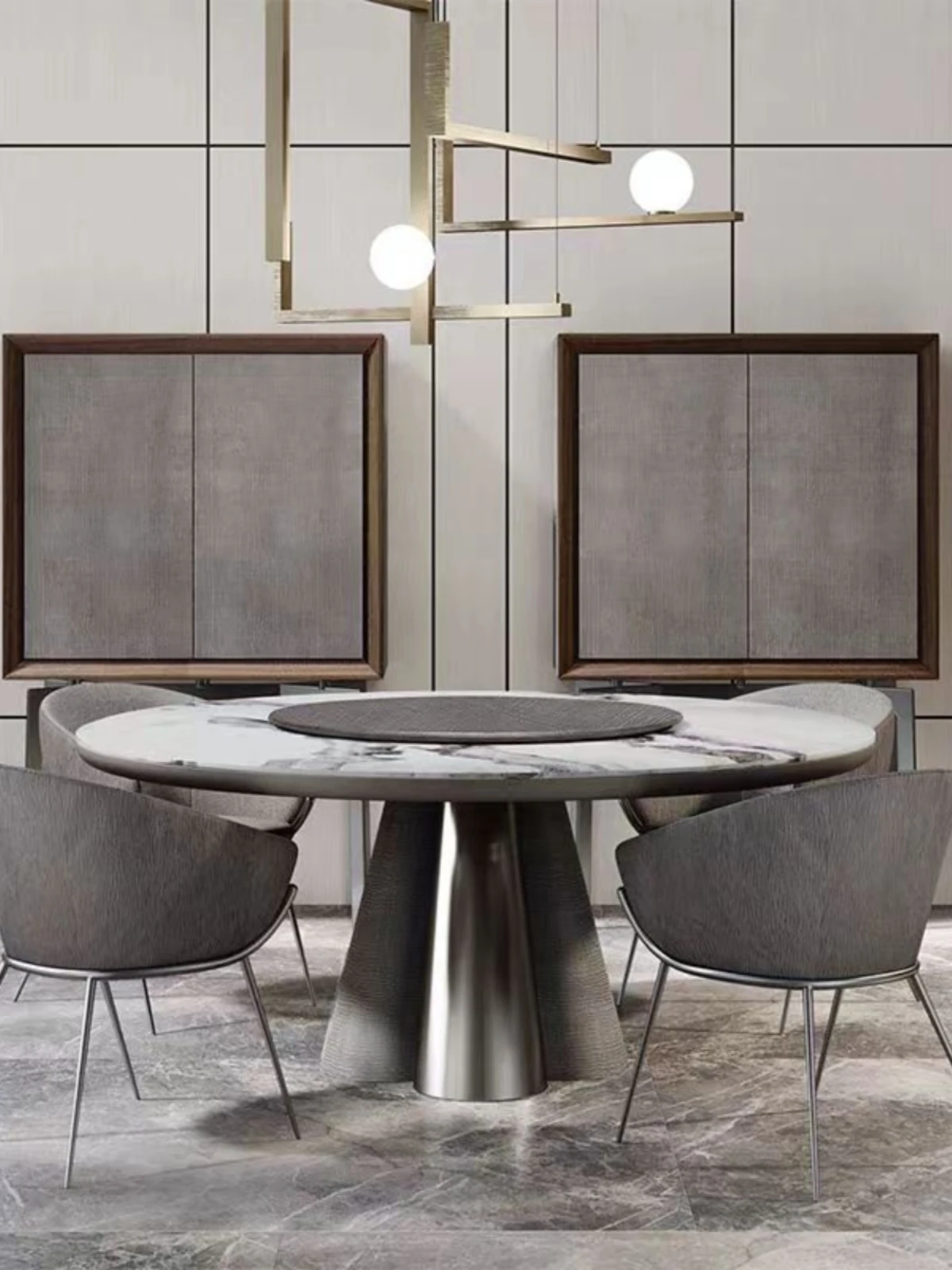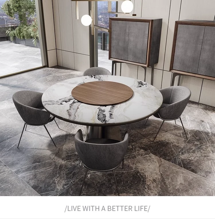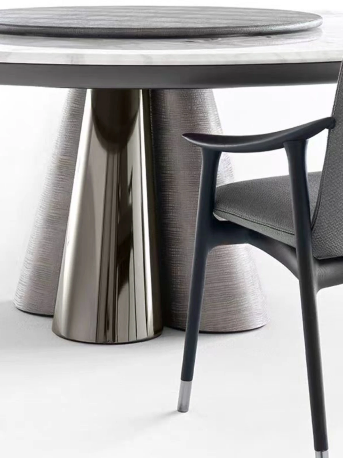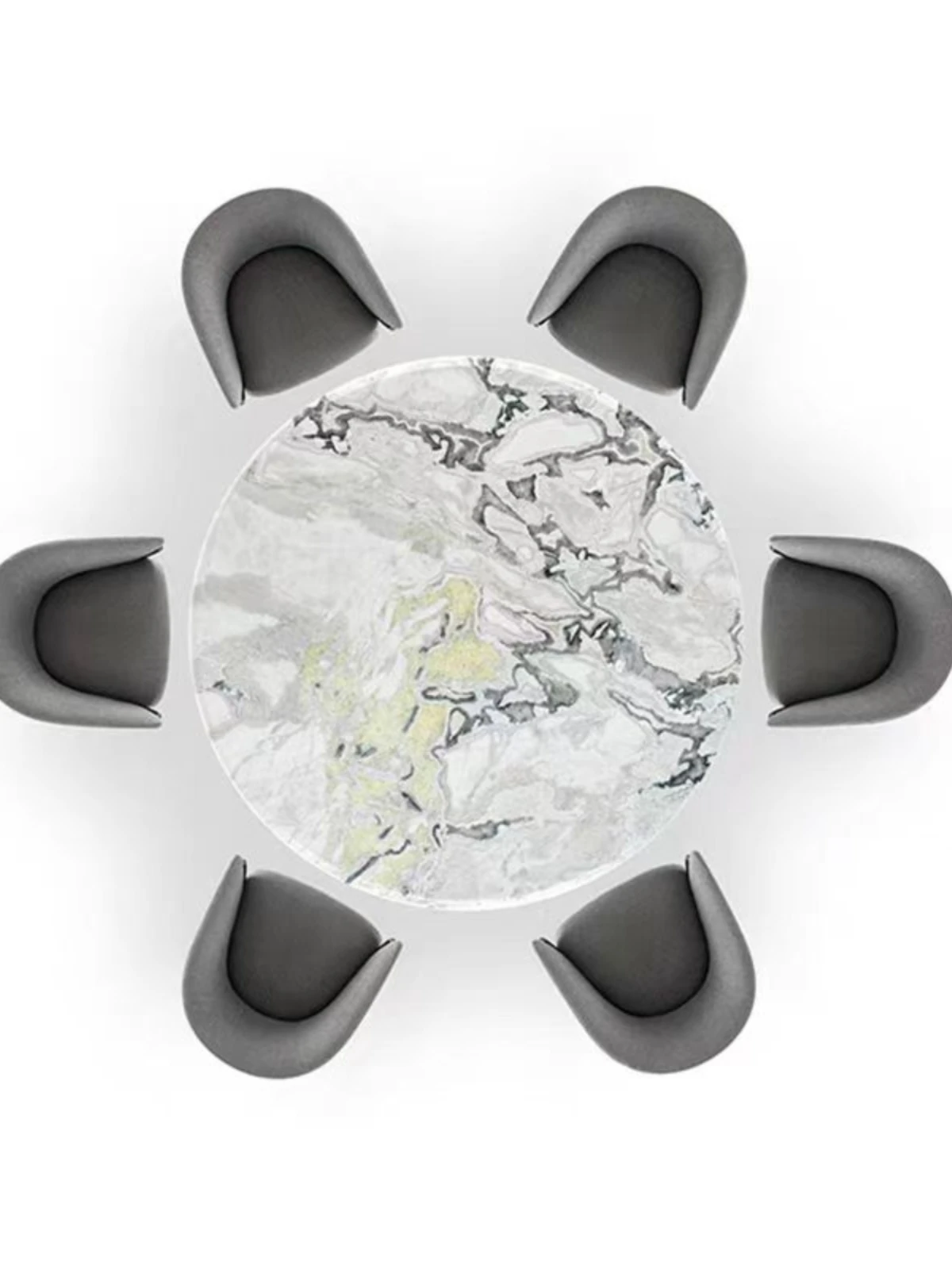 Postmodern Luxury Jazz White Marble Dining Table and Chair Set - Designer Home Furnishing with Premium Italian Marble Round Table for Elegant Dining Experience