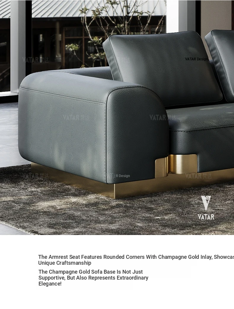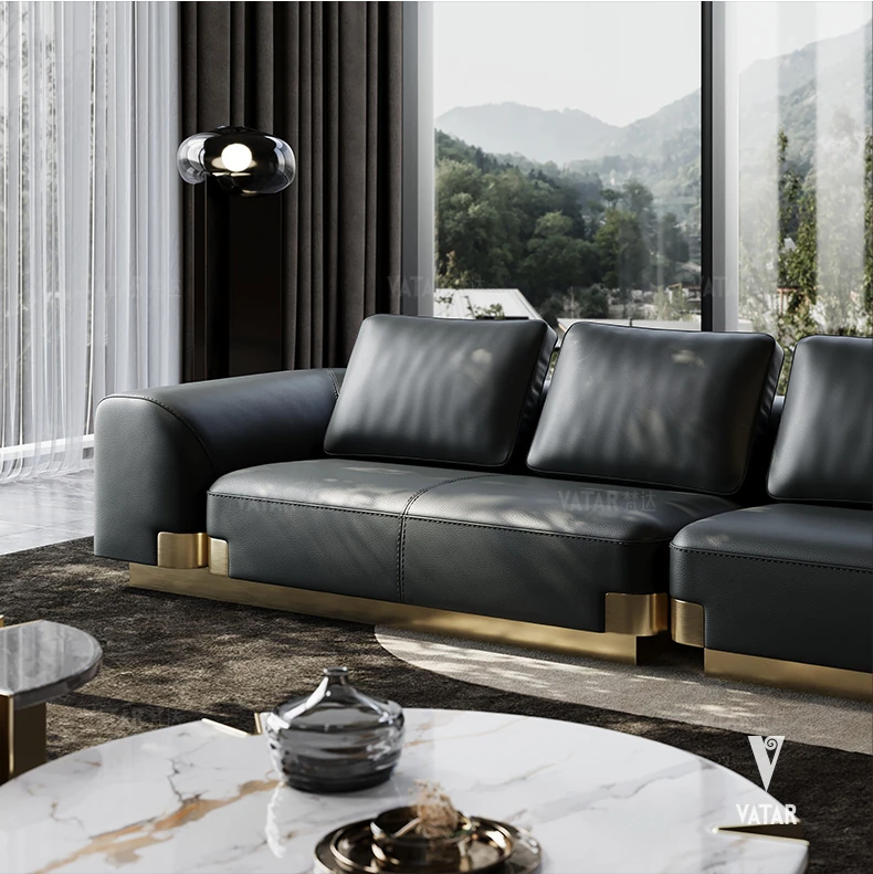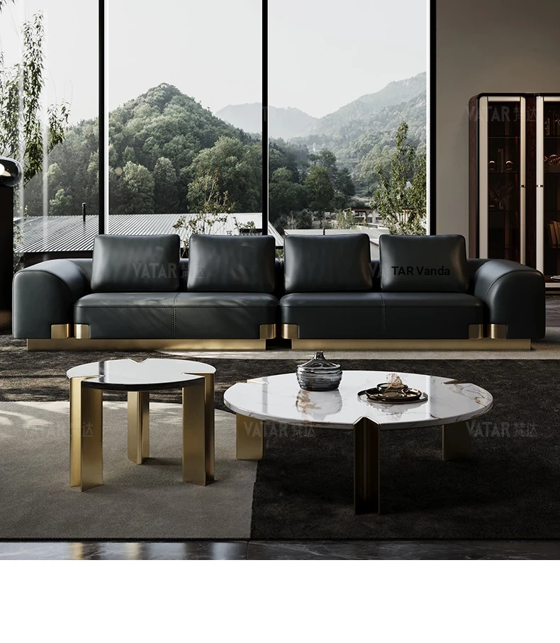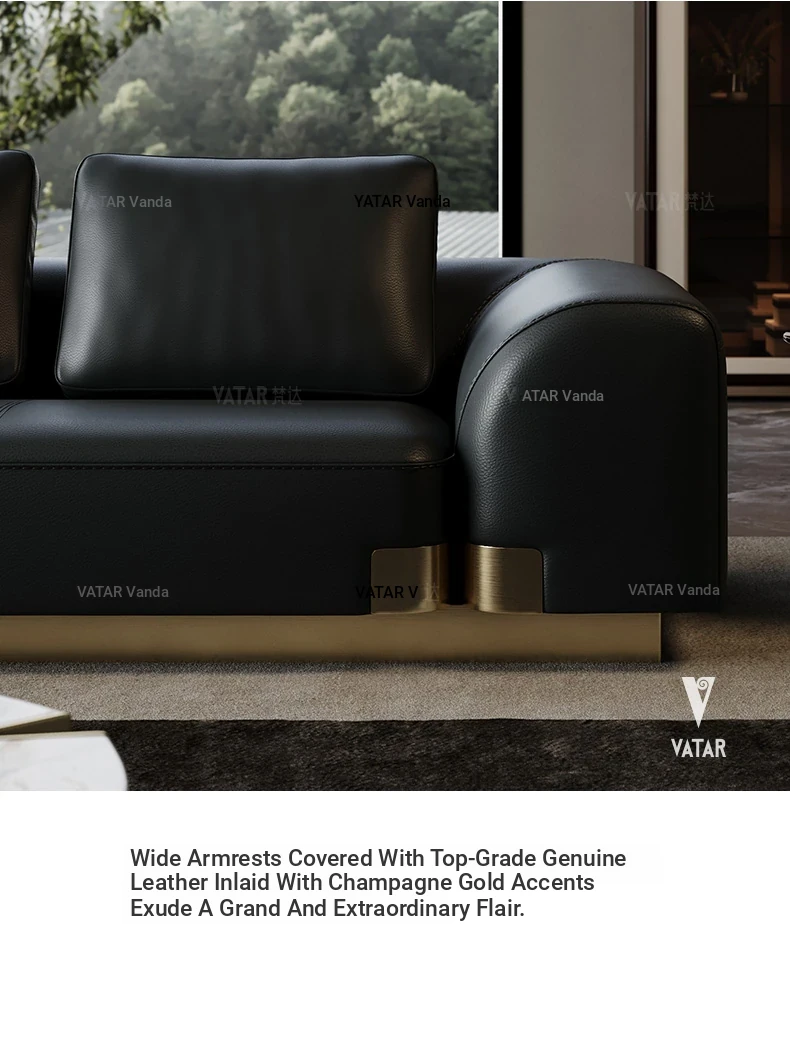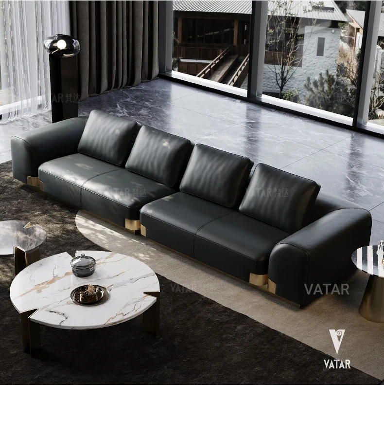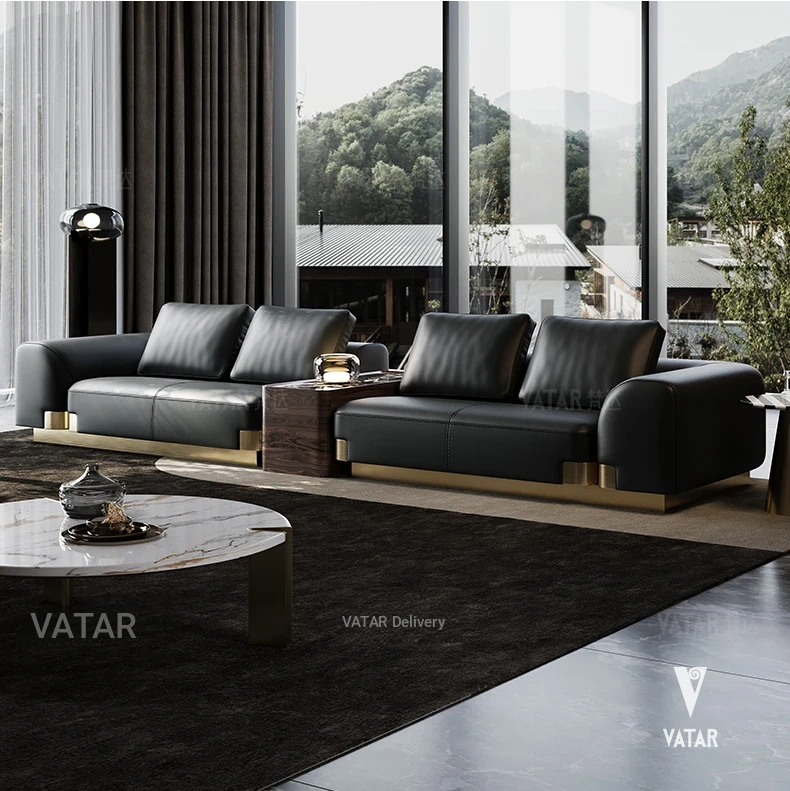 VATAR Luxury Minimalist Italian Leather Sofa - Premium Top-Grain Cowhide for Spacious Living Rooms and Villas