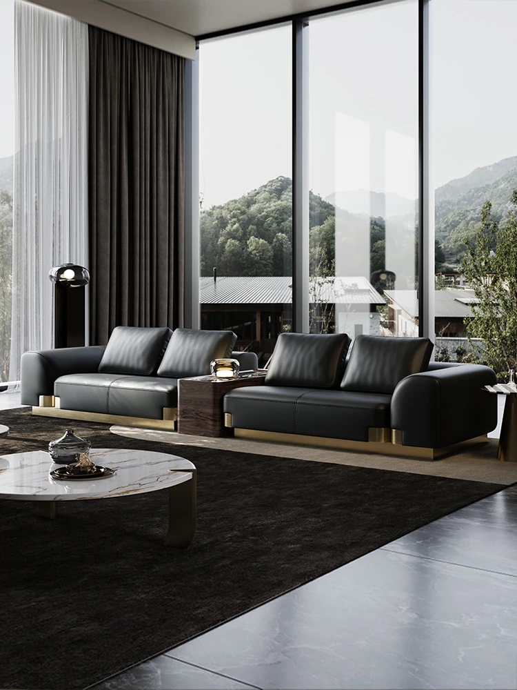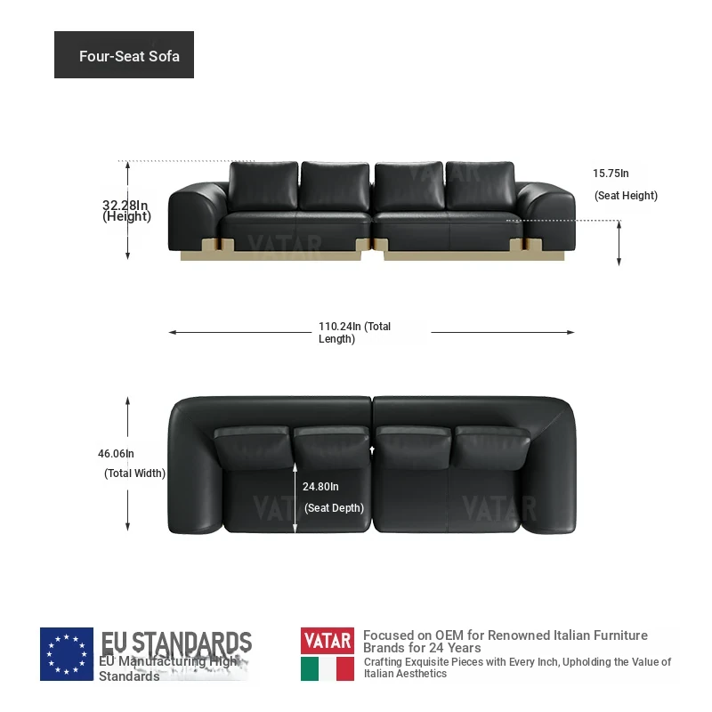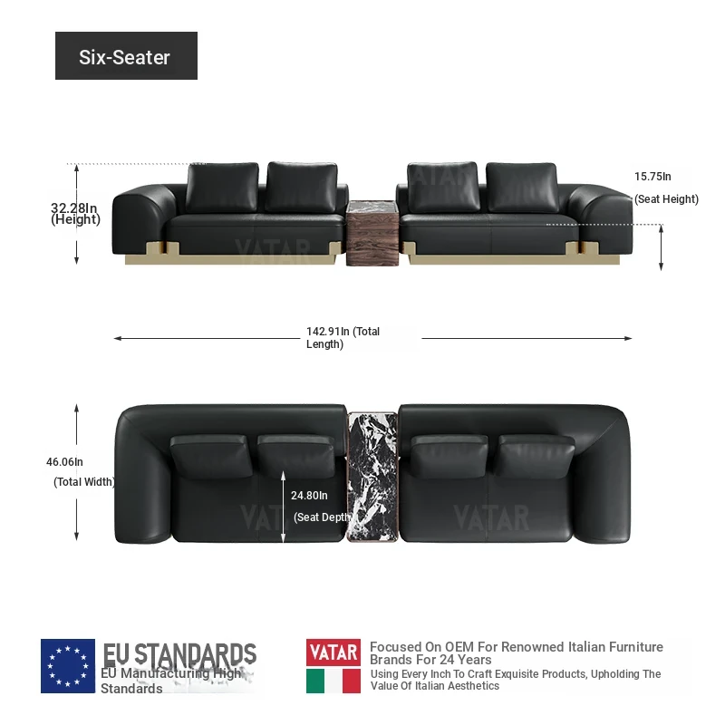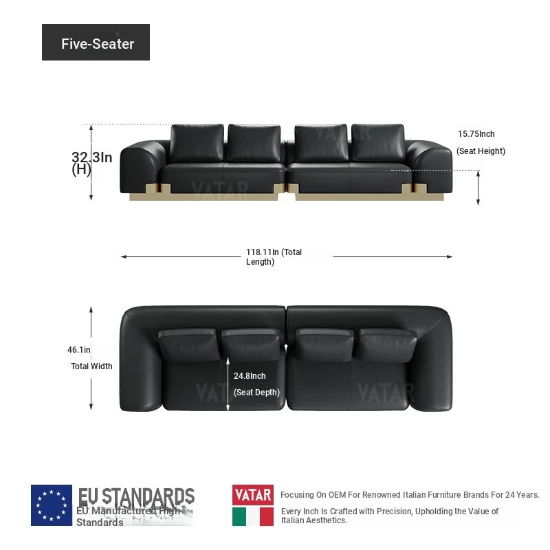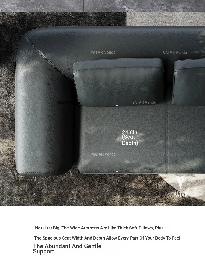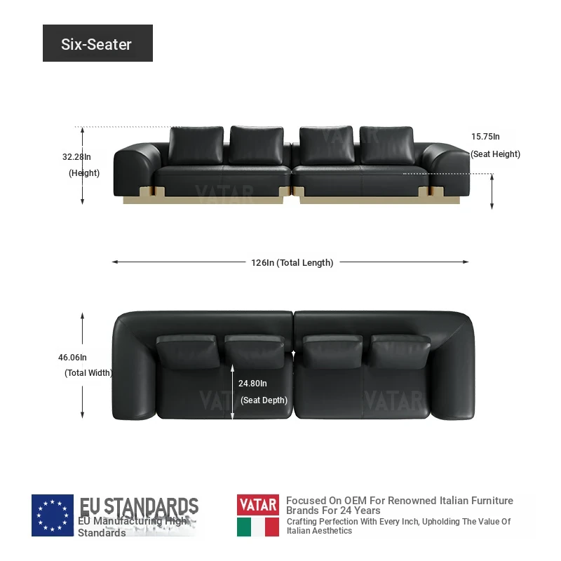 VATAR Luxury Minimalist Italian Leather Sofa - Premium Top-Grain Cowhide for Spacious Living Rooms and Villas
