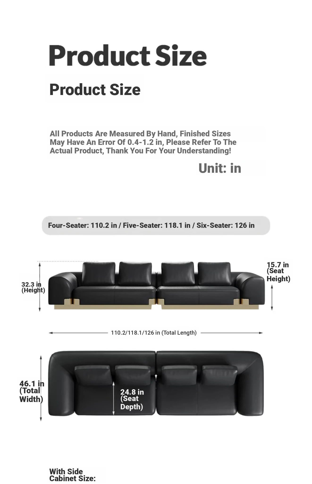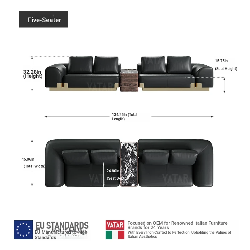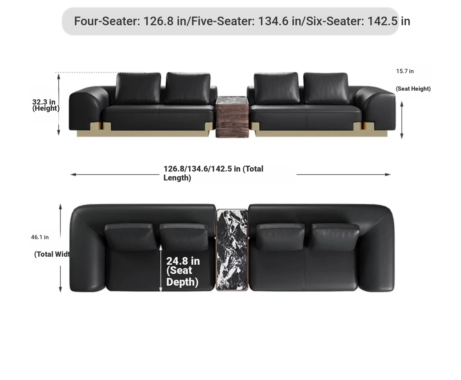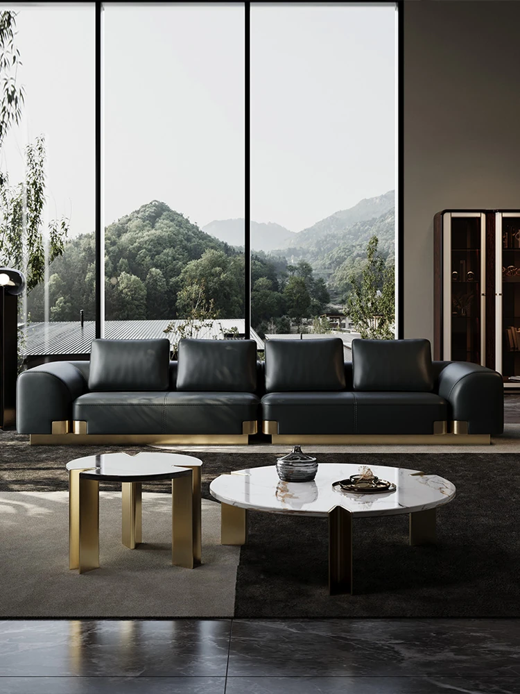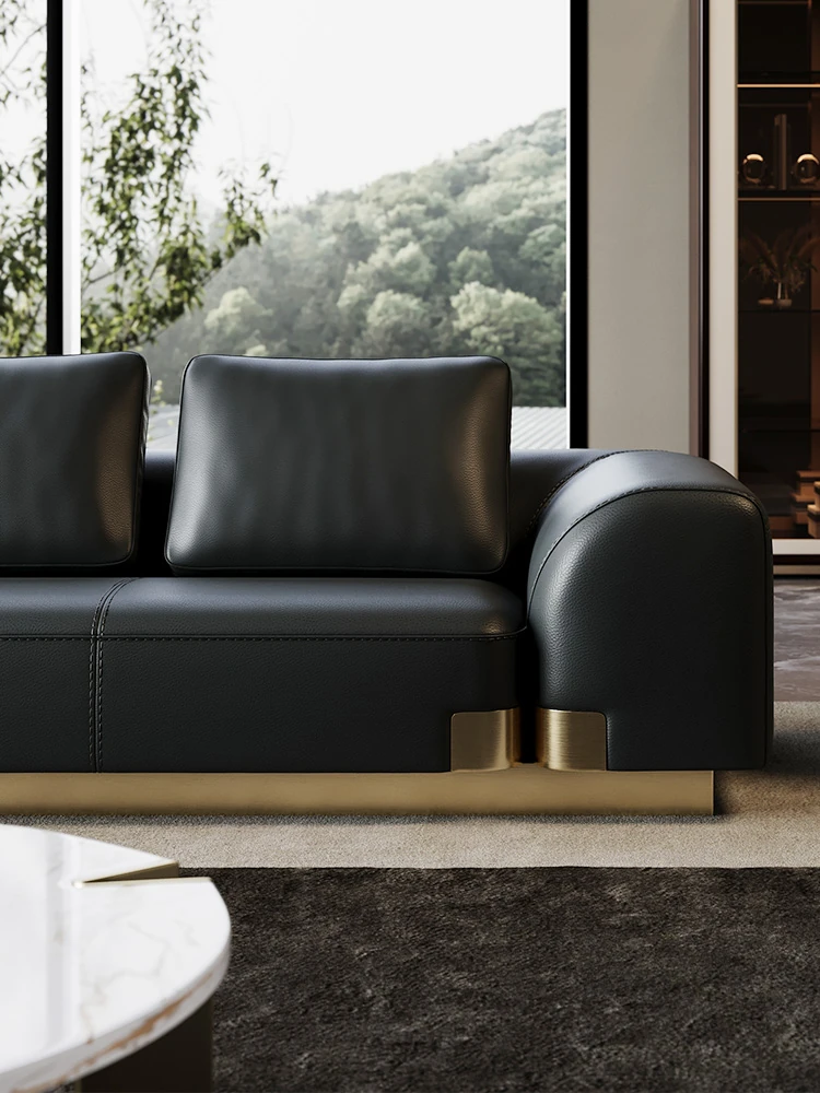 VATAR Luxury Minimalist Italian Leather Sofa - Premium Top-Grain Cowhide for Spacious Living Rooms and Villas