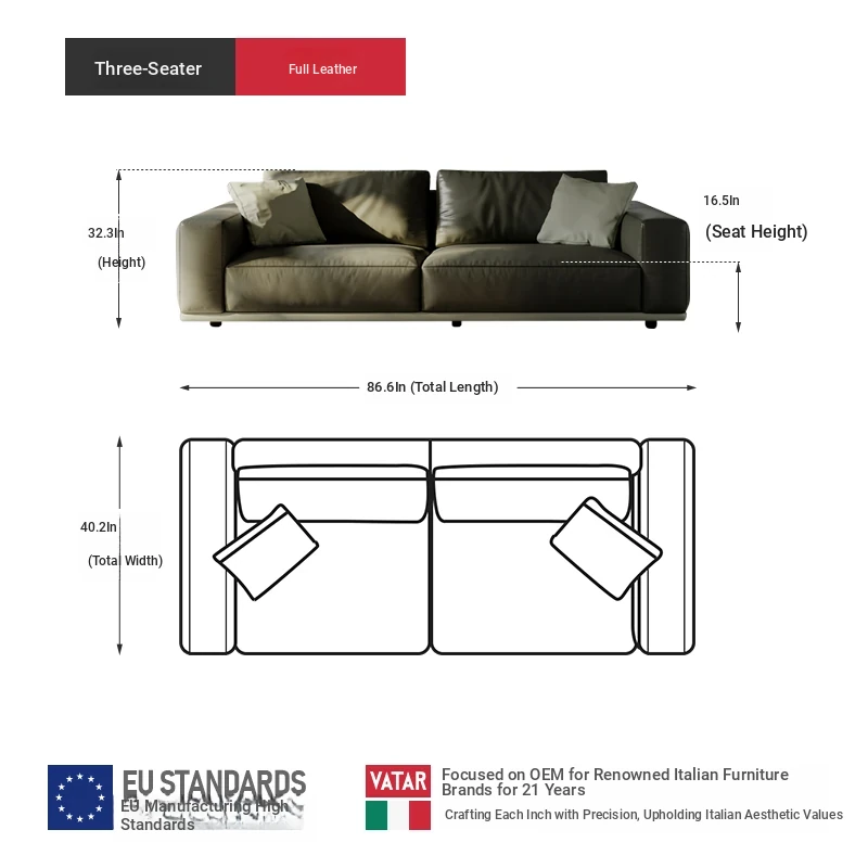 VATAR Minimalist Italian Leather Sofa - Modern Simple Design for Small Living Spaces, Featuring Luxurious Full Leather and Stylish Tofu Block Shape. Perfect for Chic and Compact Interiors!