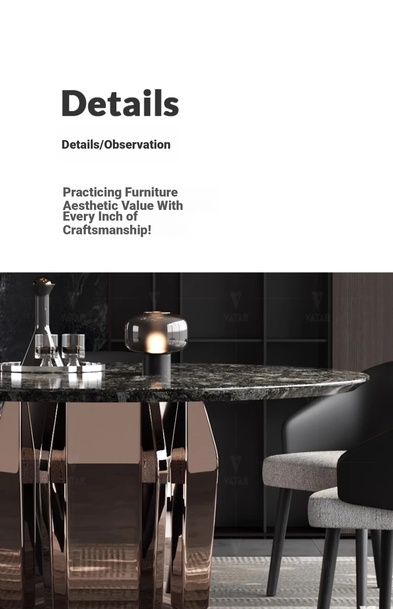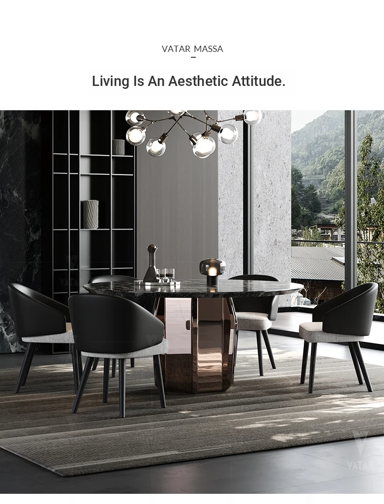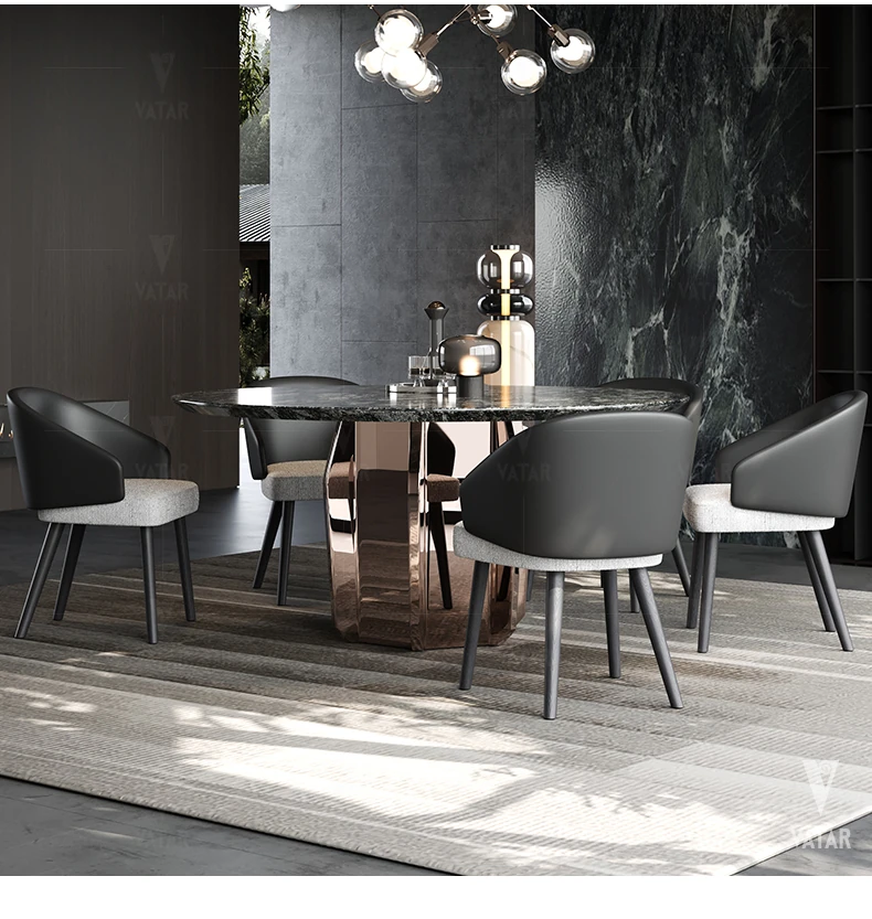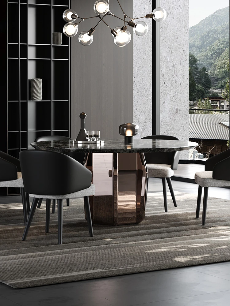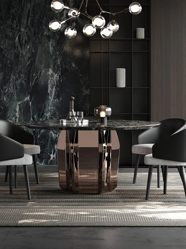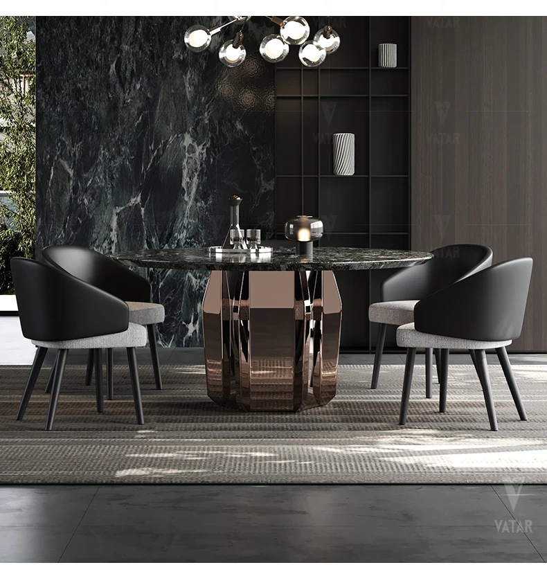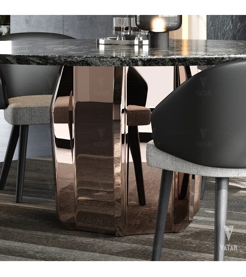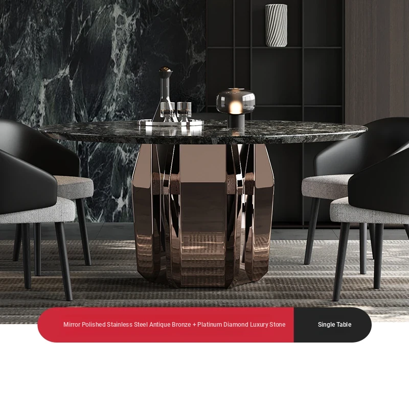 VATAR Round Dining Table in Antique Copper Stainless Steel - Italian Minimalist Design with Natural Luxury Stone for Home Use