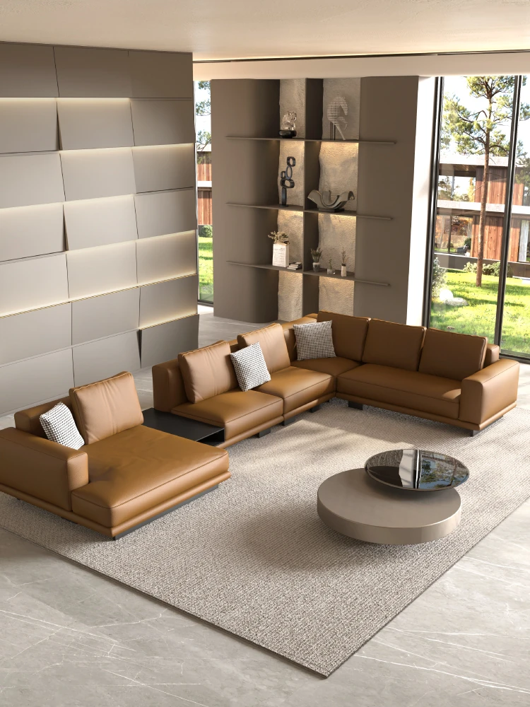 Italian Minimalist Genuine Leather Sofa Set 318 - Modern Lightweight Design with Down Filling, Perfect for Compact Spaces, Featuring Top-Grain Cowhide and Corner Sofa Configuration.