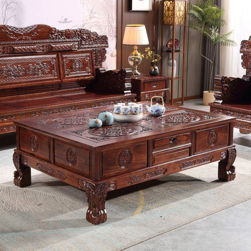 New Chinese Style Solid Wood Sofa Set with Northern Elm Coffee Table - Classic Living Room Furniture for Home Use, Unfinished and Ready for Customization