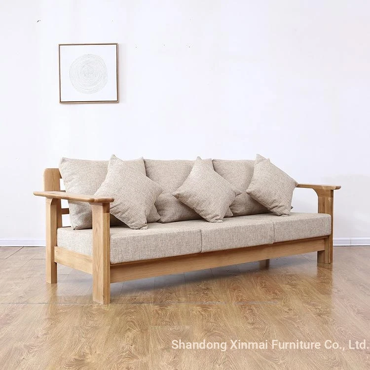 New Minimalist Oak Sofa Set - Versatile Solid Wood Sofa for Living Room, 3-Seater Natural Wood Design