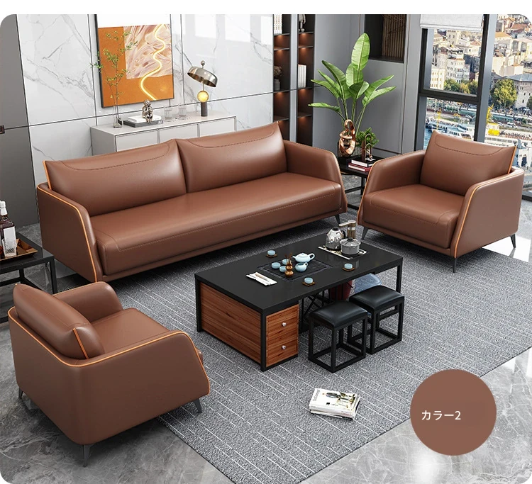 2022年新作!モダンでシンプルな3人掛けオフィスソファ、ビジネス会議やお客様接待に最適。リラックスできるティーテーブルとのコンビネーションで、洗練されたオフィス空間を演出します!