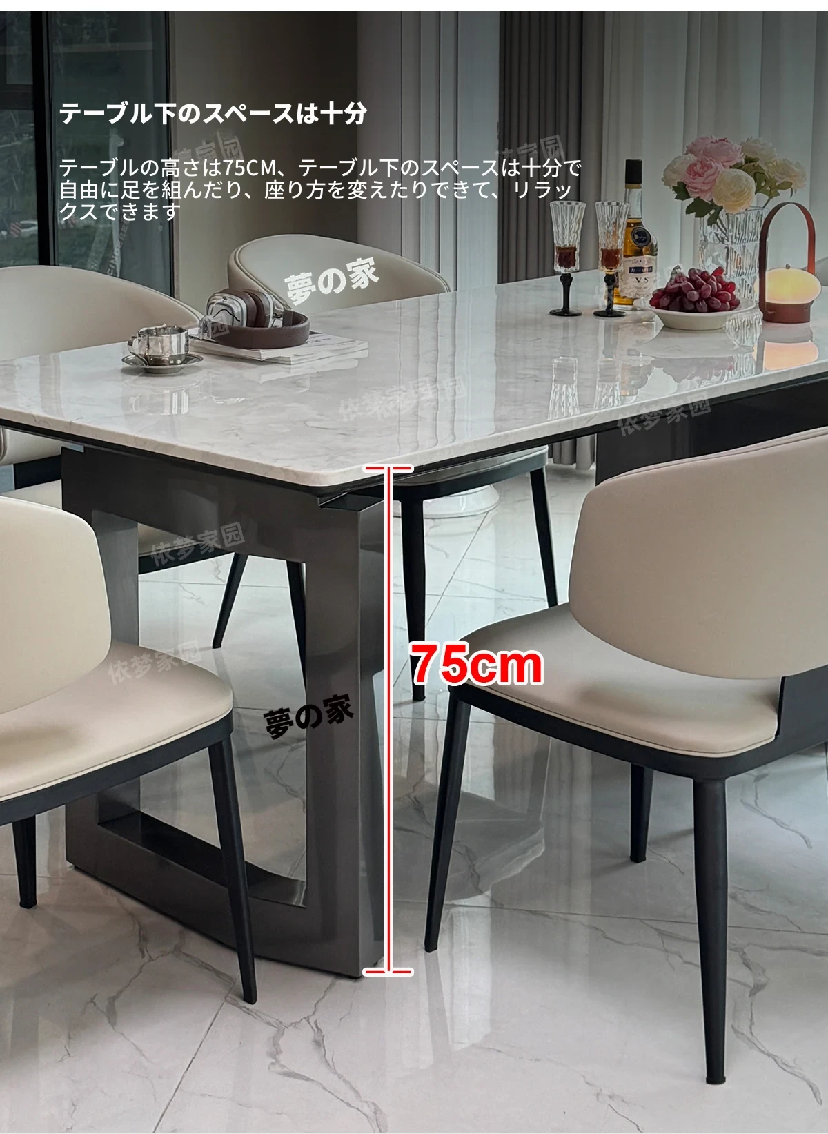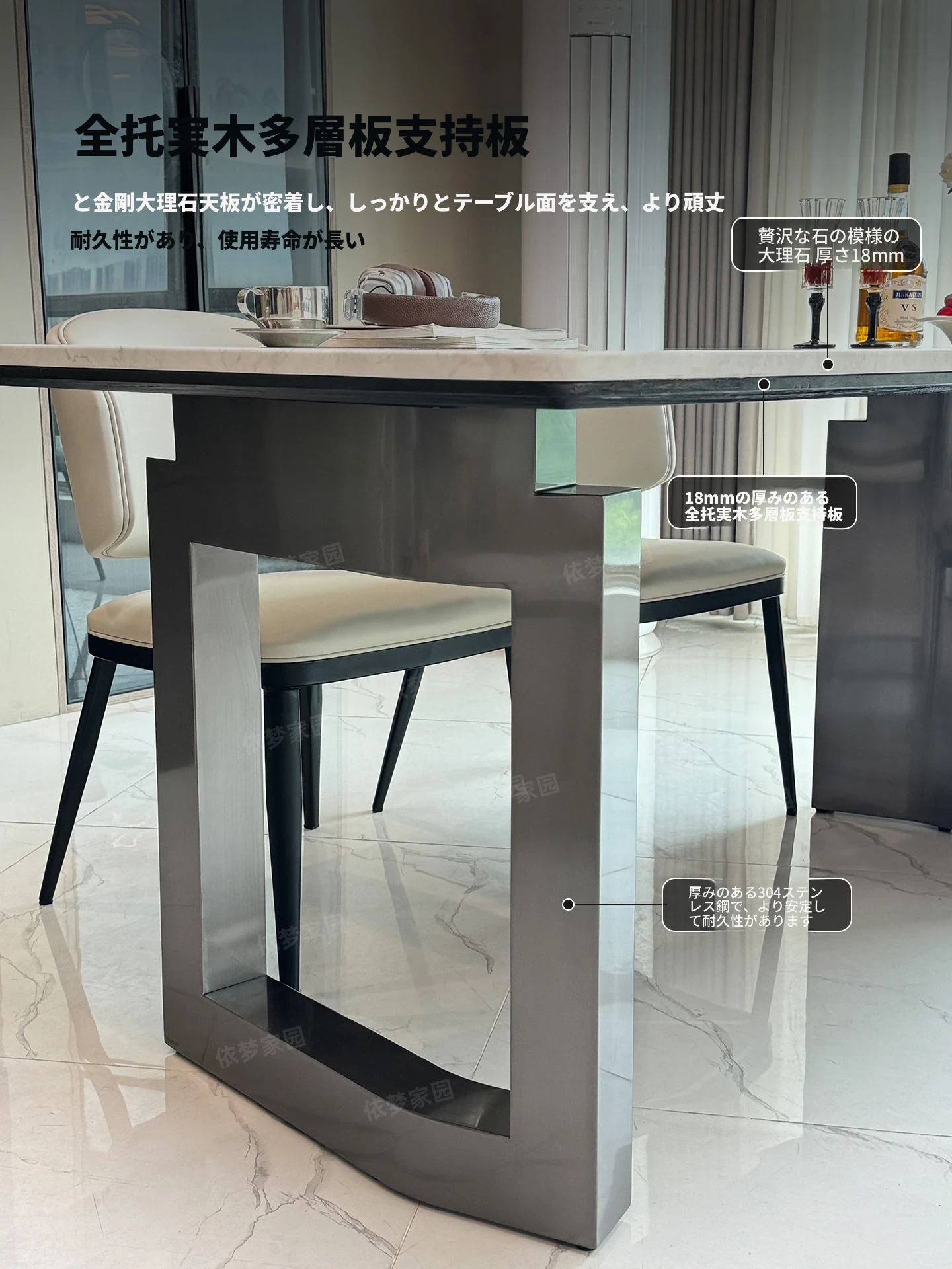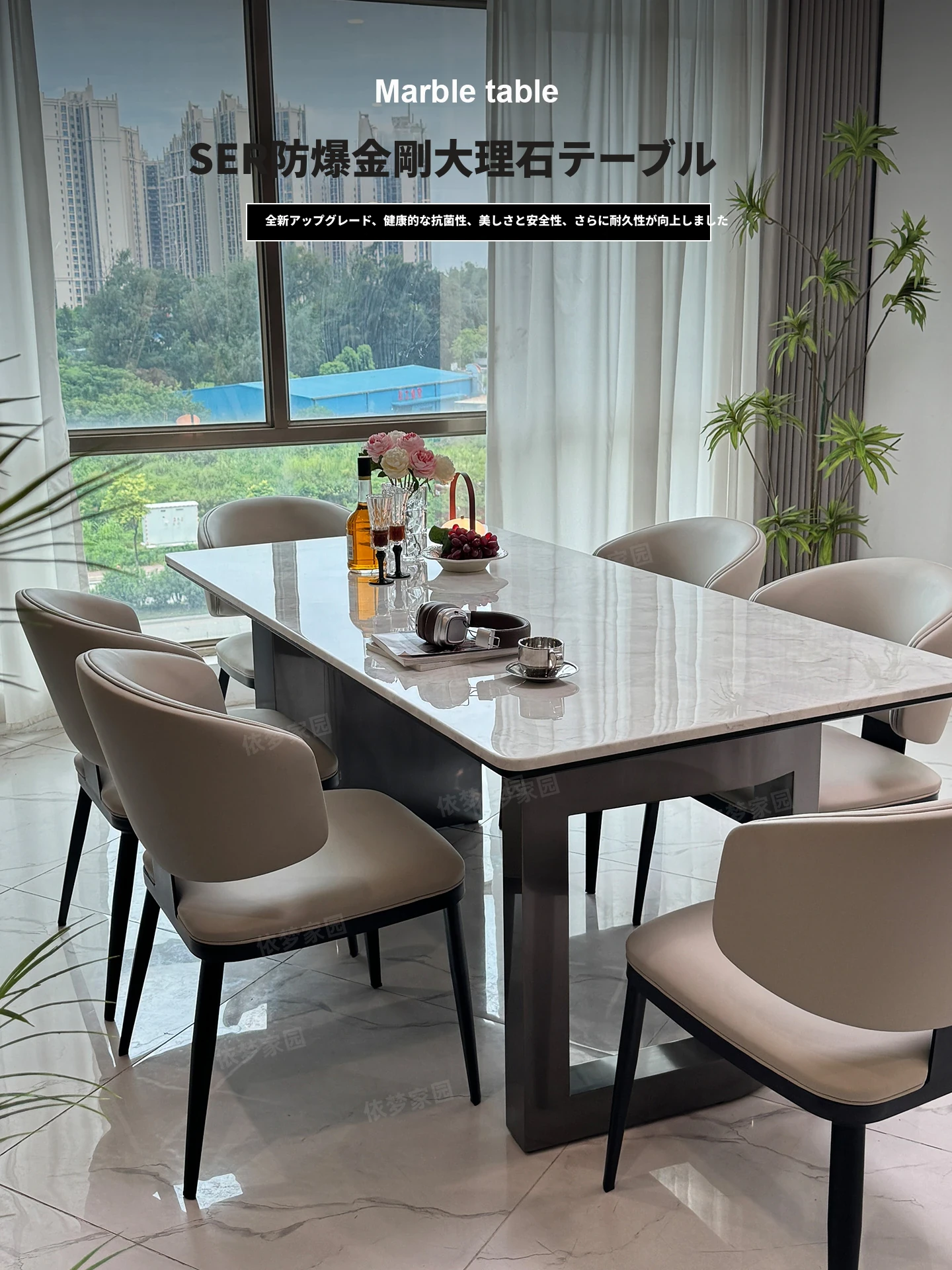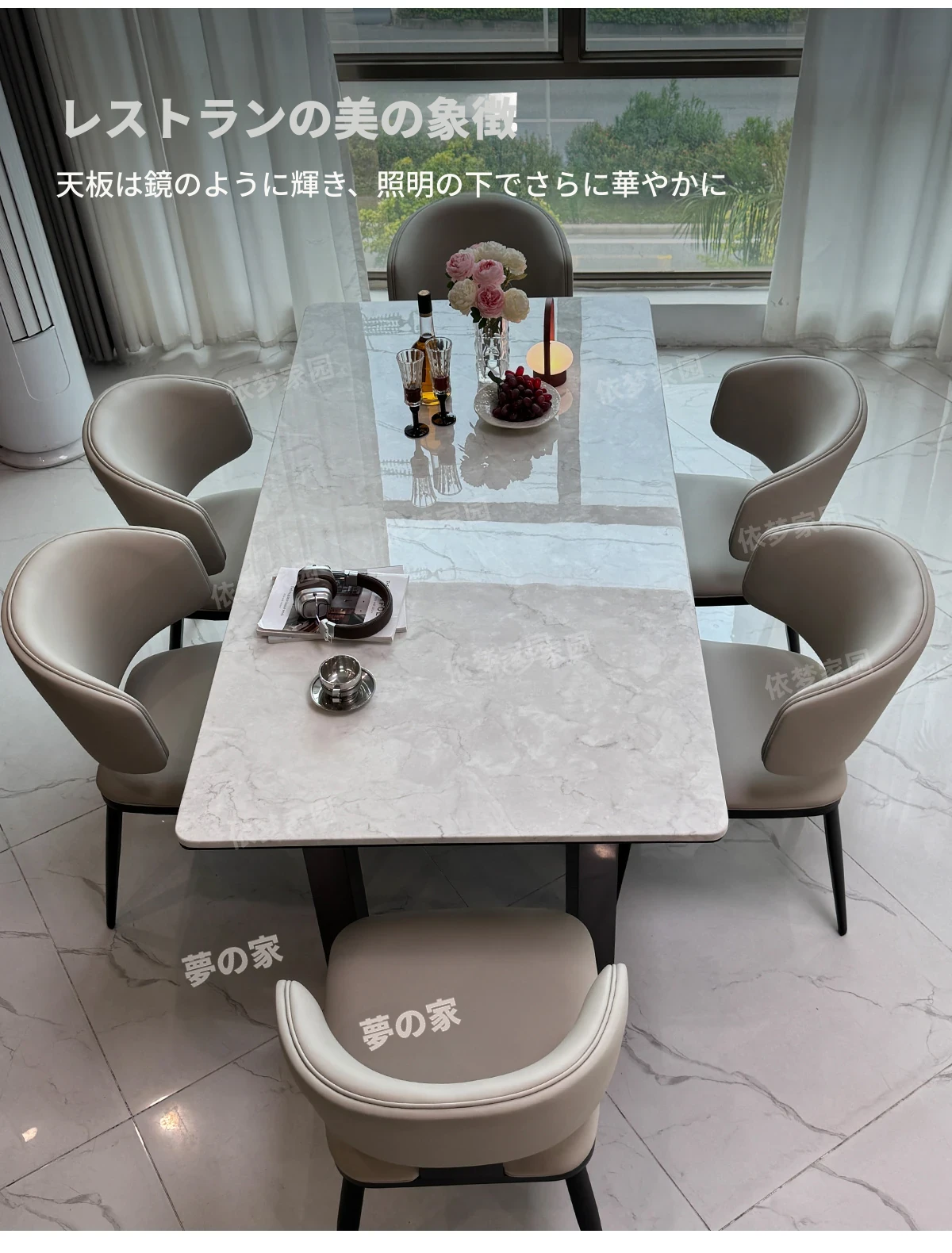 2025年新作!イタリアン・ラグジュアリーの天然大理石使用、佛山製造の高級感あふれる長方形ダイニングテーブル&チェアセット。家族や友人との素敵なひとときを演出します!