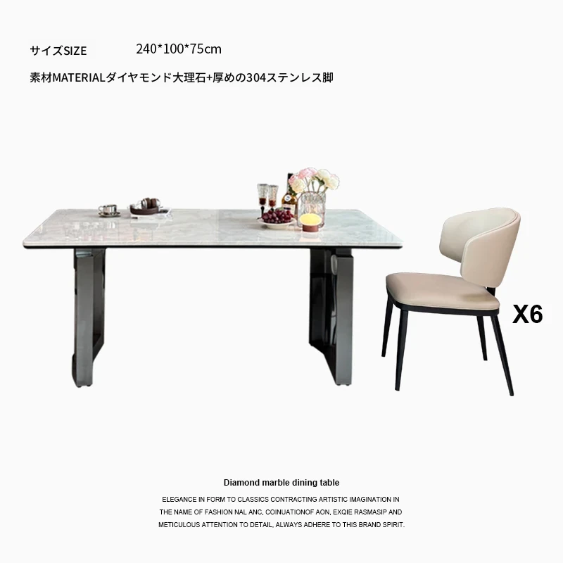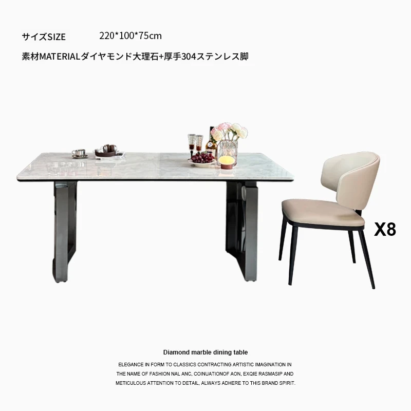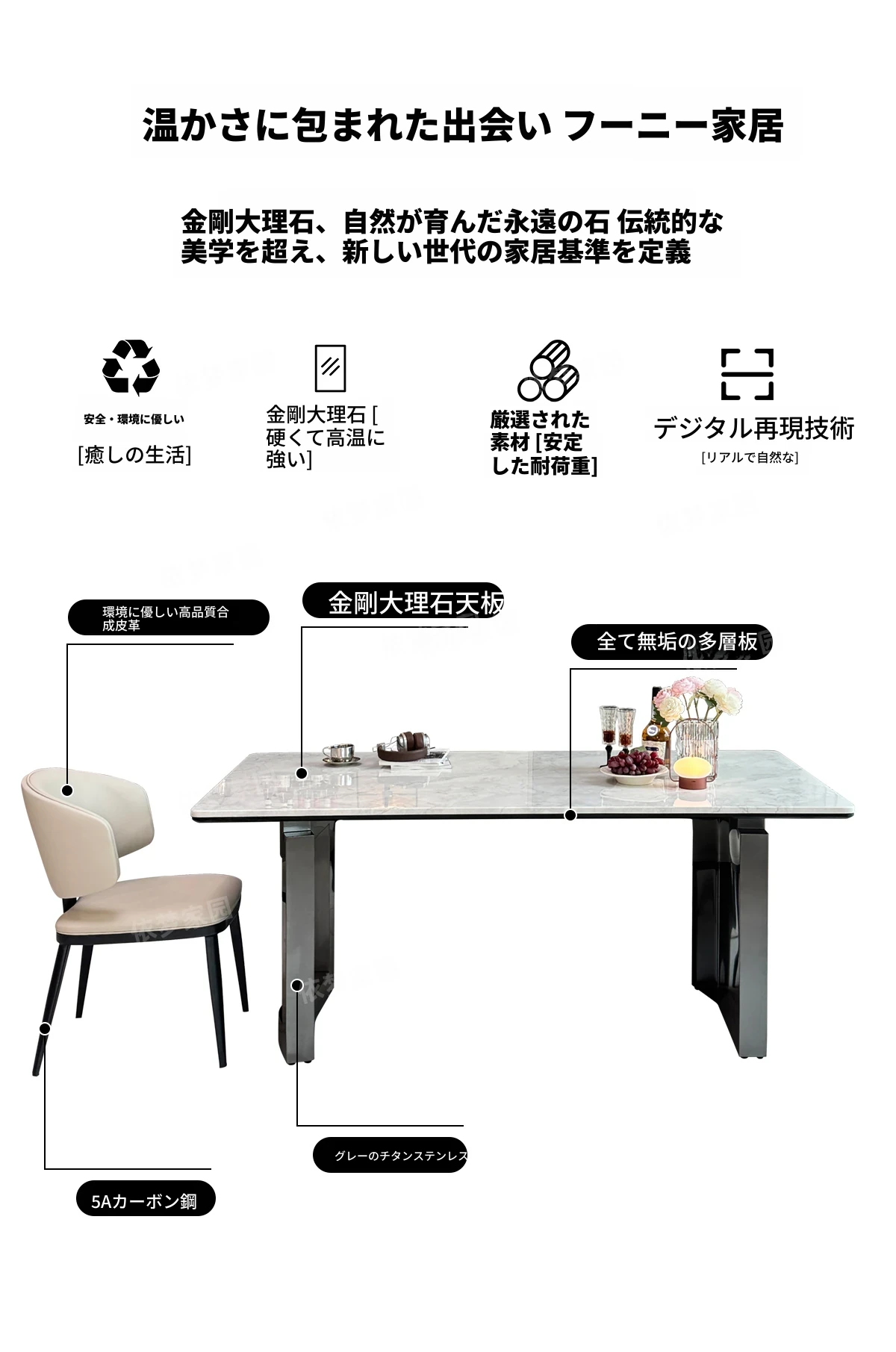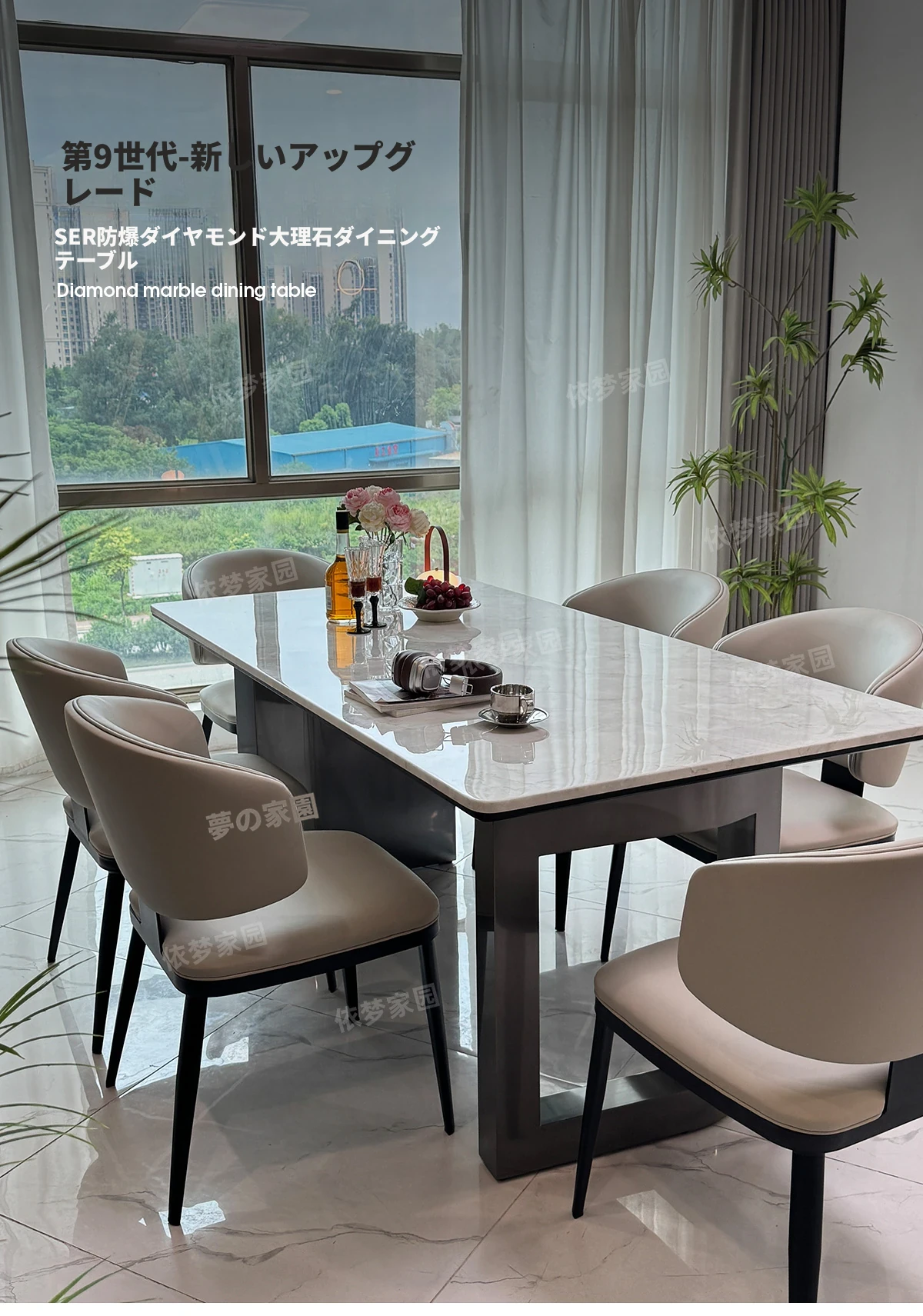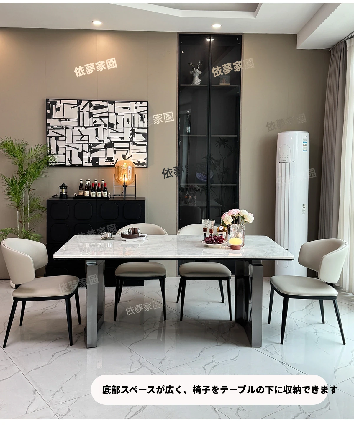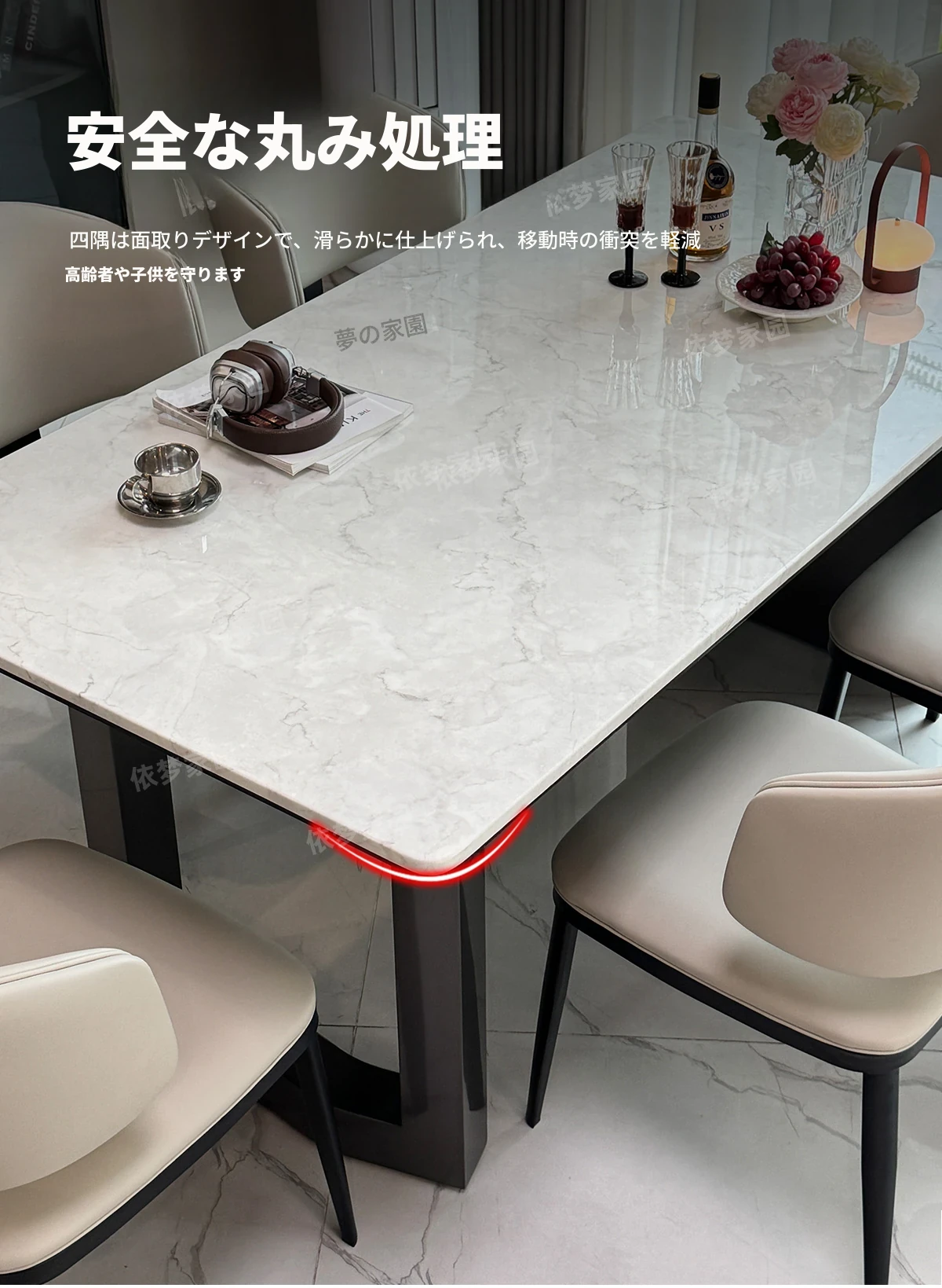 2025年新作!イタリアン・ラグジュアリーの天然大理石使用、佛山製造の高級感あふれる長方形ダイニングテーブル&チェアセット。家族や友人との素敵なひとときを演出します!