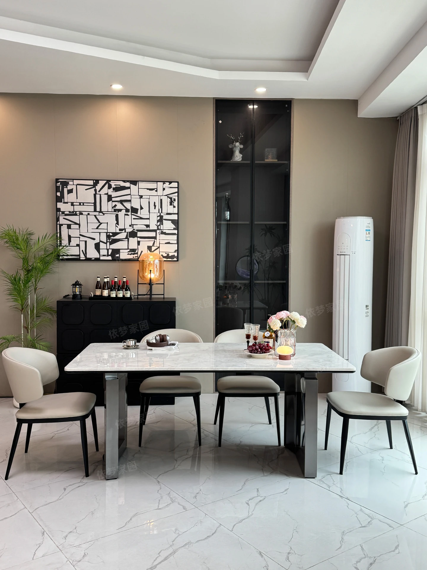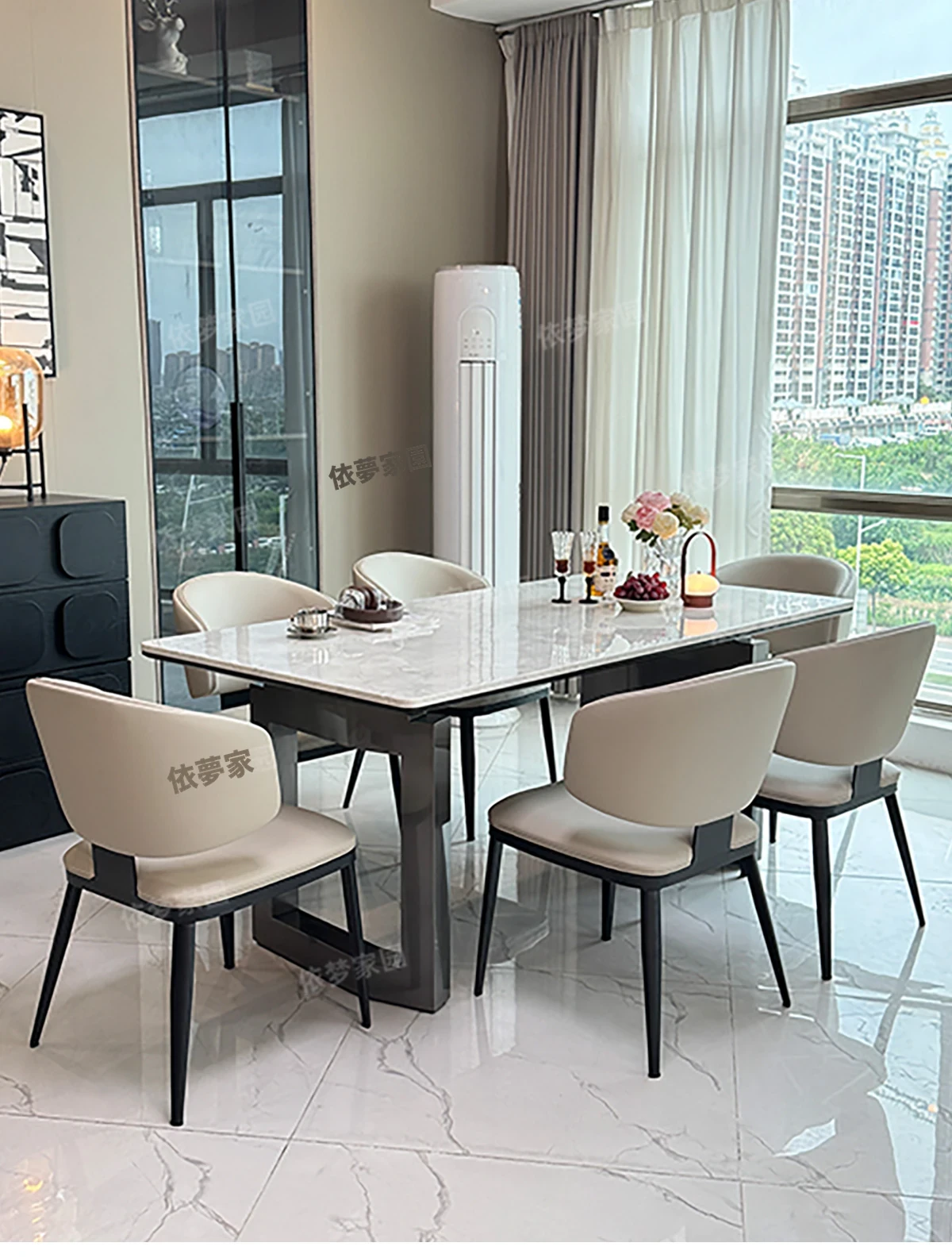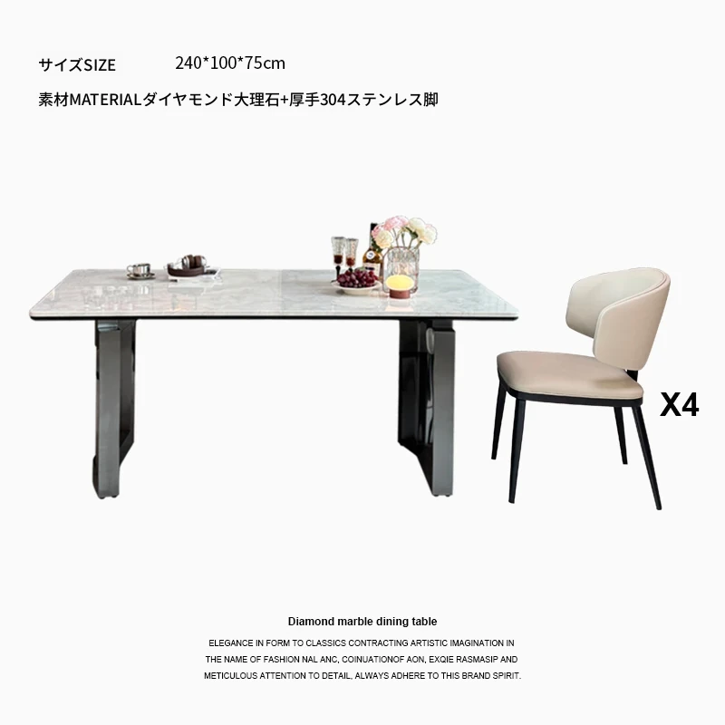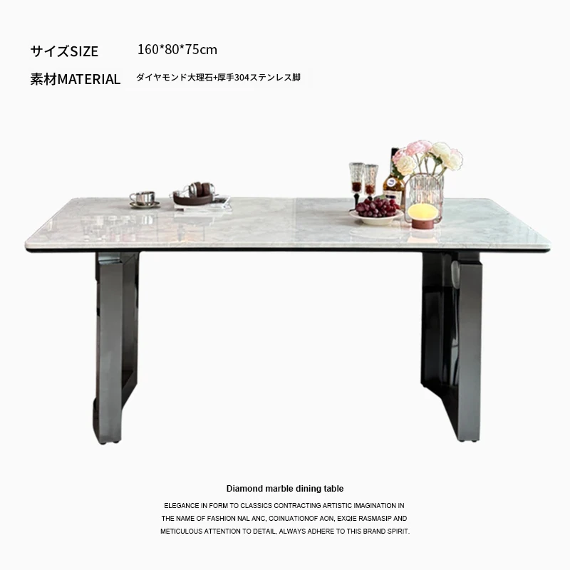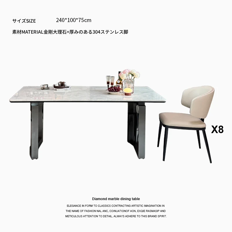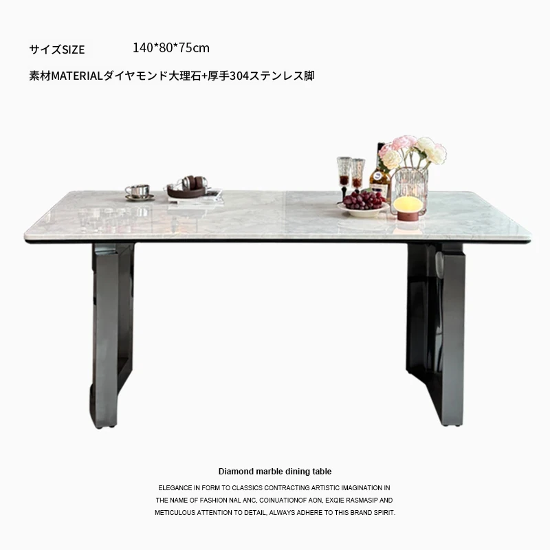 2025年新作!イタリアン・ラグジュアリーの天然大理石使用、佛山製造の高級感あふれる長方形ダイニングテーブル&チェアセット。家族や友人との素敵なひとときを演出します!