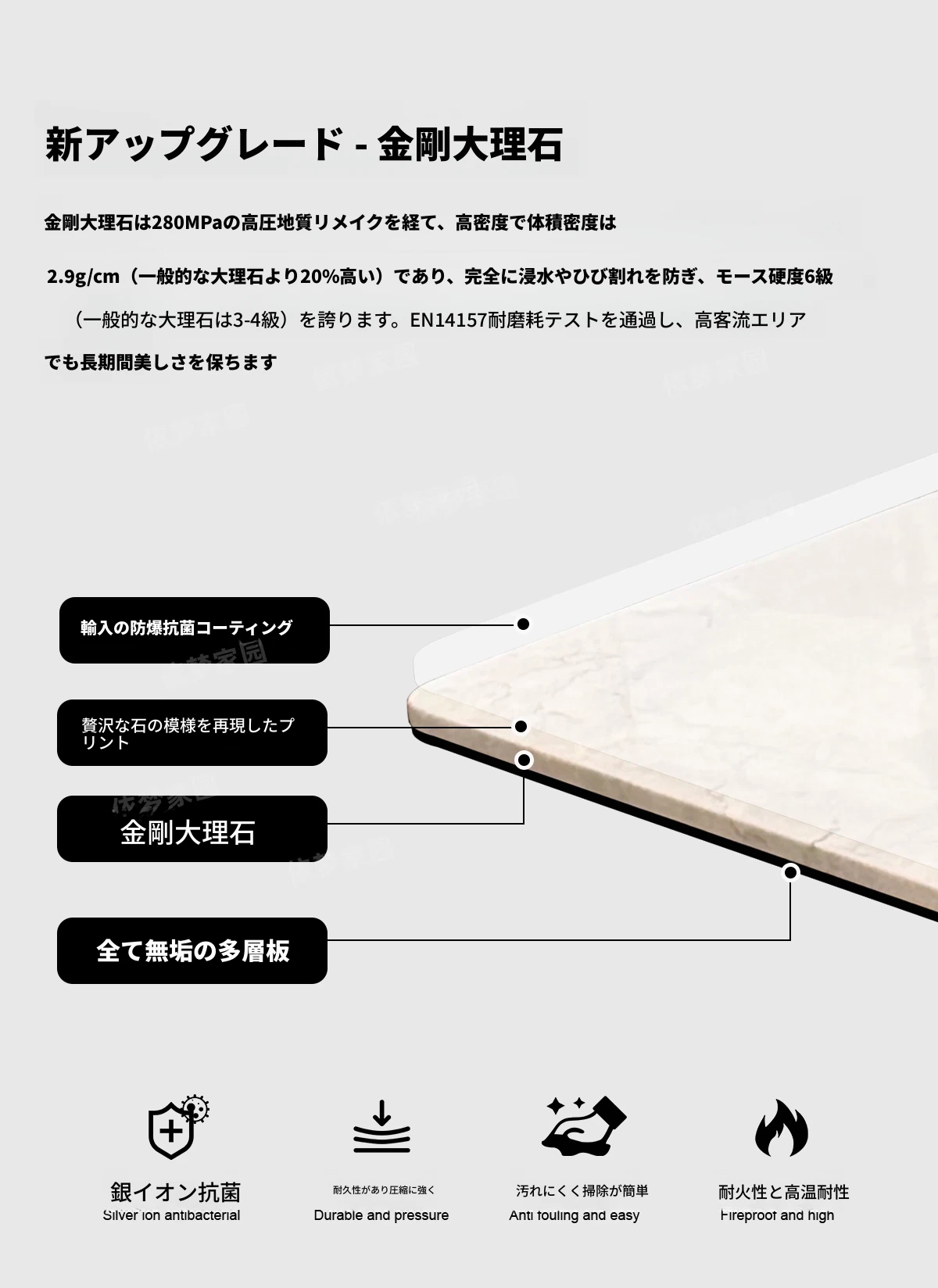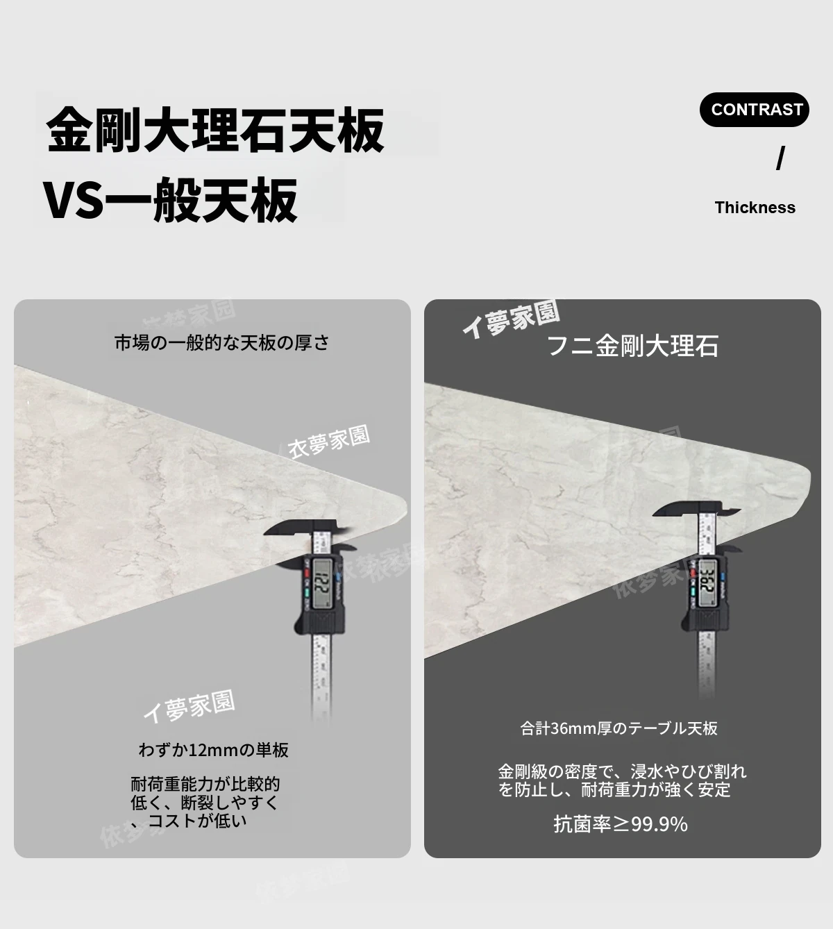 1.8メートル大理石ダイニングテーブル 無垢全板底