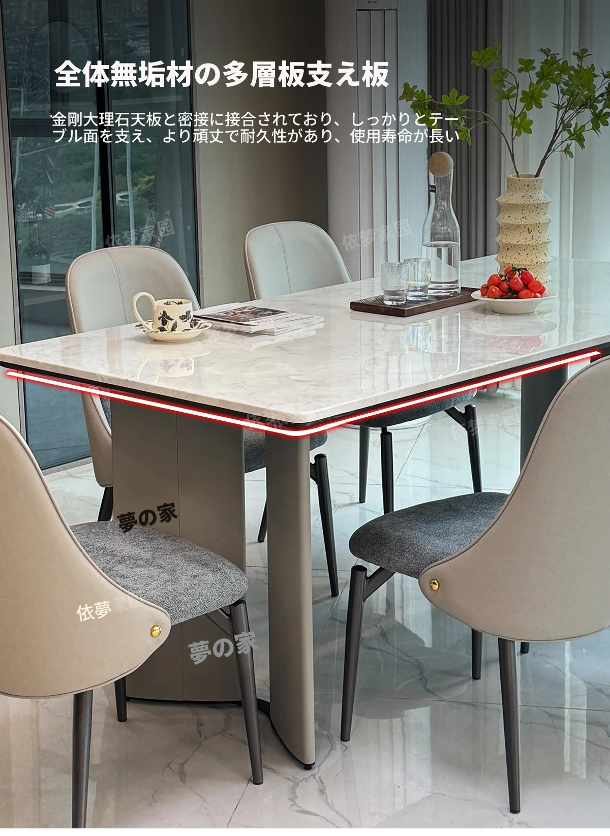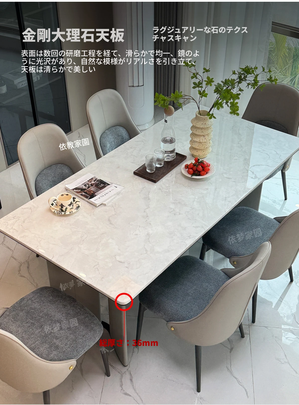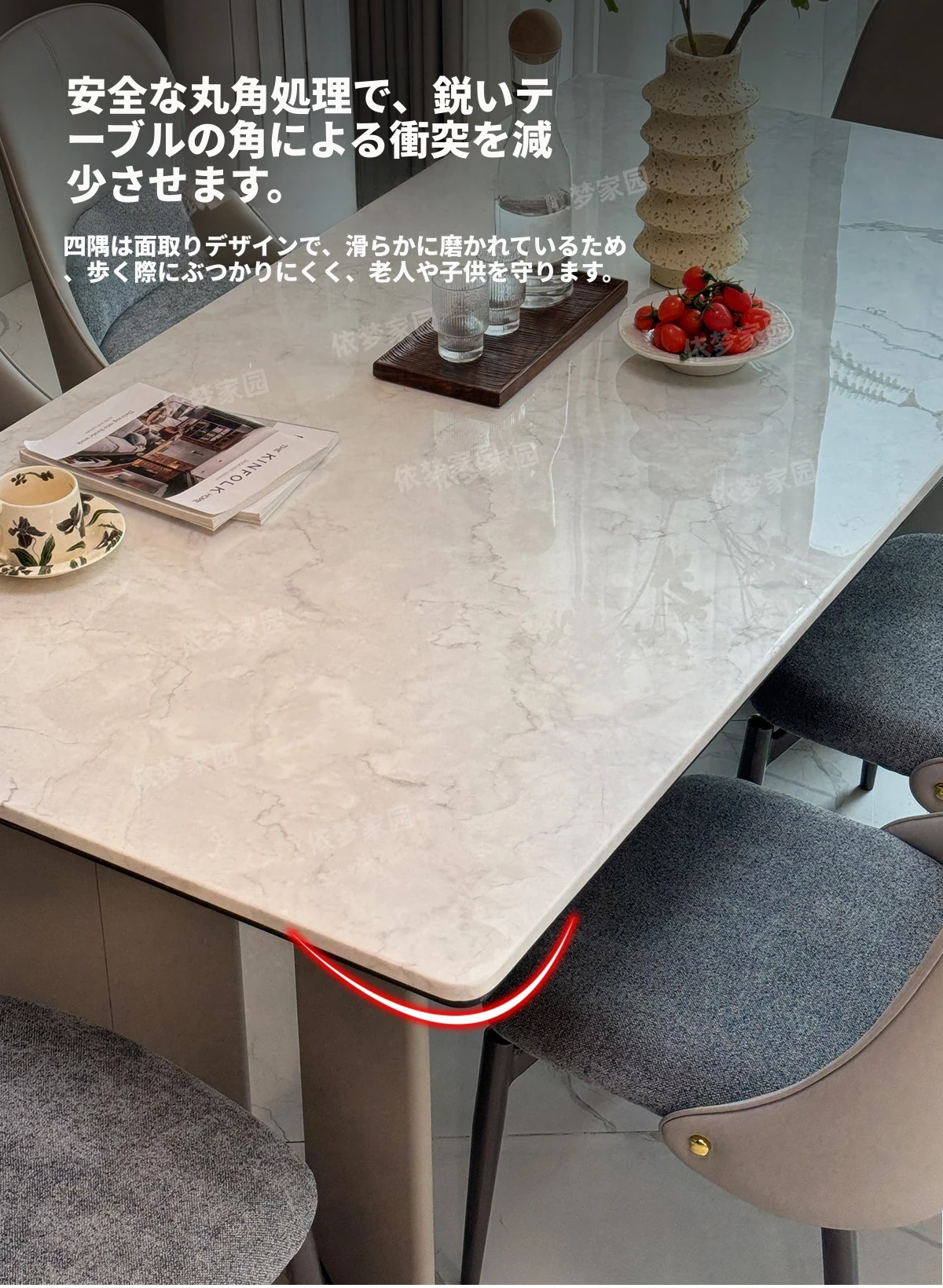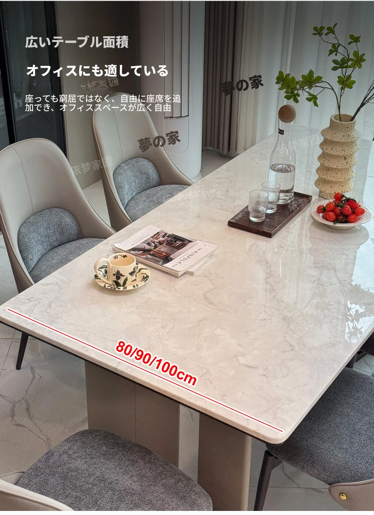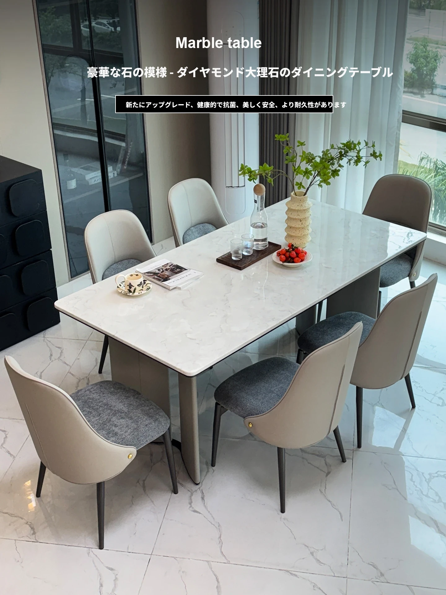 2025年新作!モダンでシンプルな大理石ダイニングテーブル、高級感あふれる輸入素材使用。省スペースでもおしゃれに!小型住宅にぴったりな長方形デザイン。