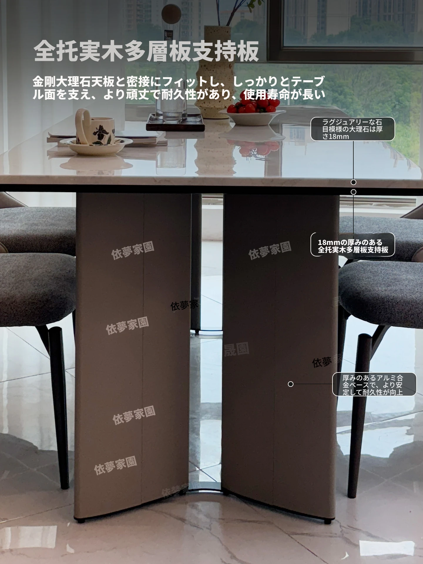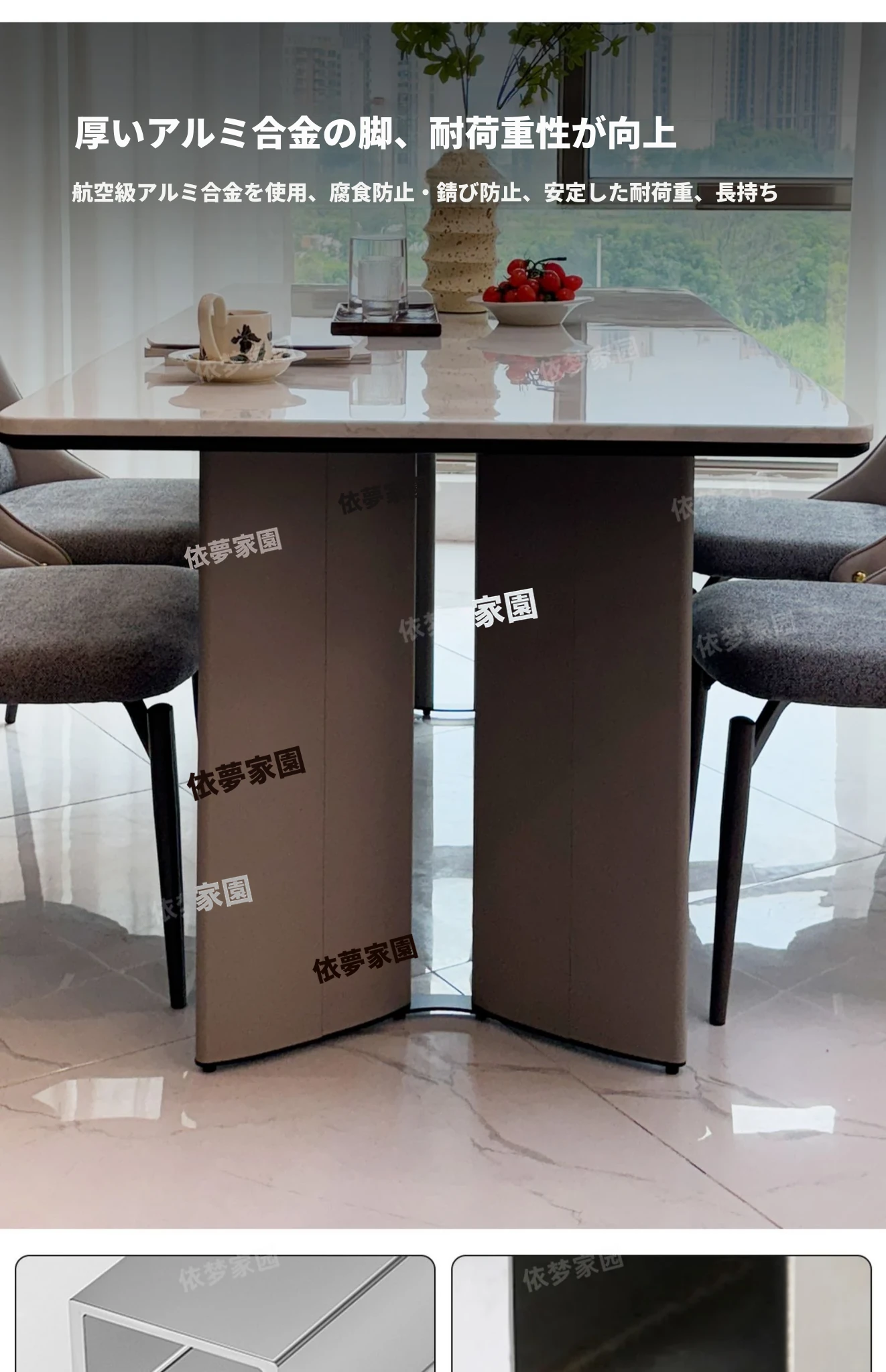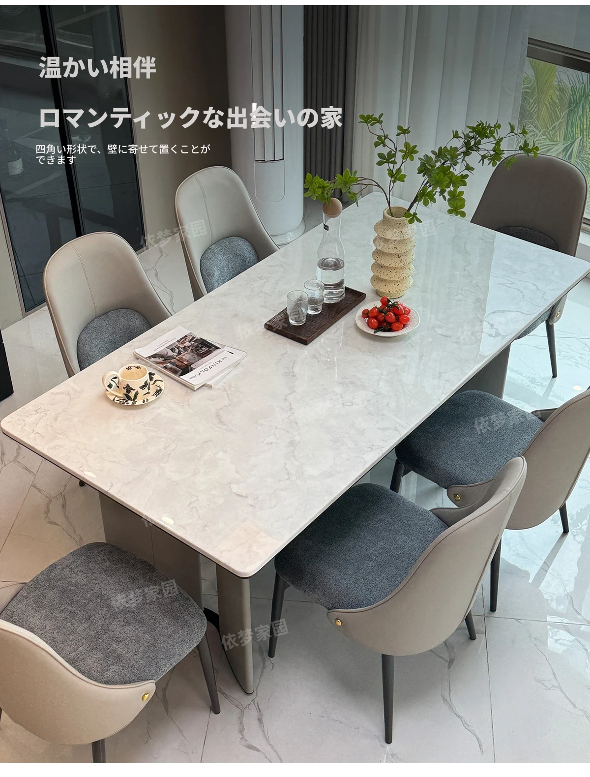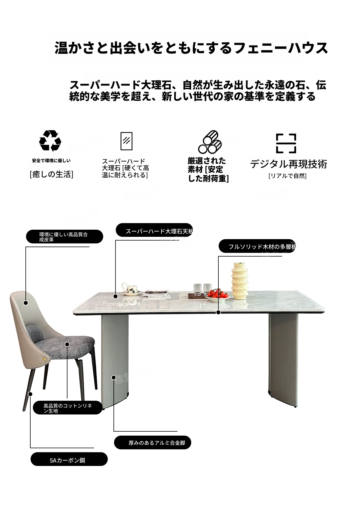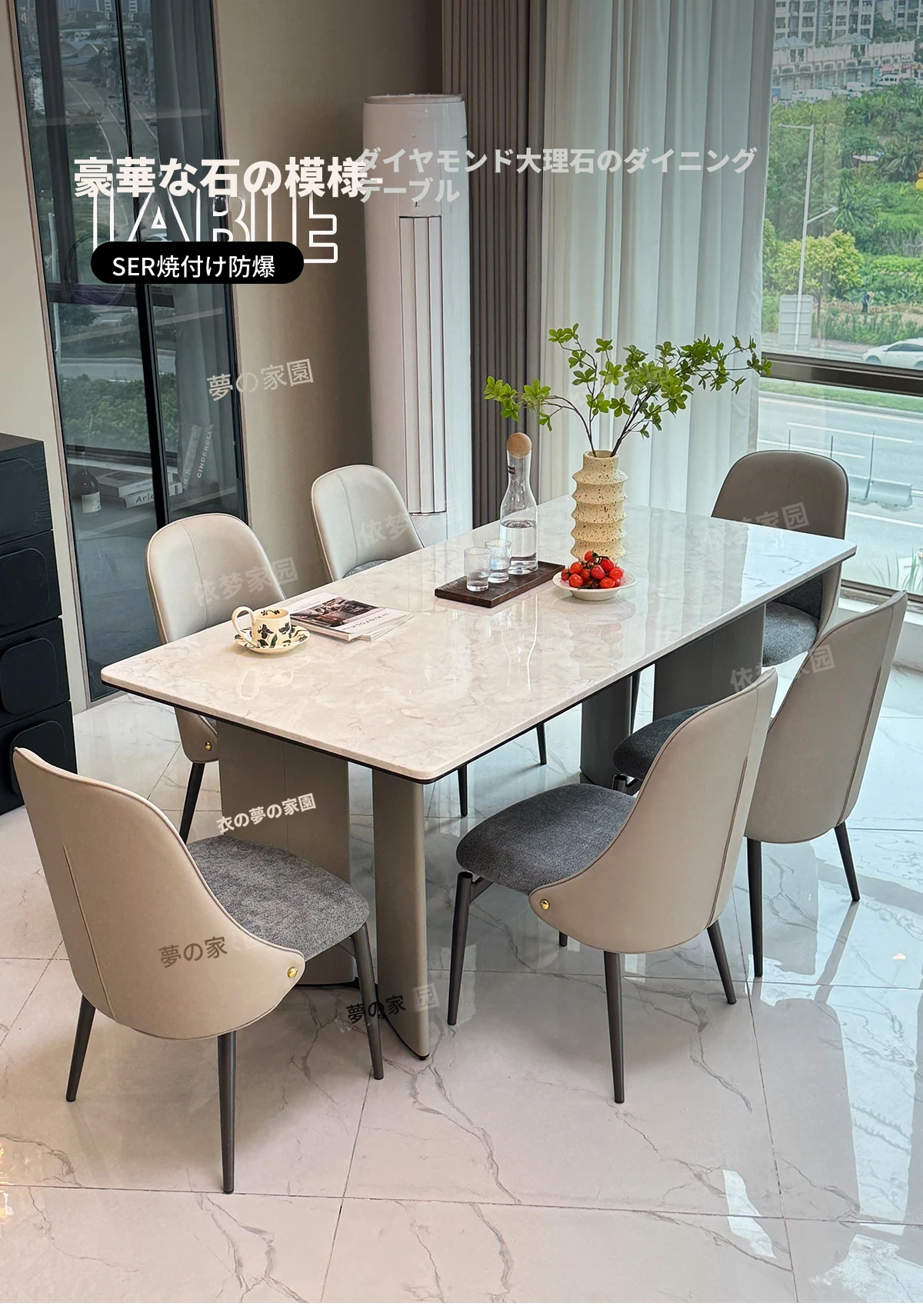 2025年新作!モダンでシンプルな大理石ダイニングテーブル、高級感あふれる輸入素材使用。省スペースでもおしゃれに!小型住宅にぴったりな長方形デザイン。