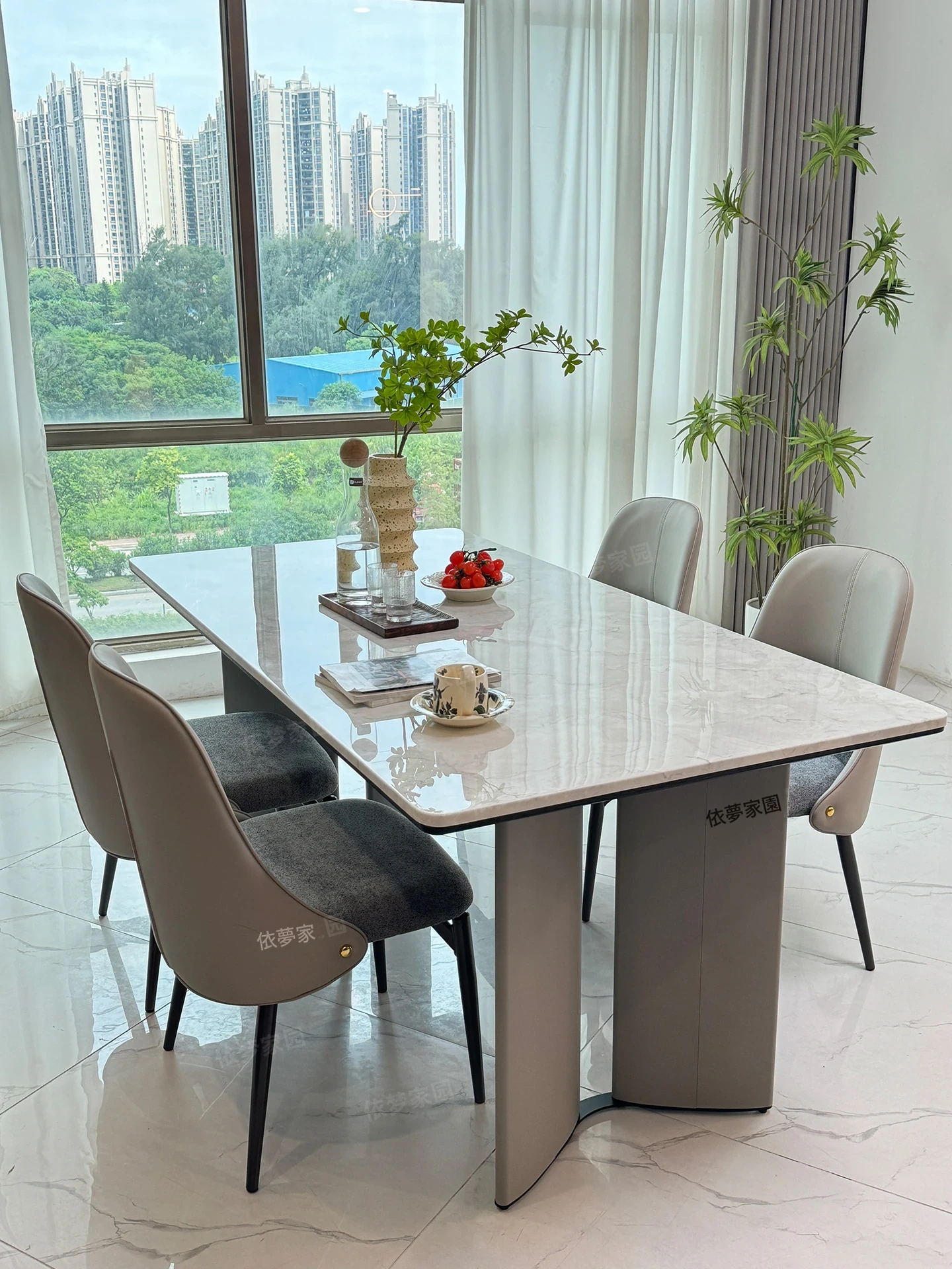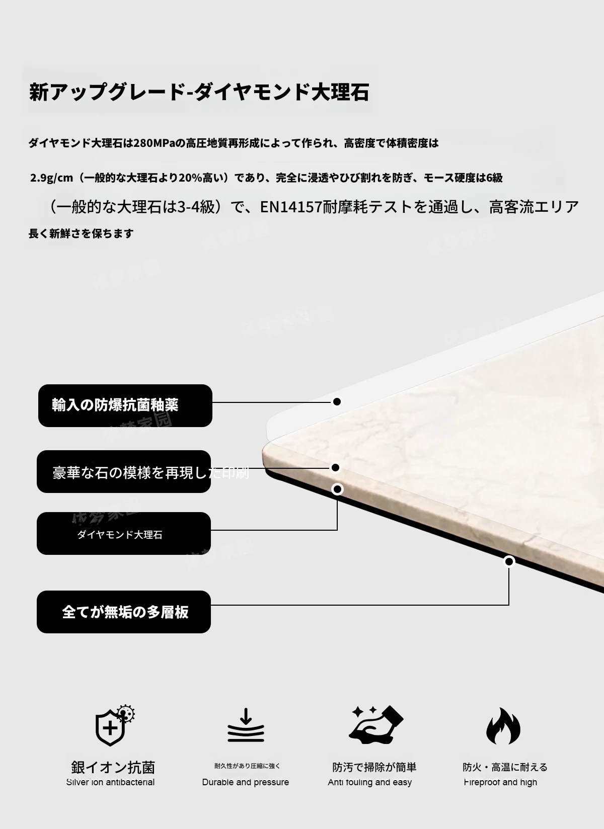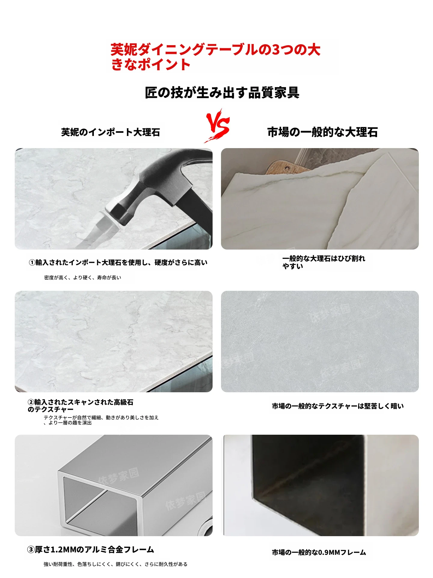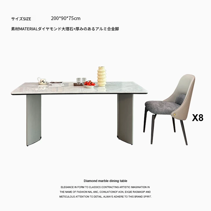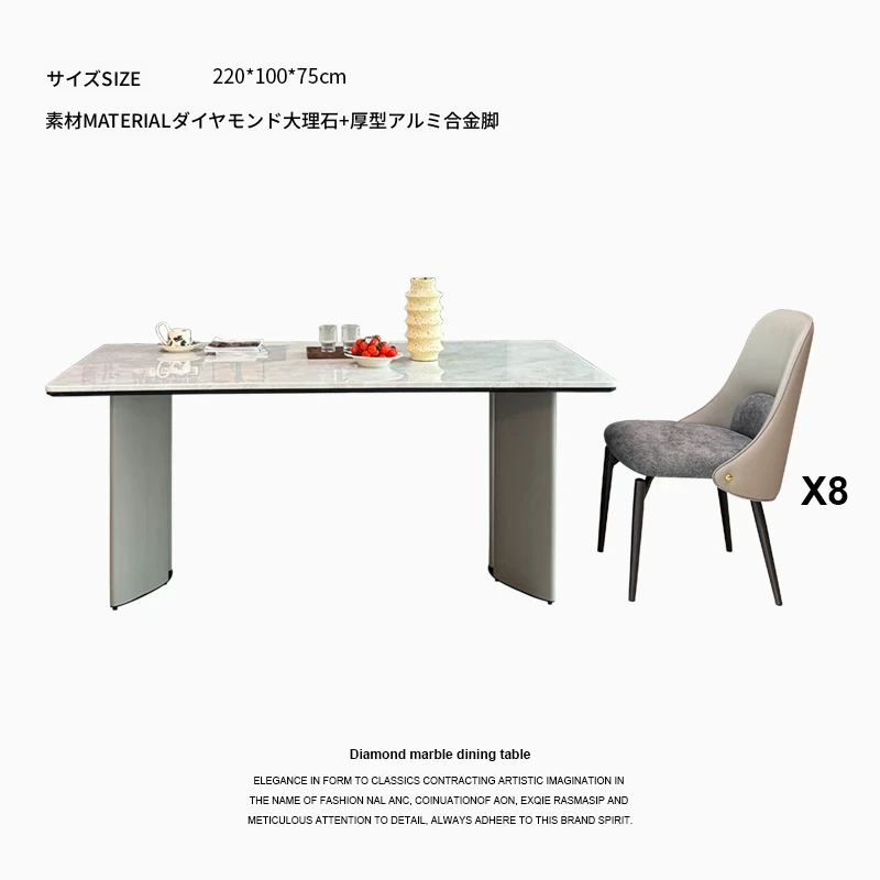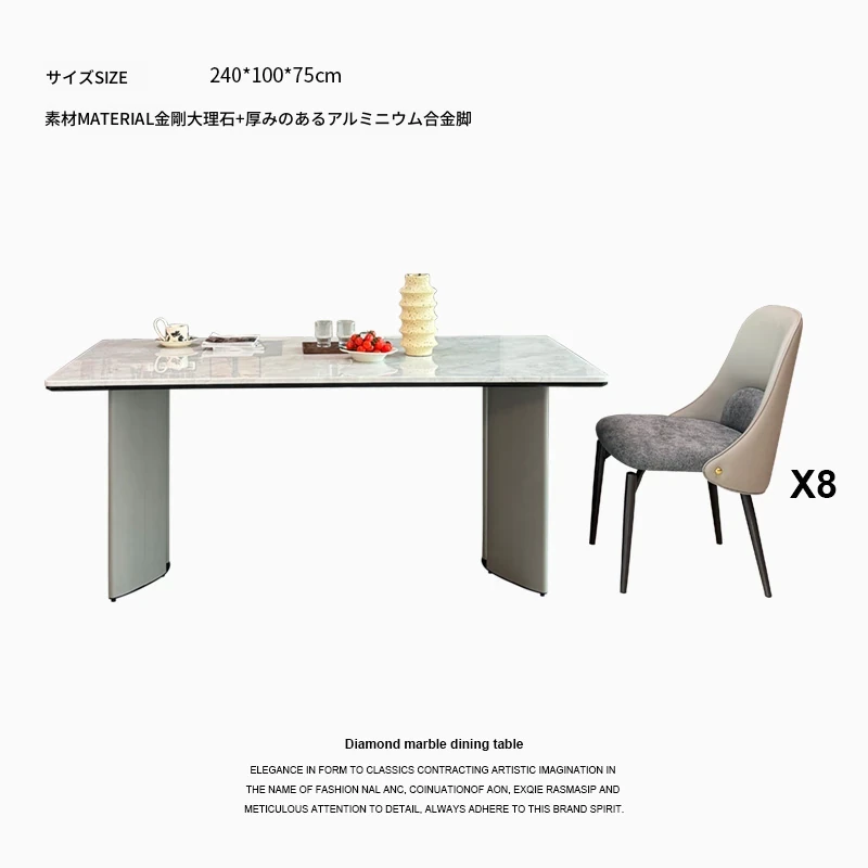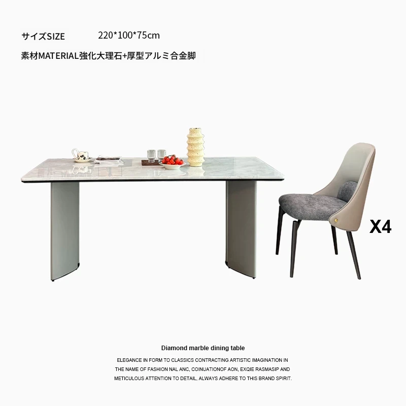 2025年新作!モダンでシンプルな大理石ダイニングテーブル、高級感あふれる輸入素材使用。省スペースでもおしゃれに!小型住宅にぴったりな長方形デザイン。
