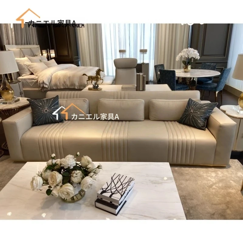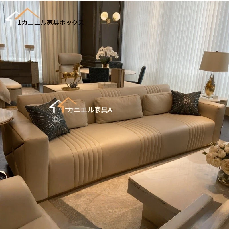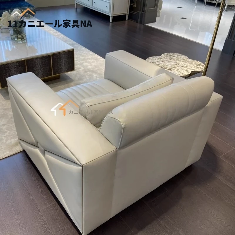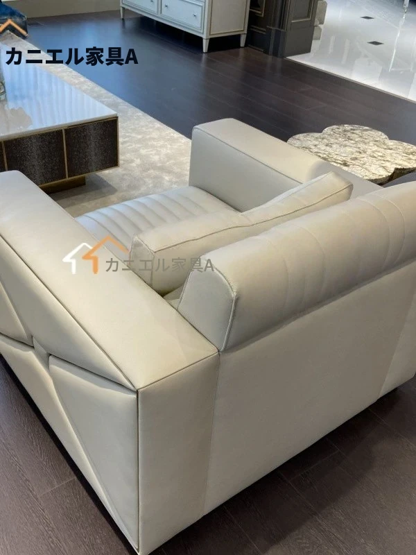 アメリカンラグジュアリー!同モデルのブラックラベルソファ、ホワイトレザー使用のモダンミニマリストデザイン。リビングにぴったりな3人掛け&1人掛けソファで、快適なひとときを演出します。おしゃれな空間を手に入れましょう!