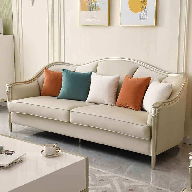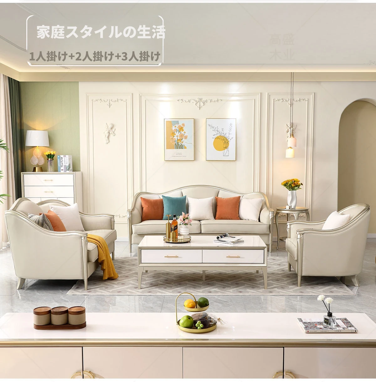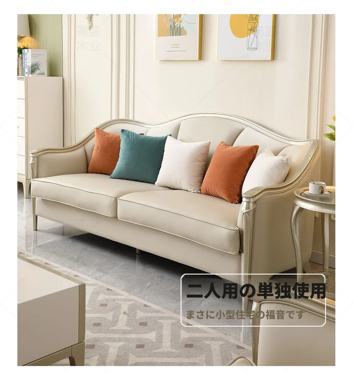 アメリカンスタイルの無垢材ソファとシンプルなリビングテーブルのセット - フレンチラグジュアリーな極簡スタイルで、上質な空間を演出します。全て揃った一式で、洗練されたライフスタイルを手に入れましょう!