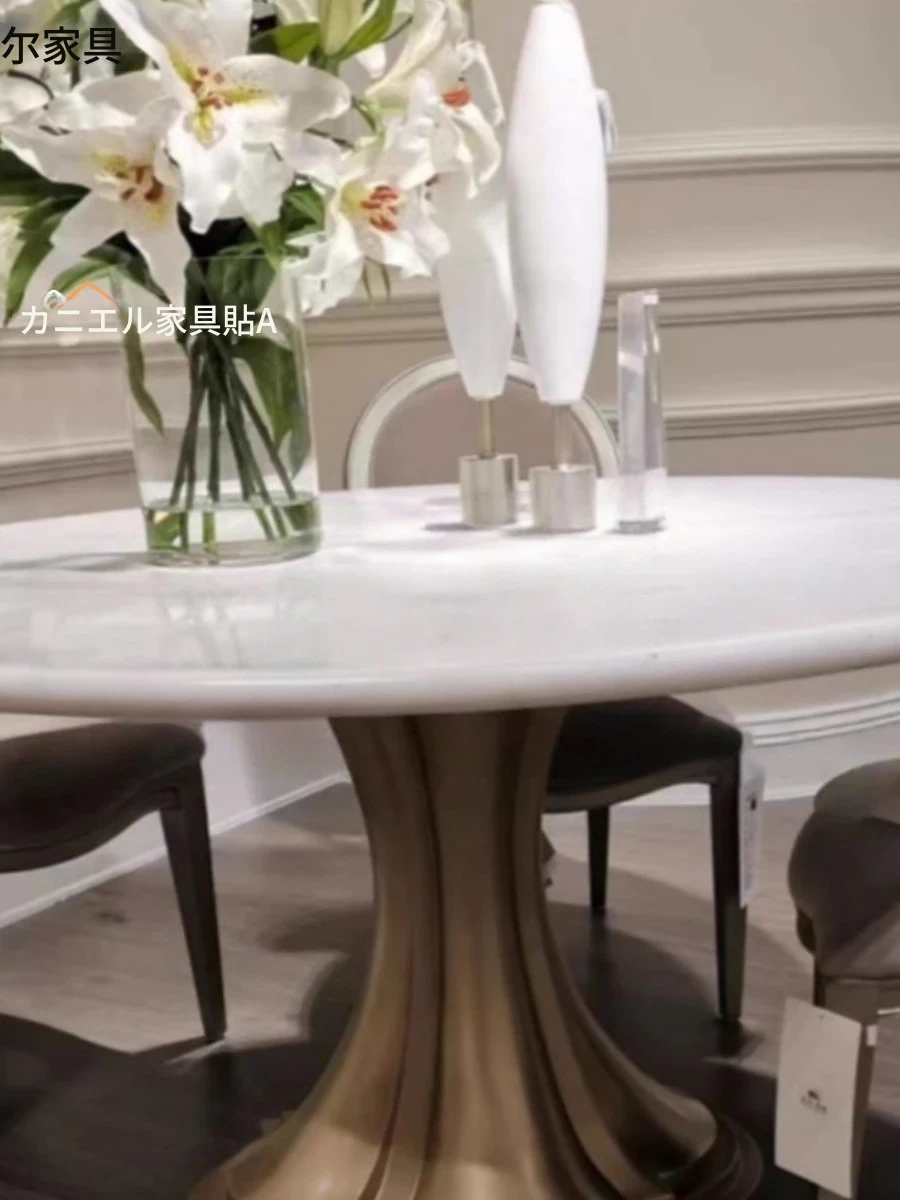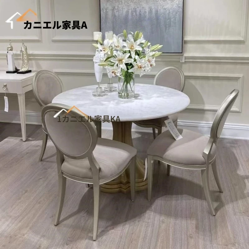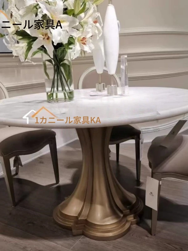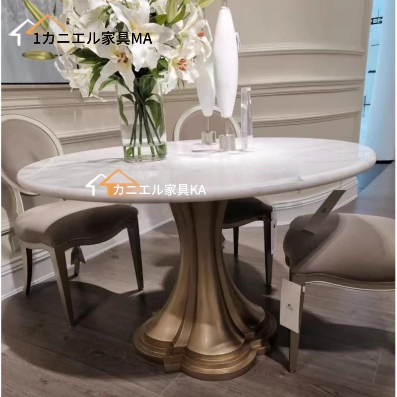 アメリカンラグジュアリーラウンドダイニングテーブル|メイク同型大理石製ラウンドテーブル|パークアベニュー風モダンテーブルで、洗練された食卓を演出!