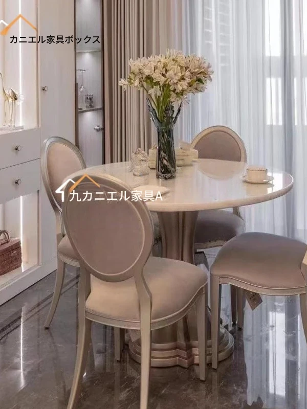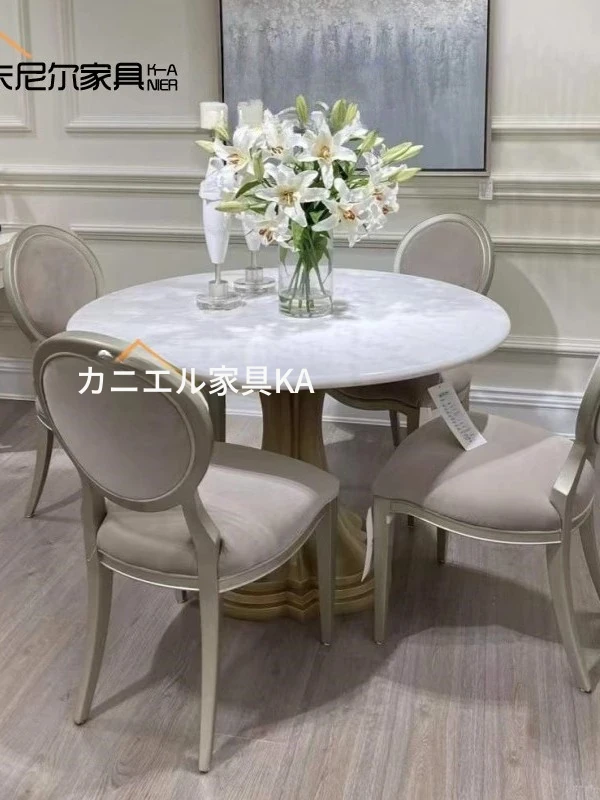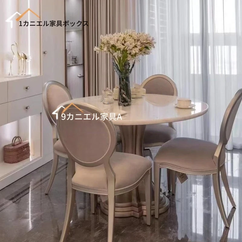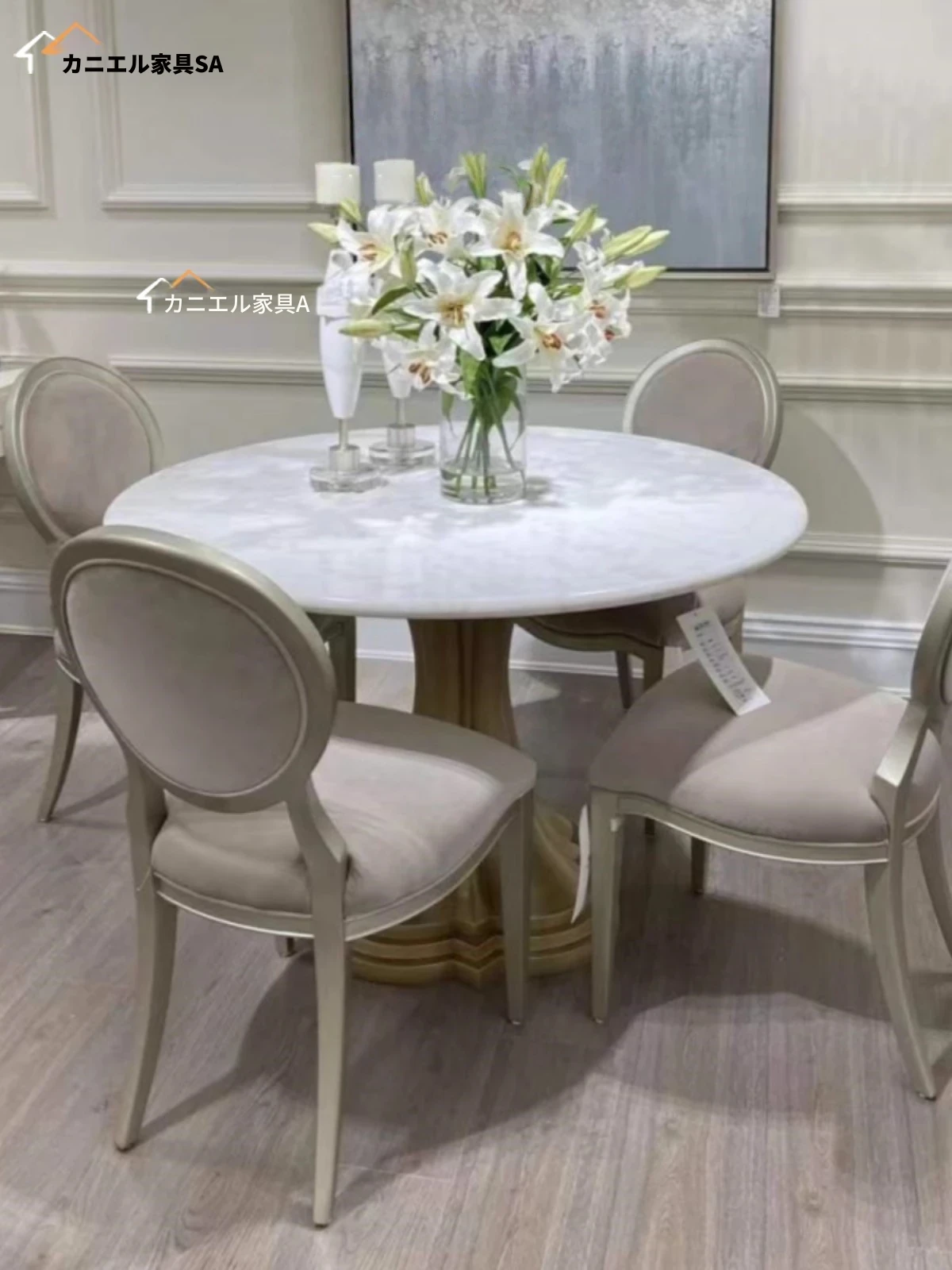 純天然ラグジュアリー石白氷玉大理石ダイニングテーブルセット - フランス風の丸型テーブル、シンプルでモダンなデザイン。家庭にぴったりの上質な食卓空間を演出します!