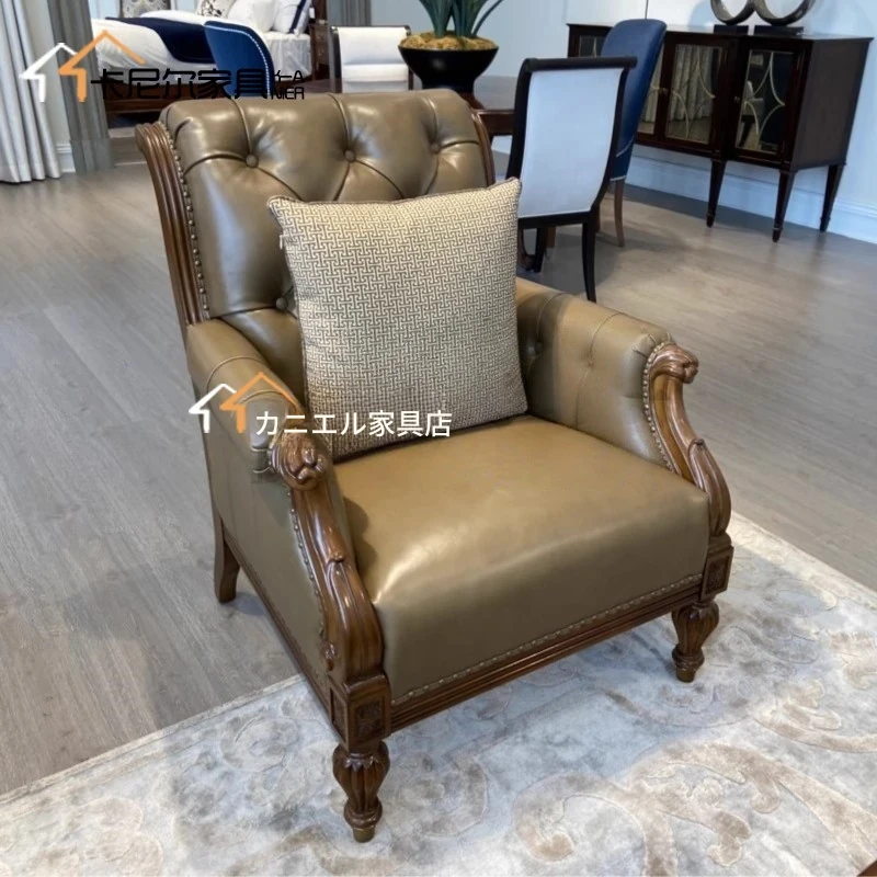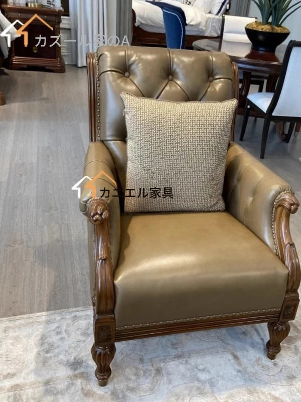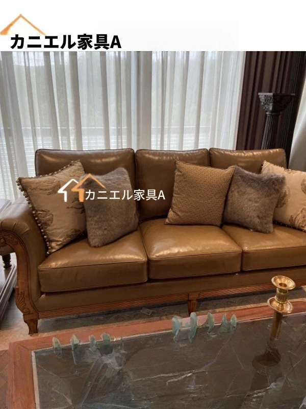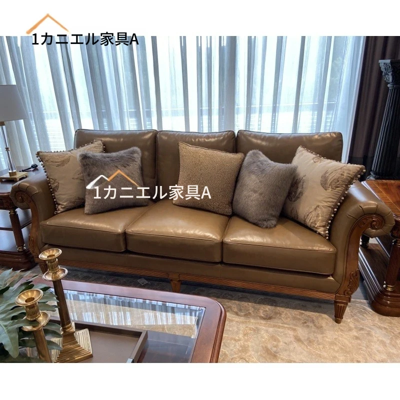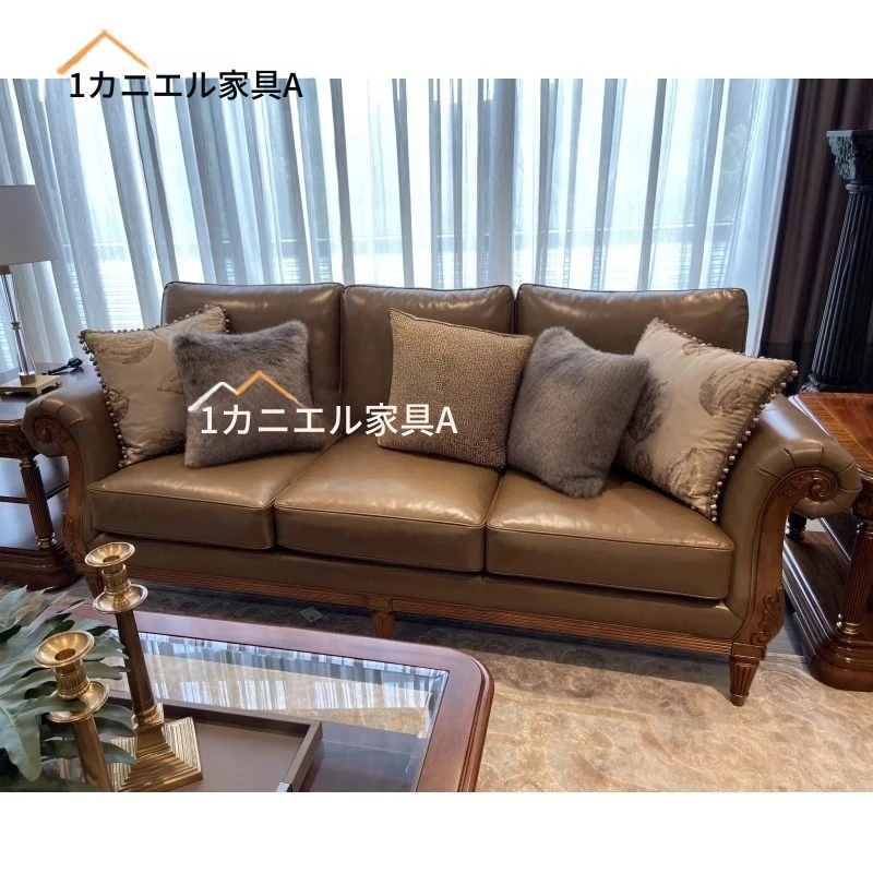 アメリカンラグジュアリー真皮ソファ!クレイグ同モデル・パラロリーソファ。木彫りのヴィンテージデザイン、別荘にぴったりの高級感あふれるアイテムで、あなたの美しい家を演出します!
