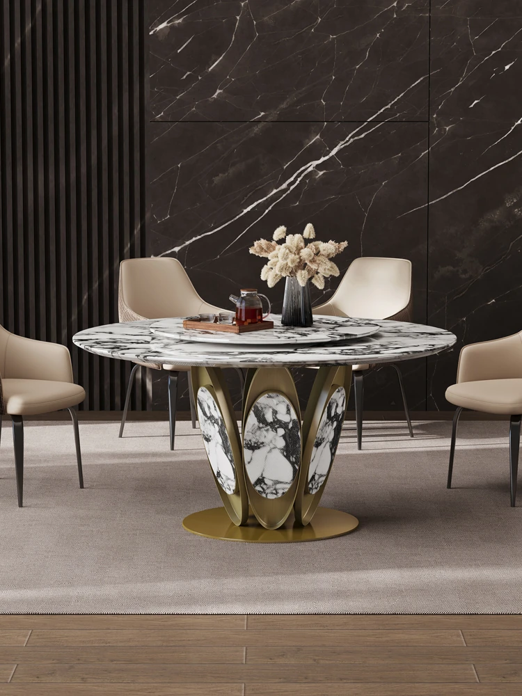 宝格丽ホワイトラグジュアリーストーンテーブル - イタリアンミニマリズムの天然マイクロクリスタル超クリスタル大理石ラウンドテーブル&チェアセット。高級感溢れるデザインで、あなたのリビングに洗練された雰囲気をプラス!