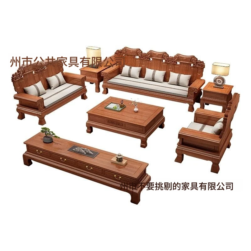1123+ローテーブル+正方形テーブル*3+テレビ台(花梨木)[クッションと抱き枕付き]