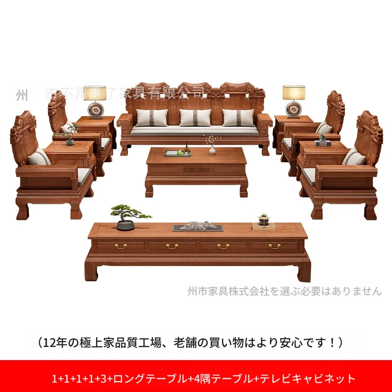 3人掛け+ローテーブル(花梨木)[クッションと抱き枕付き]