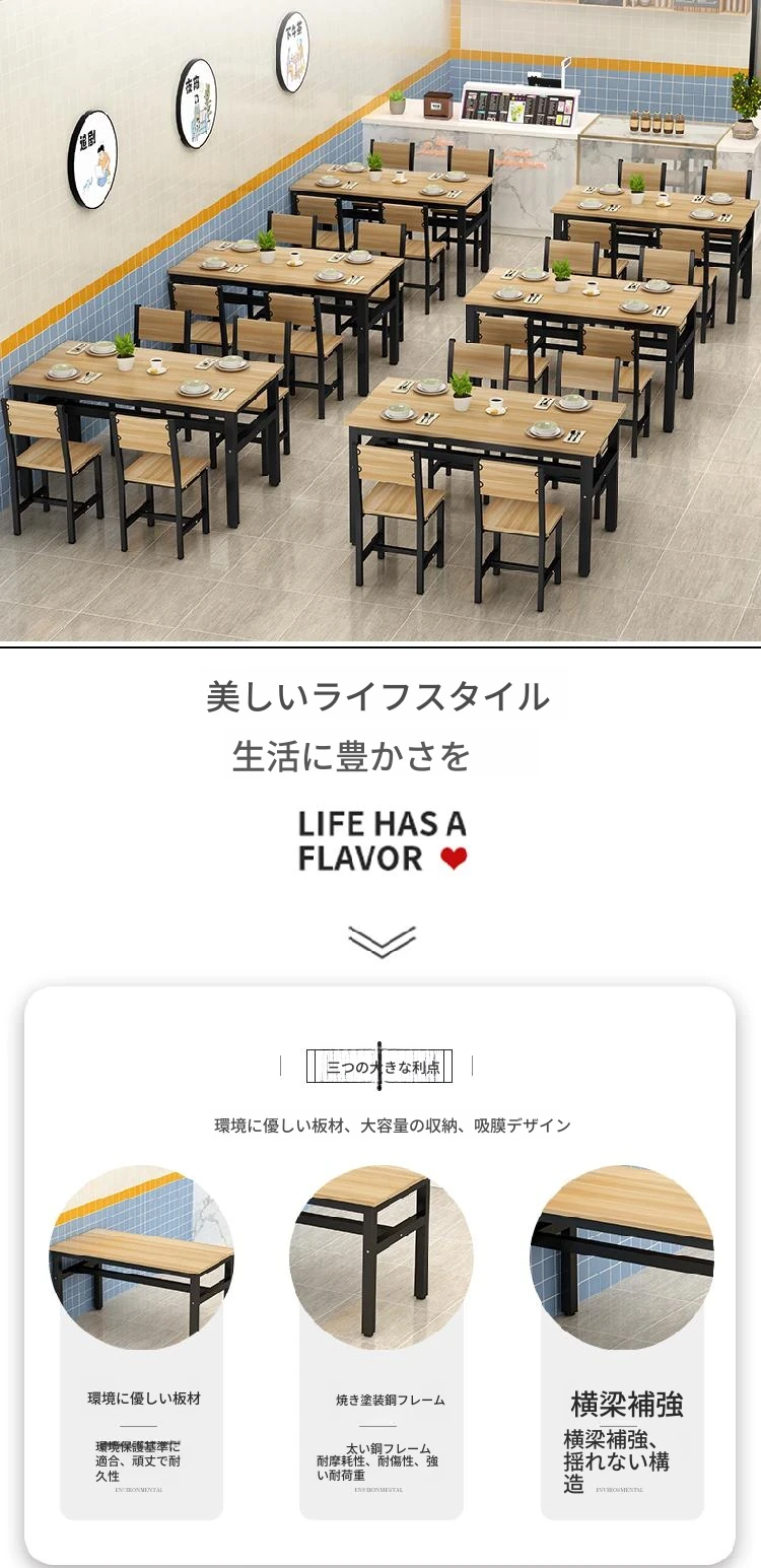 商用・家庭用に最適!長方形テーブルと椅子のセット - 小吃店、面館、食堂、朝食店にぴったり!快適なダイニングスペースを実現し、食事をより楽しいひとときに。